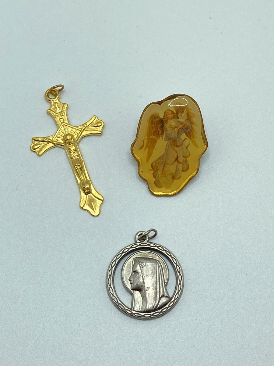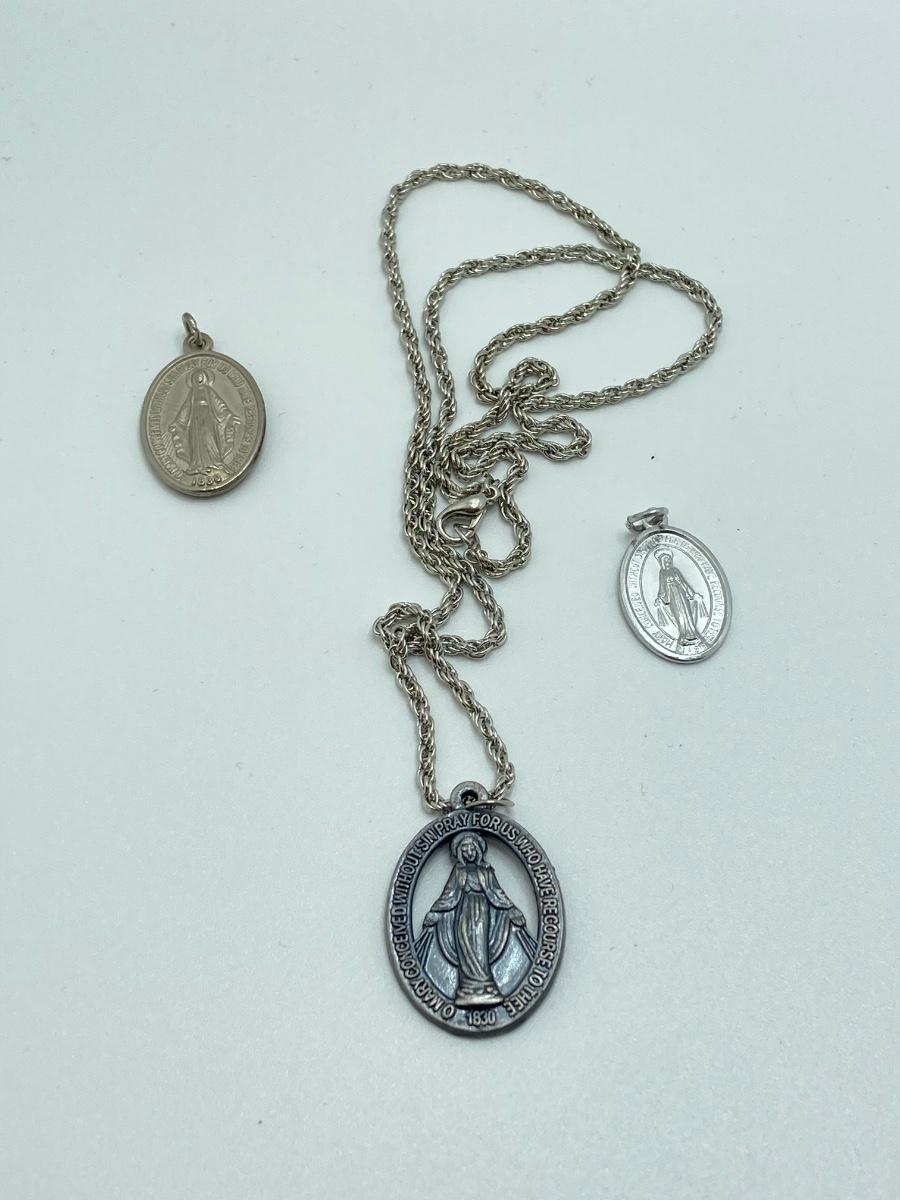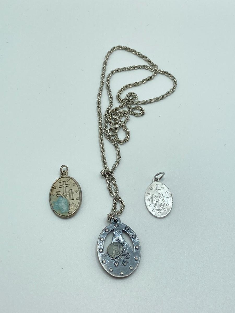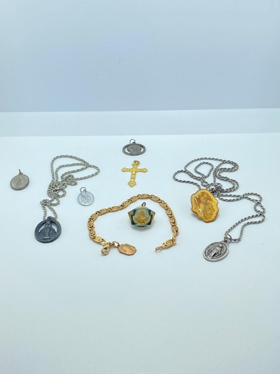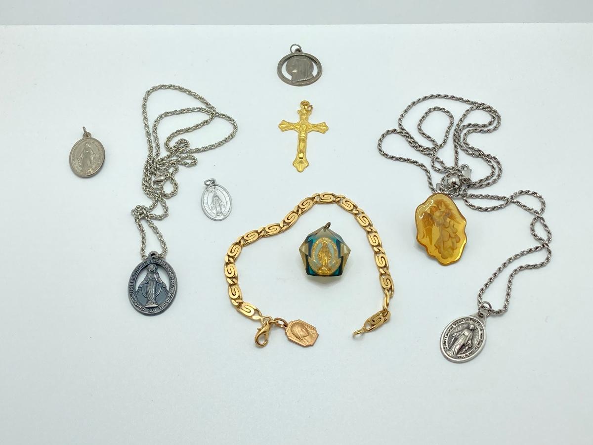 LOT 38J: Sterling Religious Jewelry with Collection of Medals and More