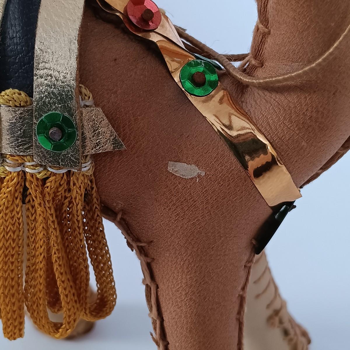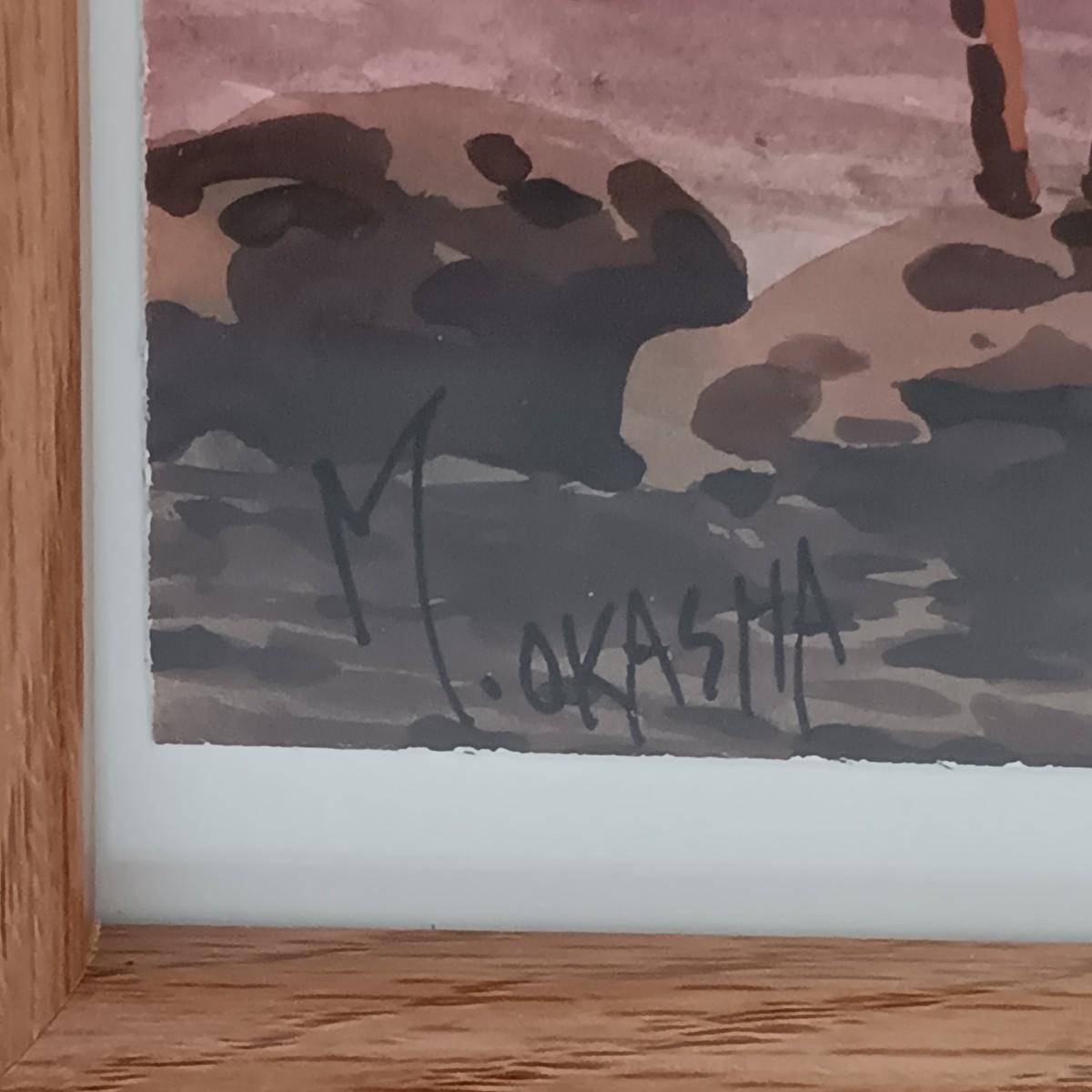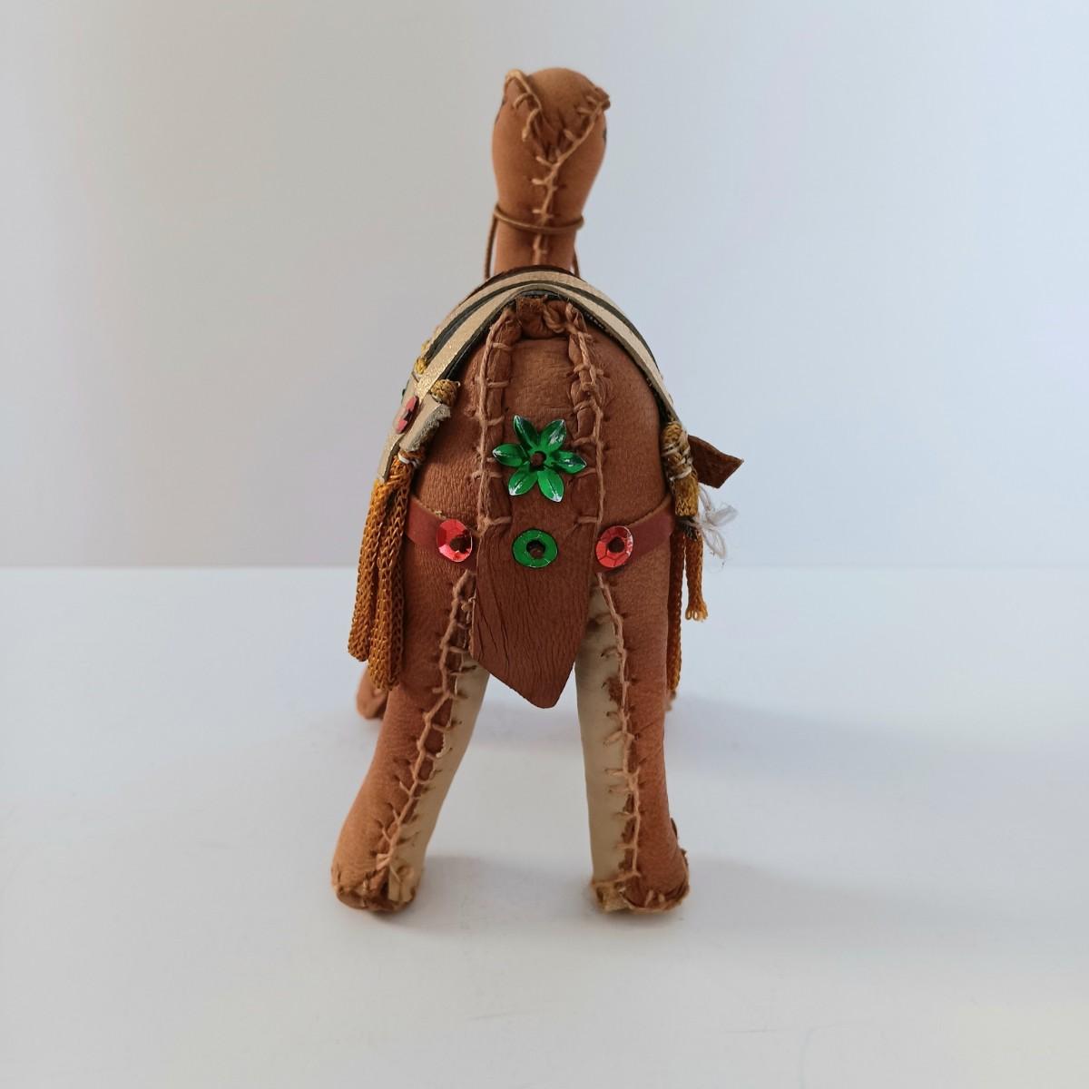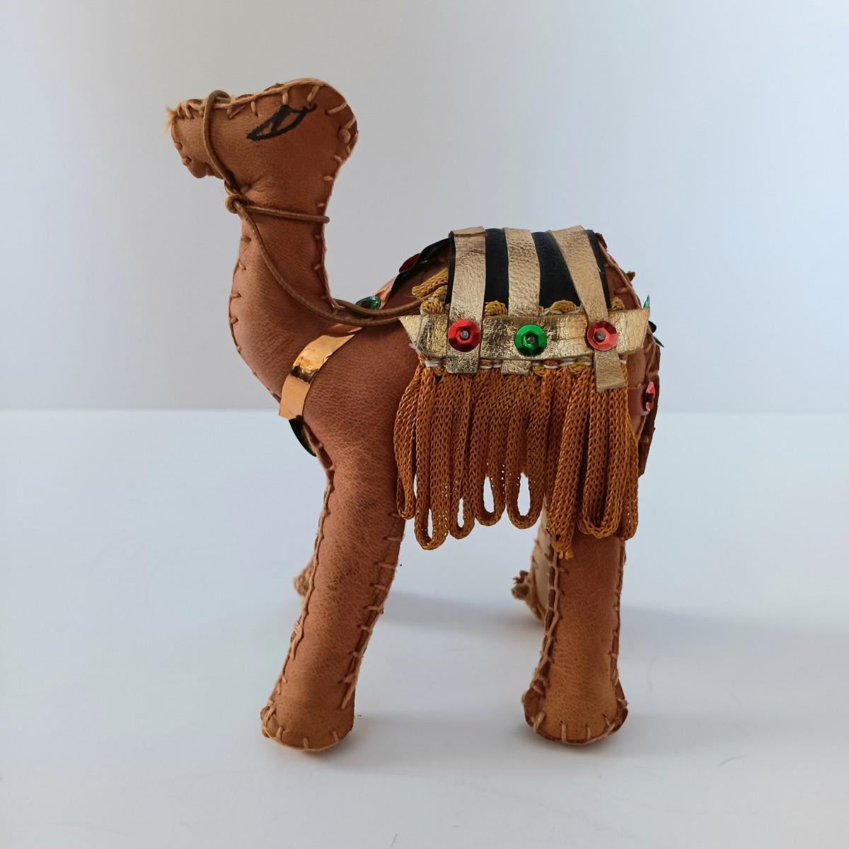 LOT 52L: Egypt Collection- Vintage Handpainted/Signed Papyrus Map, 2 M. Okasha Prints & Handstitched Leather Camel