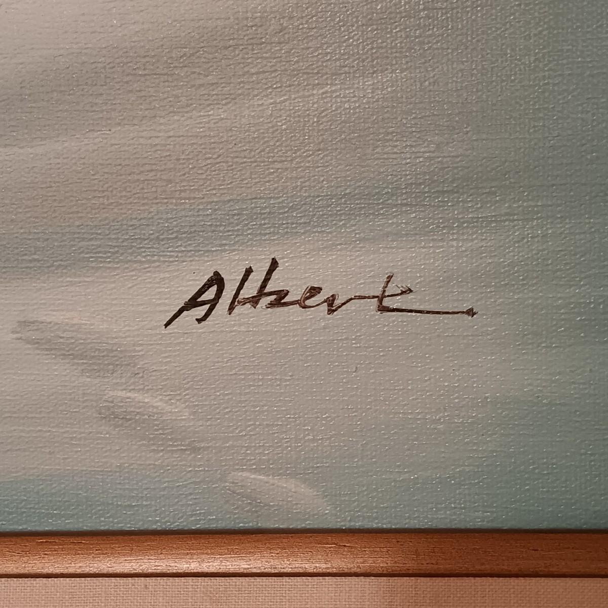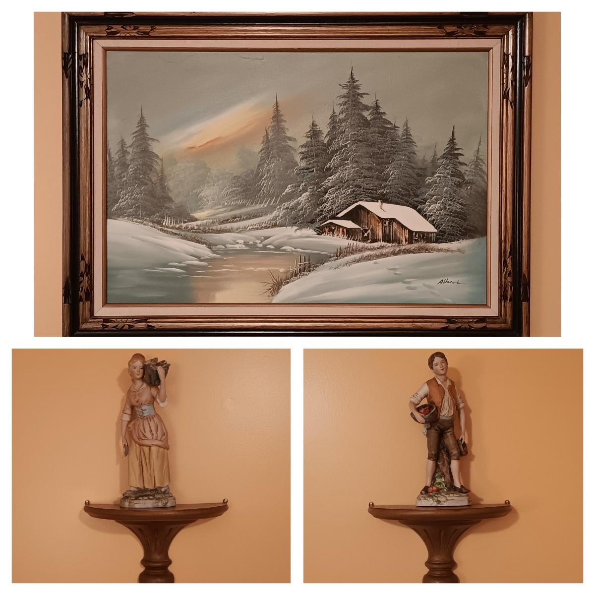 LOT 55L: 31x43 Oil Painting Signed Albert with a Set of Homco Figurines