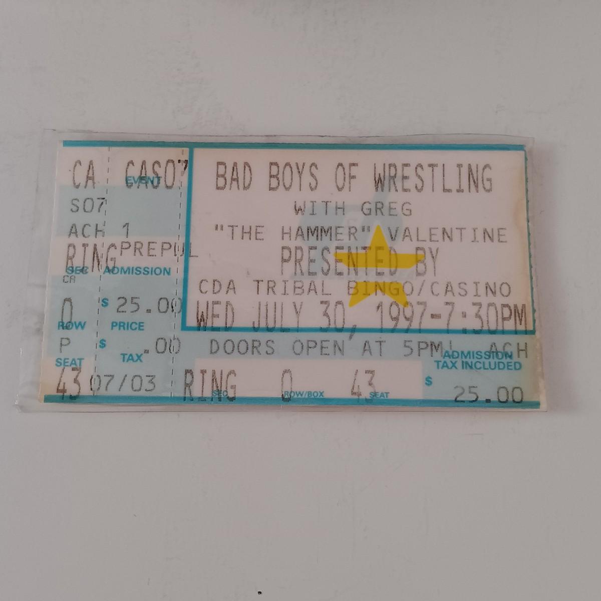 Please Note- The Bad Boys of Wrestling Ticket Stub is laminated and has Velcro on the back.