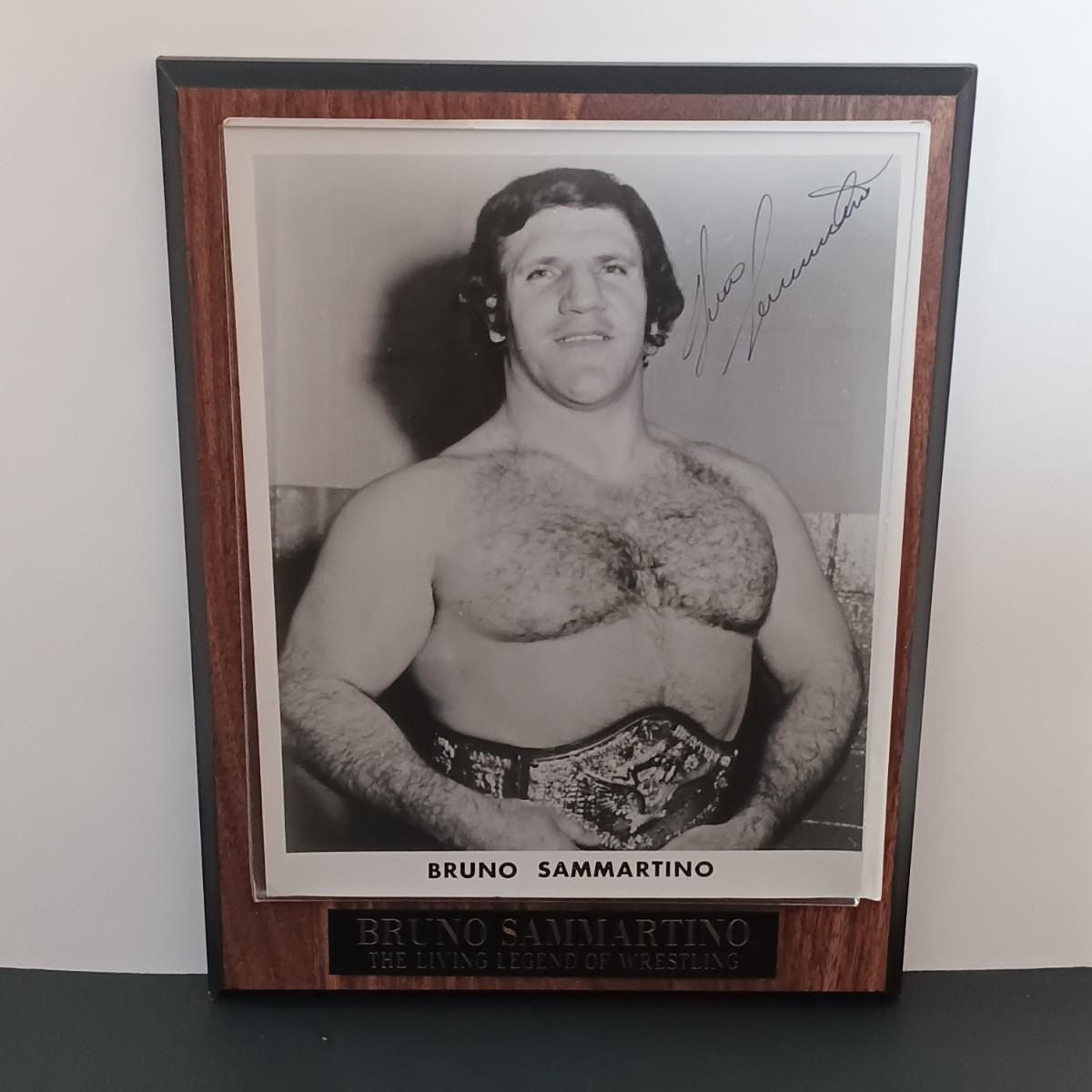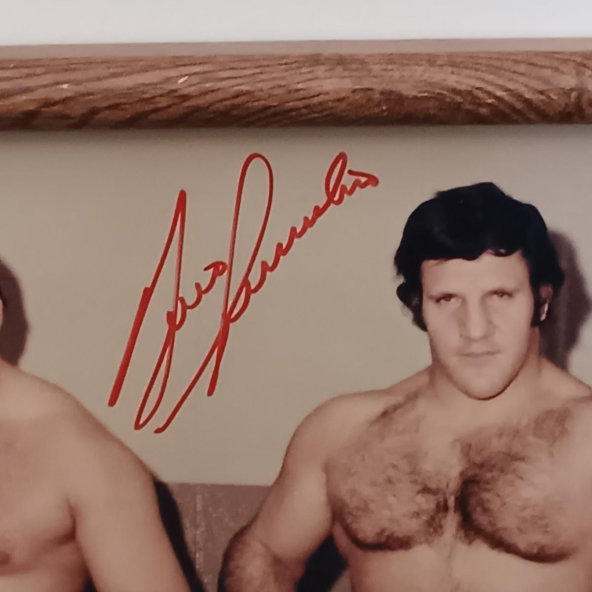 LOT 56L: Wrestling Collection- Bruno Sammartino and Larry Zbyszko Signed Pictures, Wrestlemania Ticket Stubs & More
