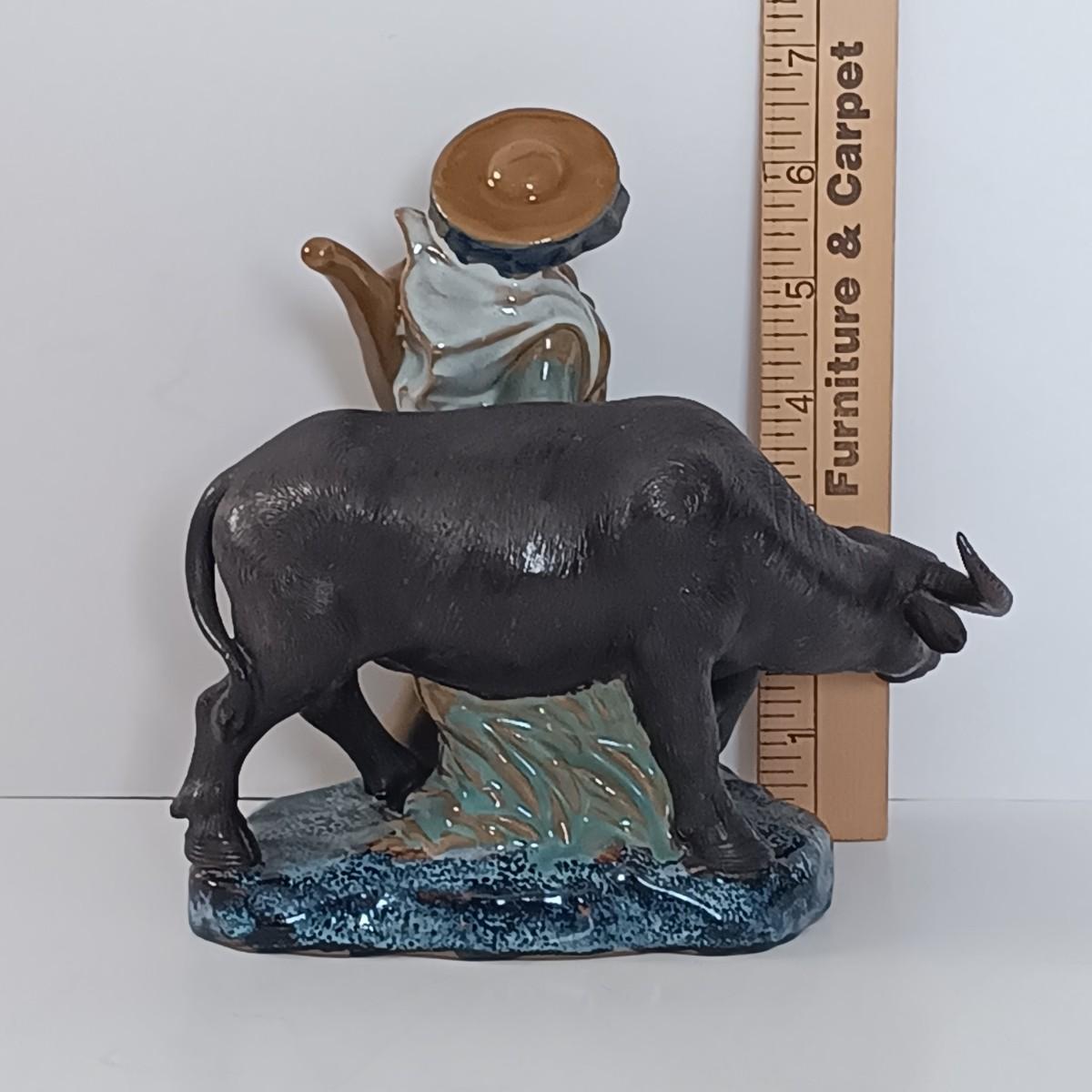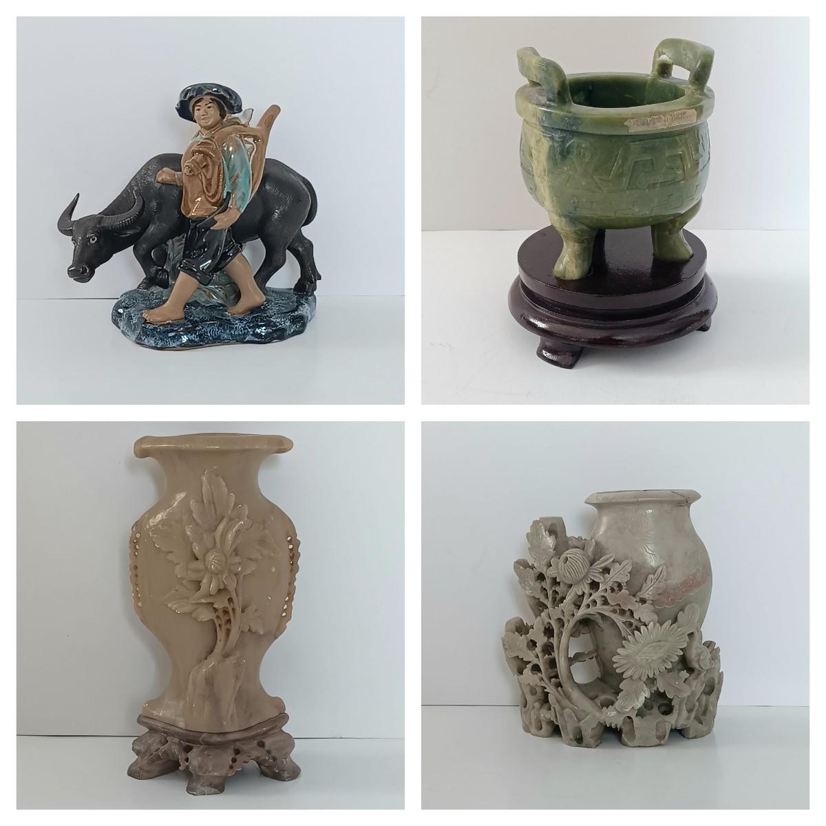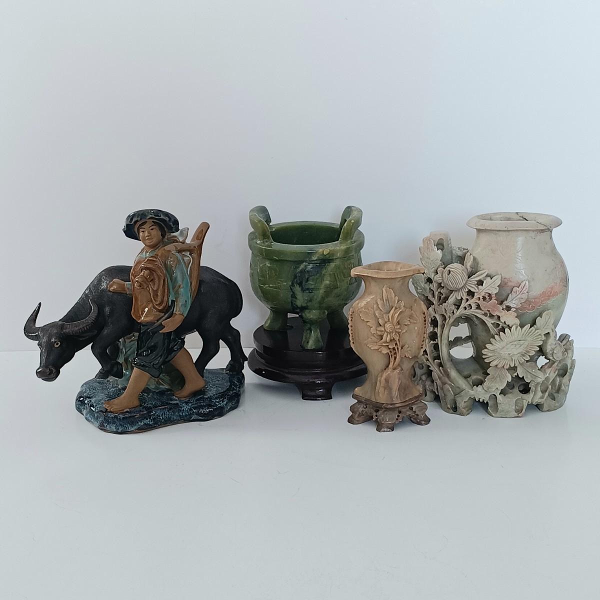 LOT 60L: Man with Bull Figurine and 3 Small Carved Stone Vases