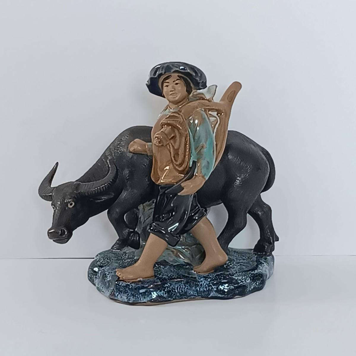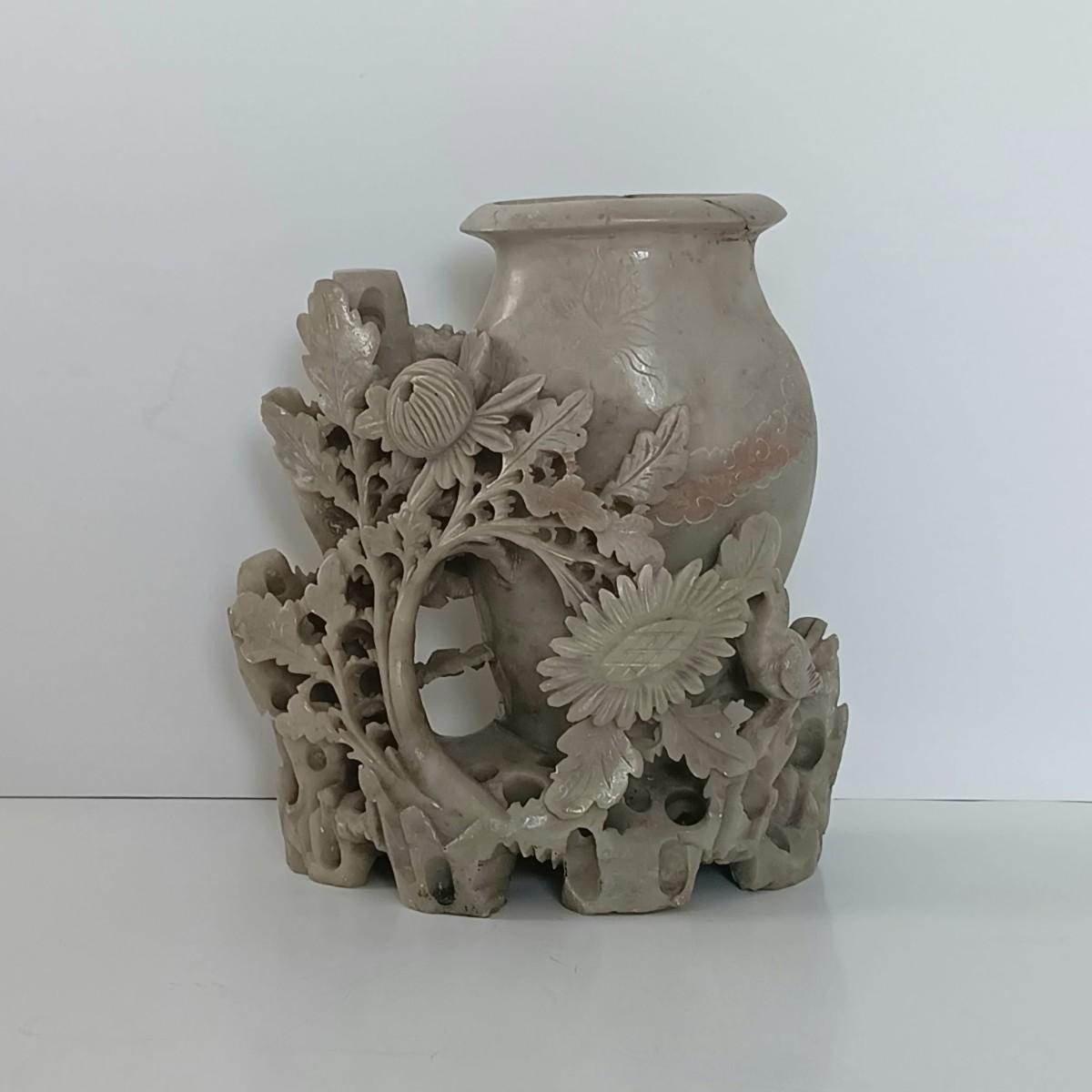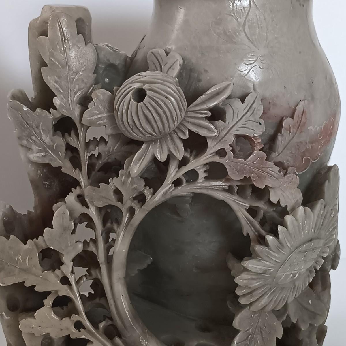 LOT 60L: Man with Bull Figurine and 3 Small Carved Stone Vases