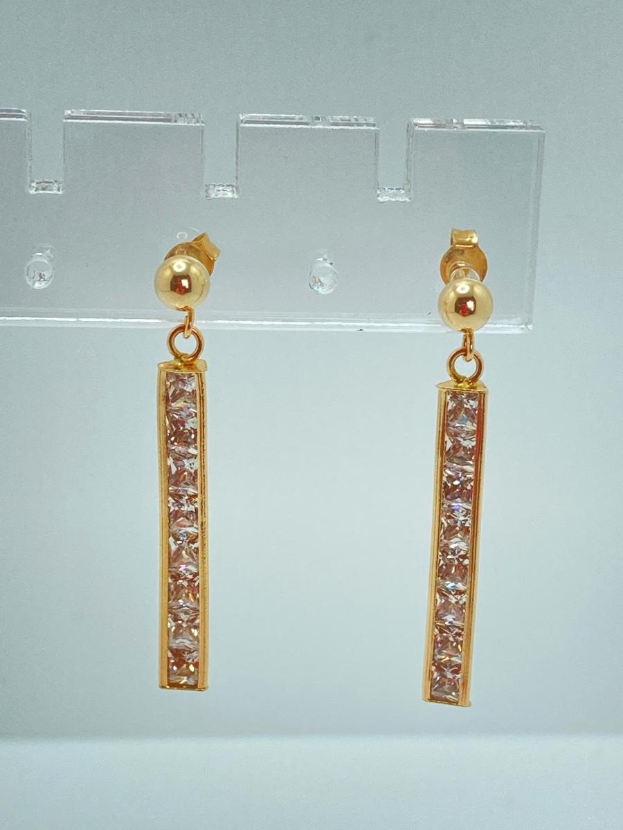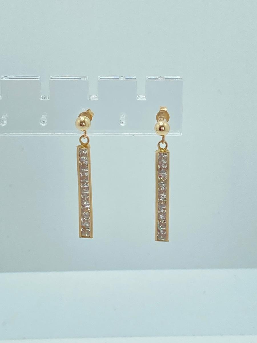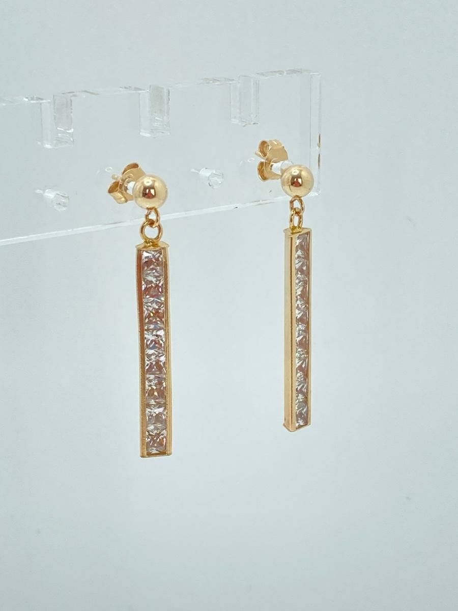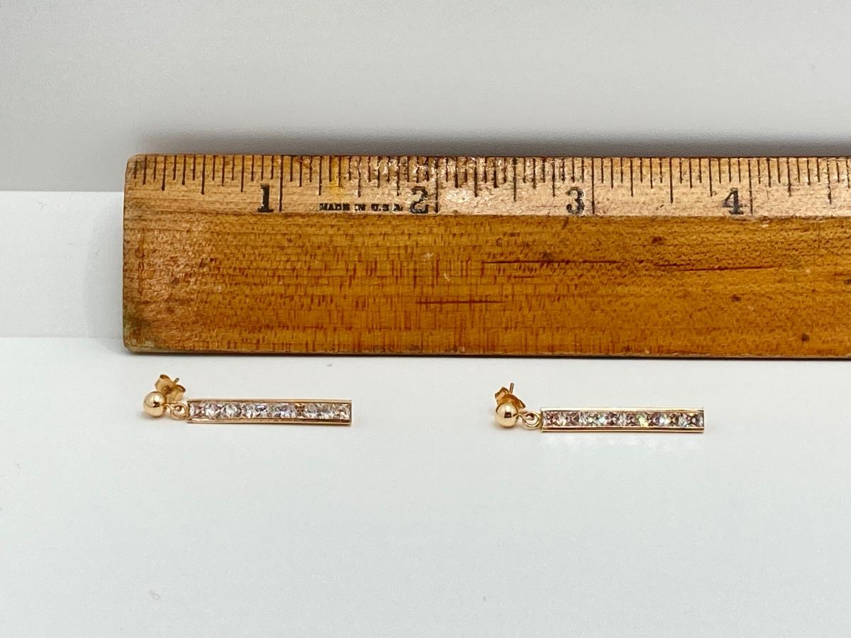 LOT 74J: JJT Gold Dangle Pierced Earrings with Cubic Zirconia Stones - 14K., Tw 2.1g