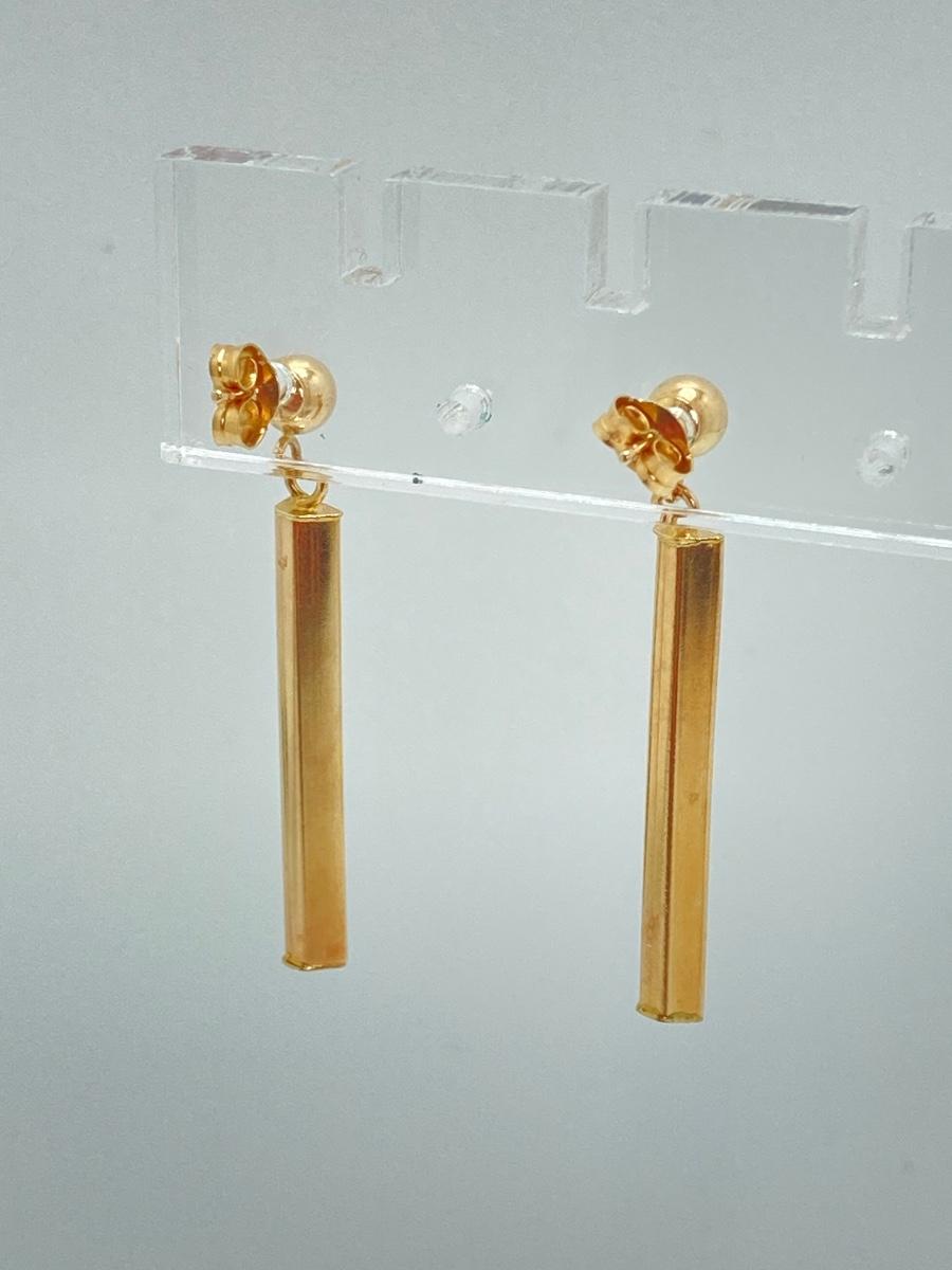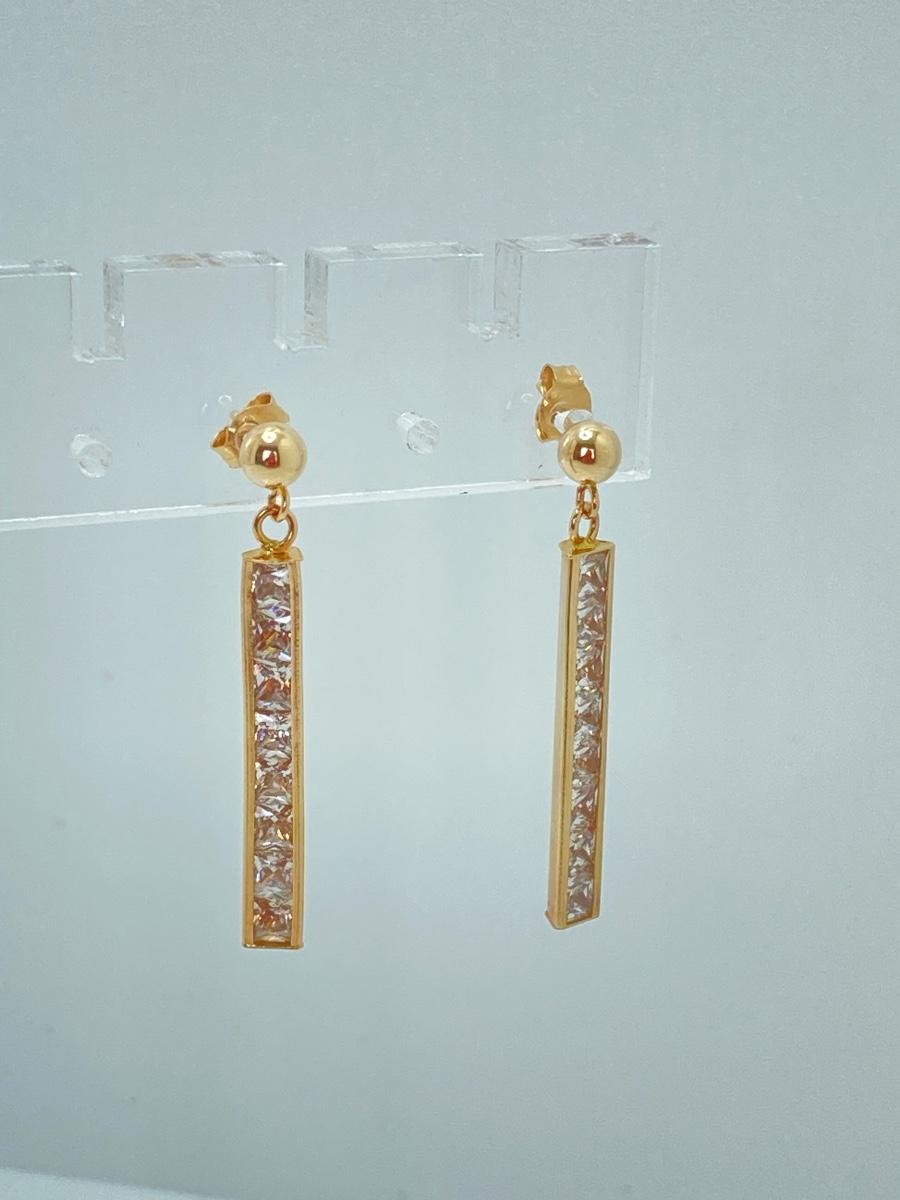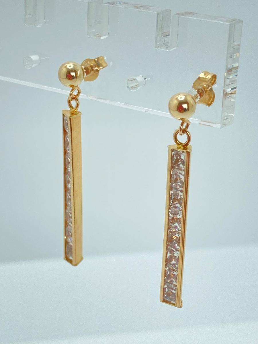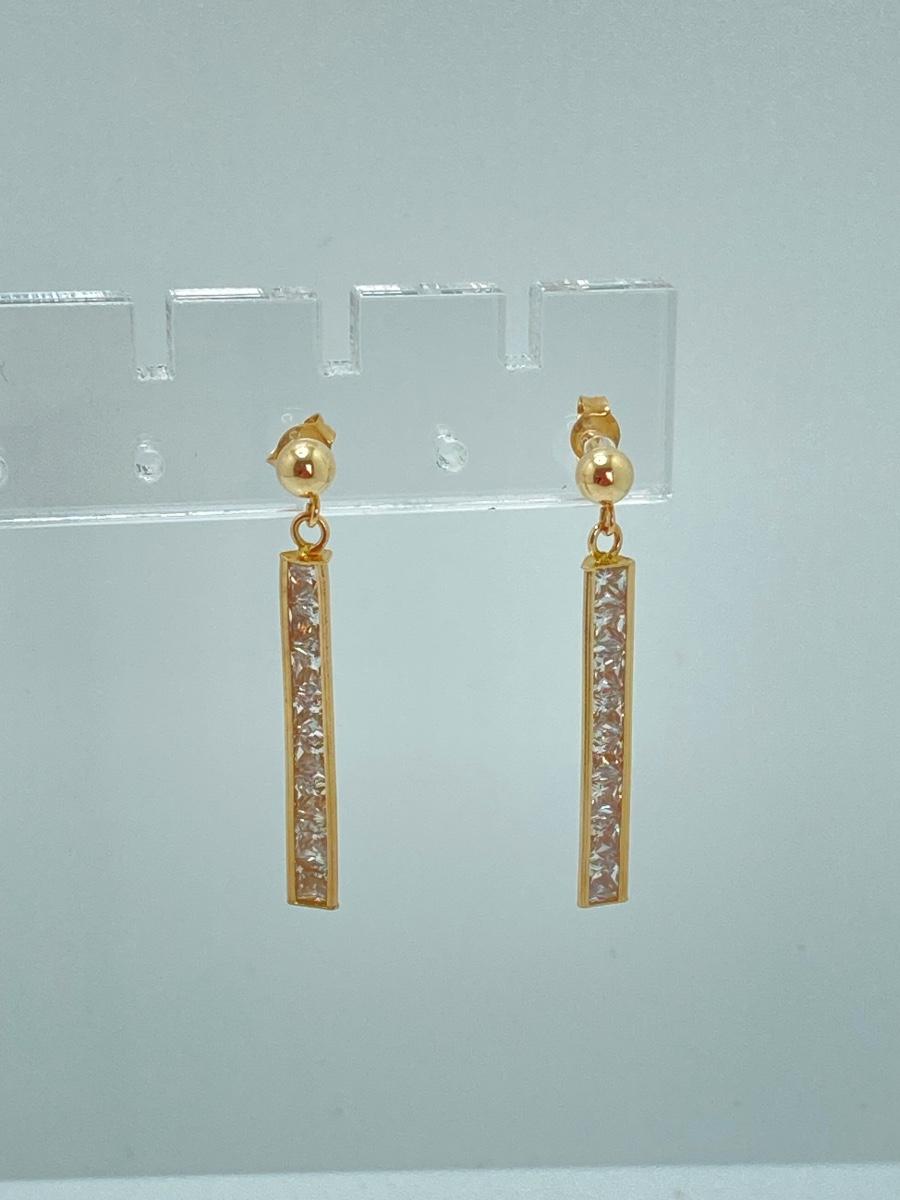 LOT 74J: JJT Gold Dangle Pierced Earrings with Cubic Zirconia Stones - 14K., Tw 2.1g