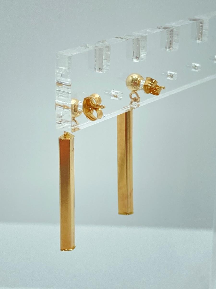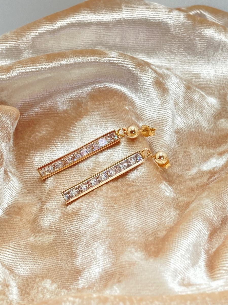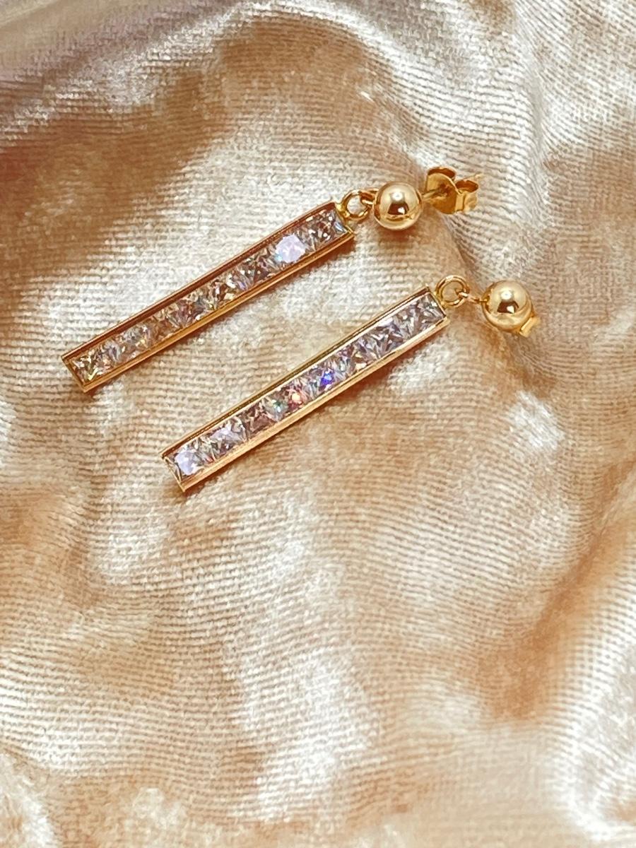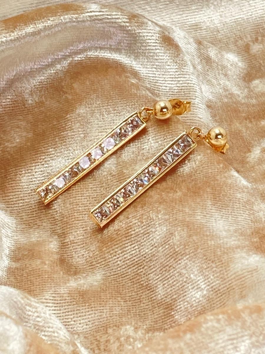 LOT 74J: JJT Gold Dangle Pierced Earrings with Cubic Zirconia Stones - 14K., Tw 2.1g
