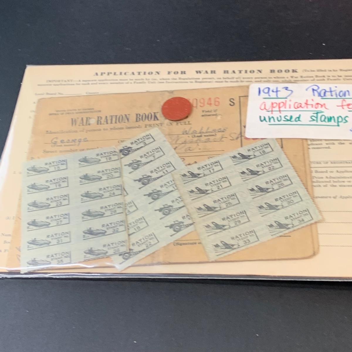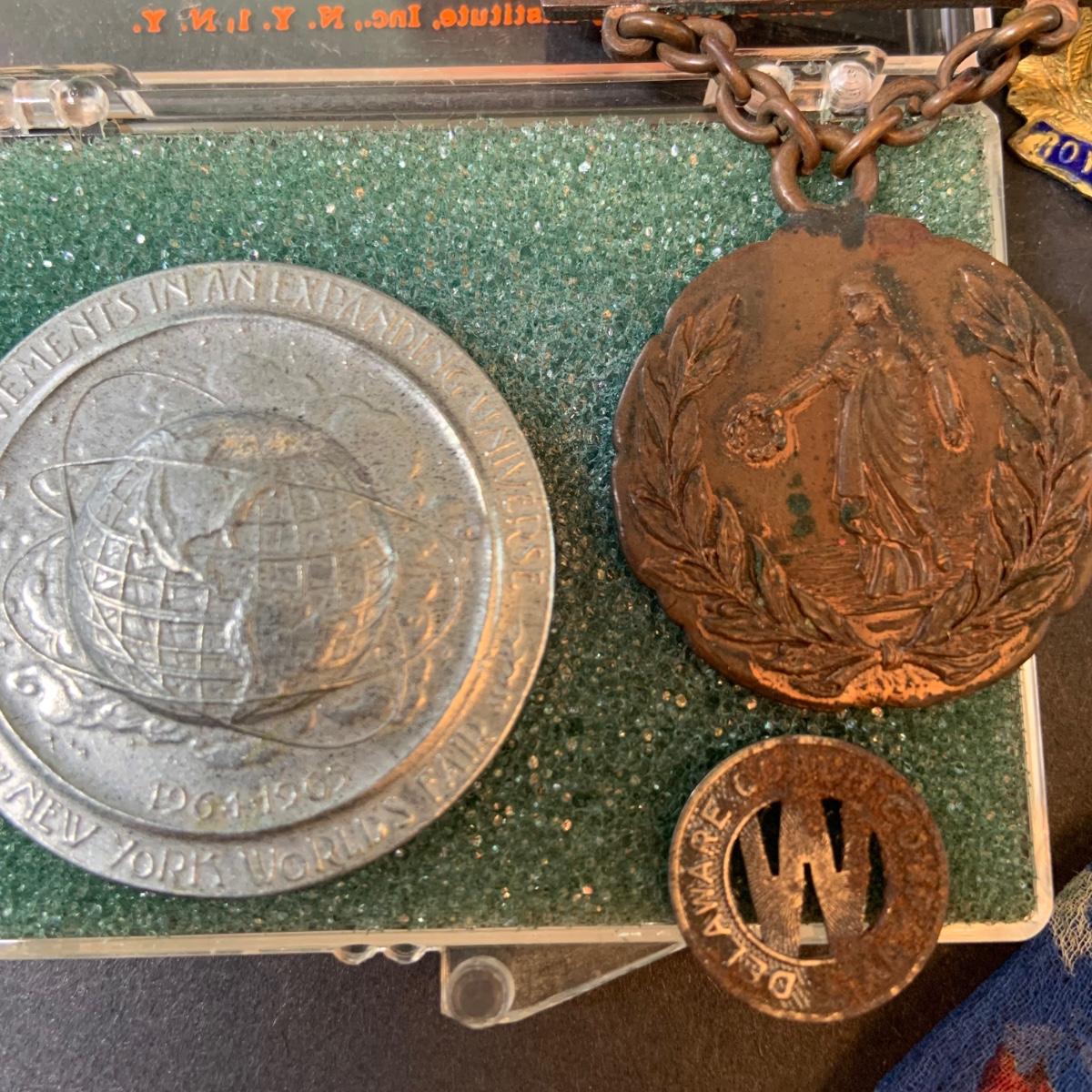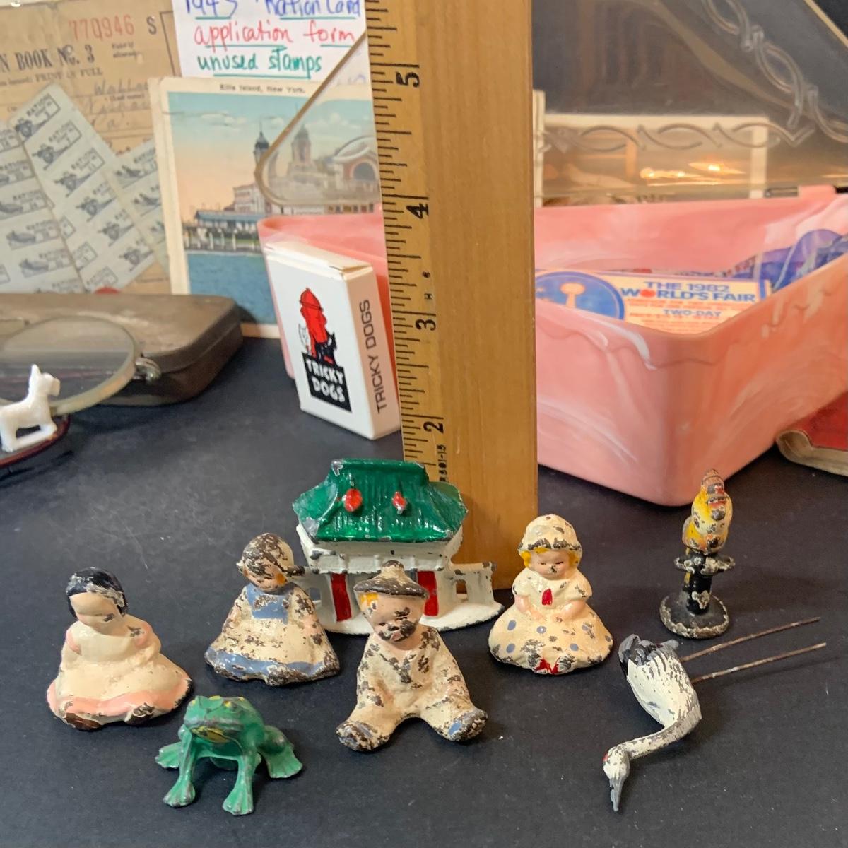 LOT:79: Collection of Vintage Memorabilia from the Worlds Fairs, WW II Ration Books Vintage Glasses, Metal Toys and More