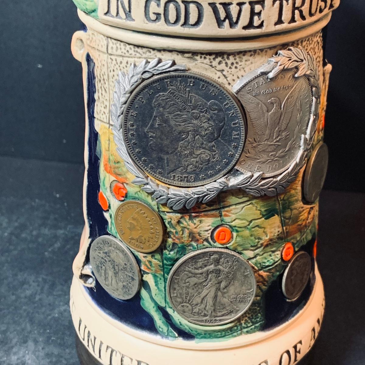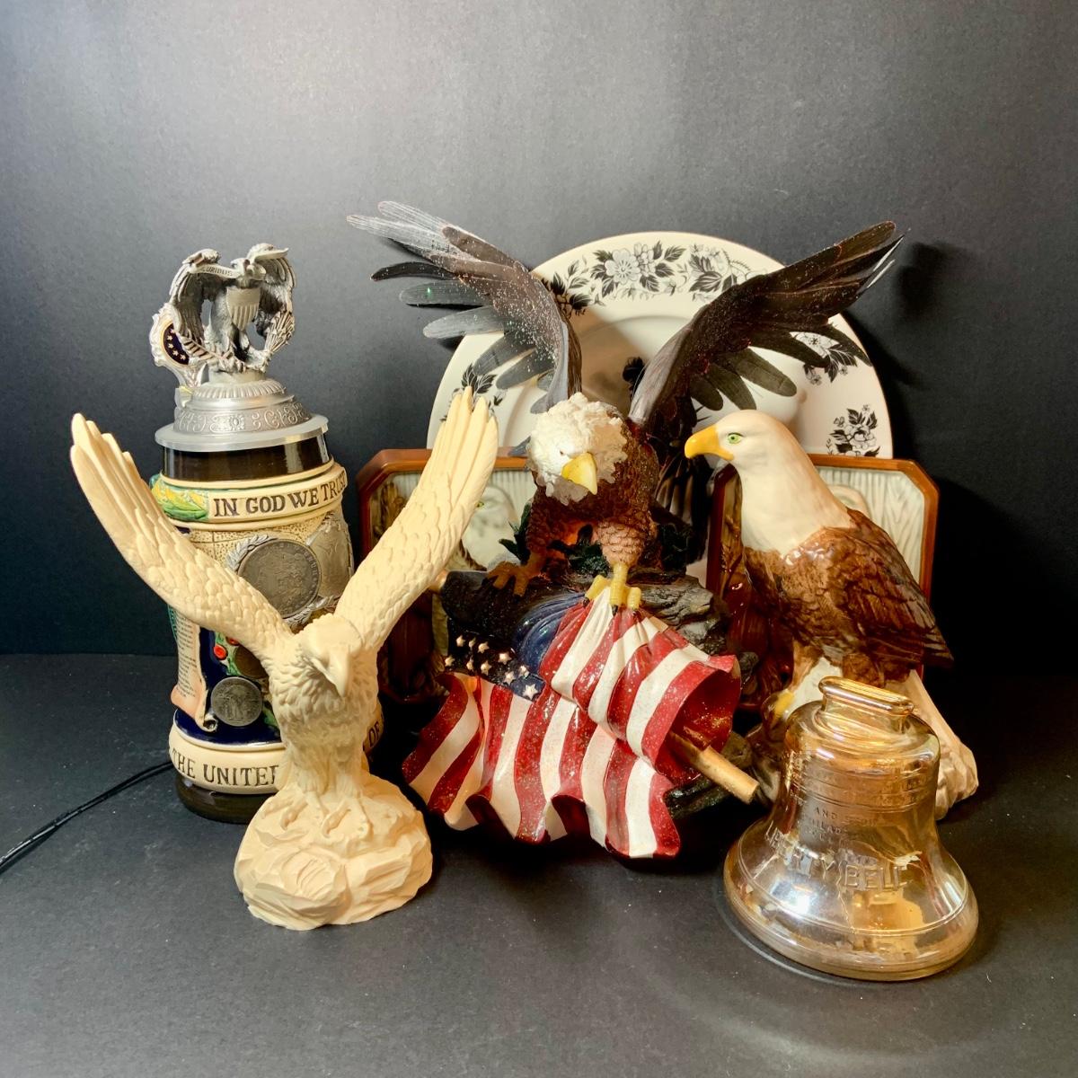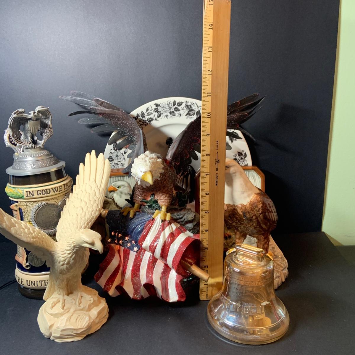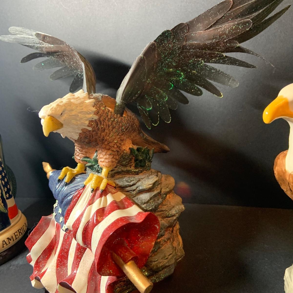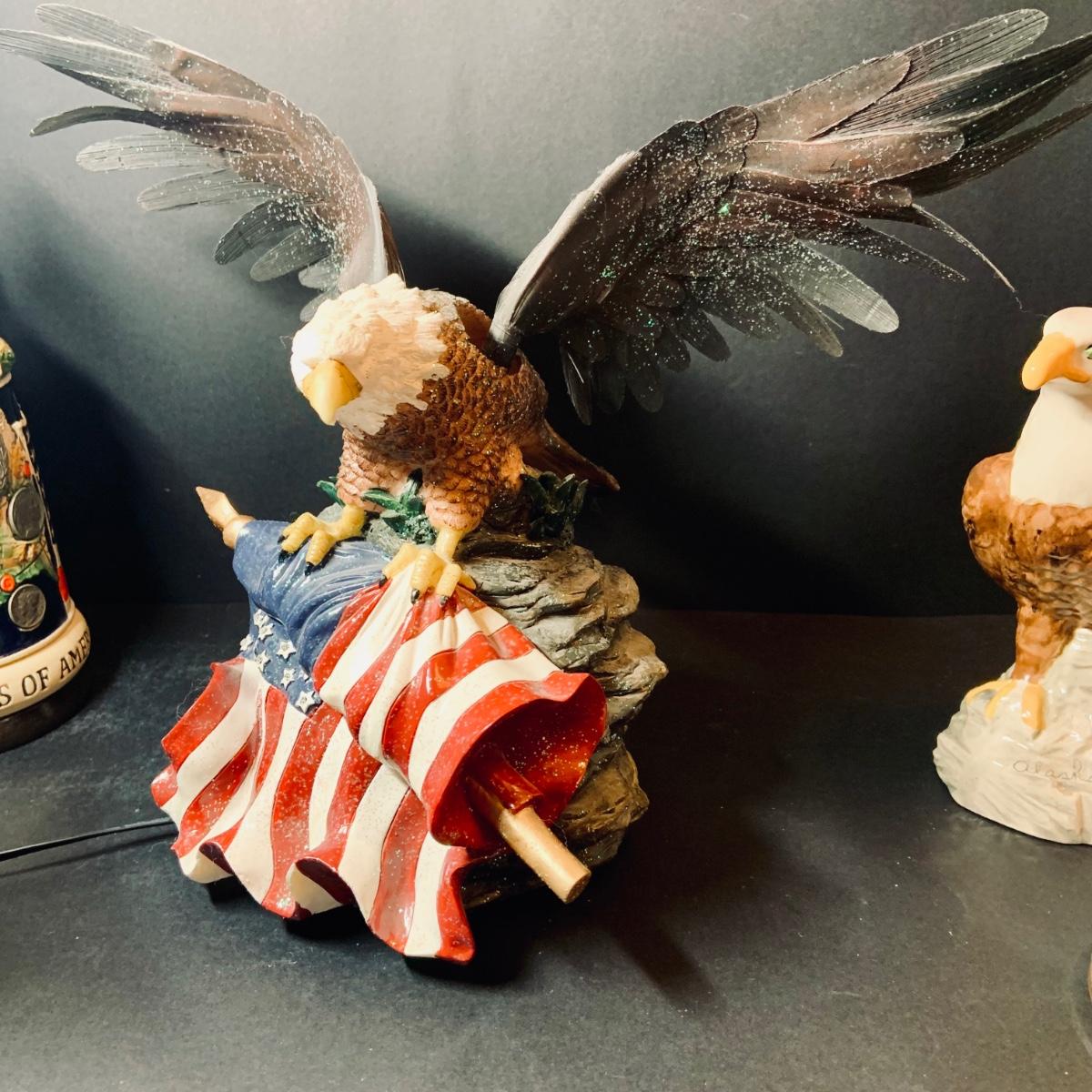 LOT:81: American Collection of Eagles and More Featuring an alabaster Eagle by Gimmelli, an Eagle with Microfiber Lighted Wings a Limited Edition Coin Stein and More