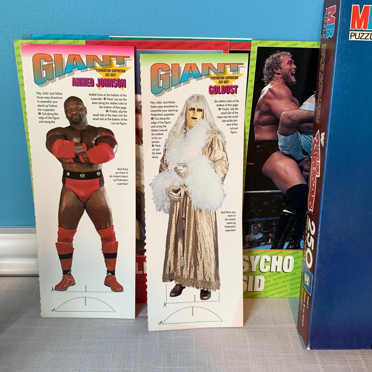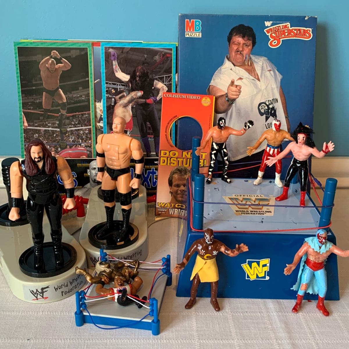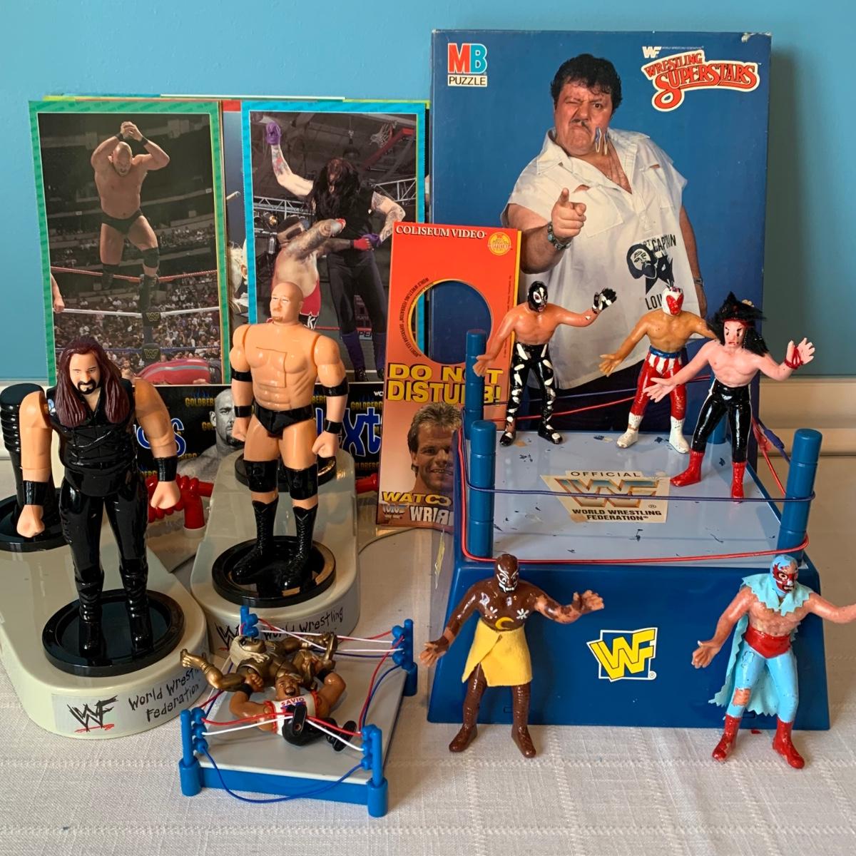 LOT 95L: WWF Steve Austin & Undertaker Ring Warriors, Unopened WWF Superstar Jigsaw Puzzle, Wrestling Action Figure Rings & More