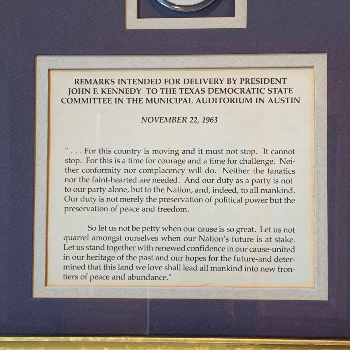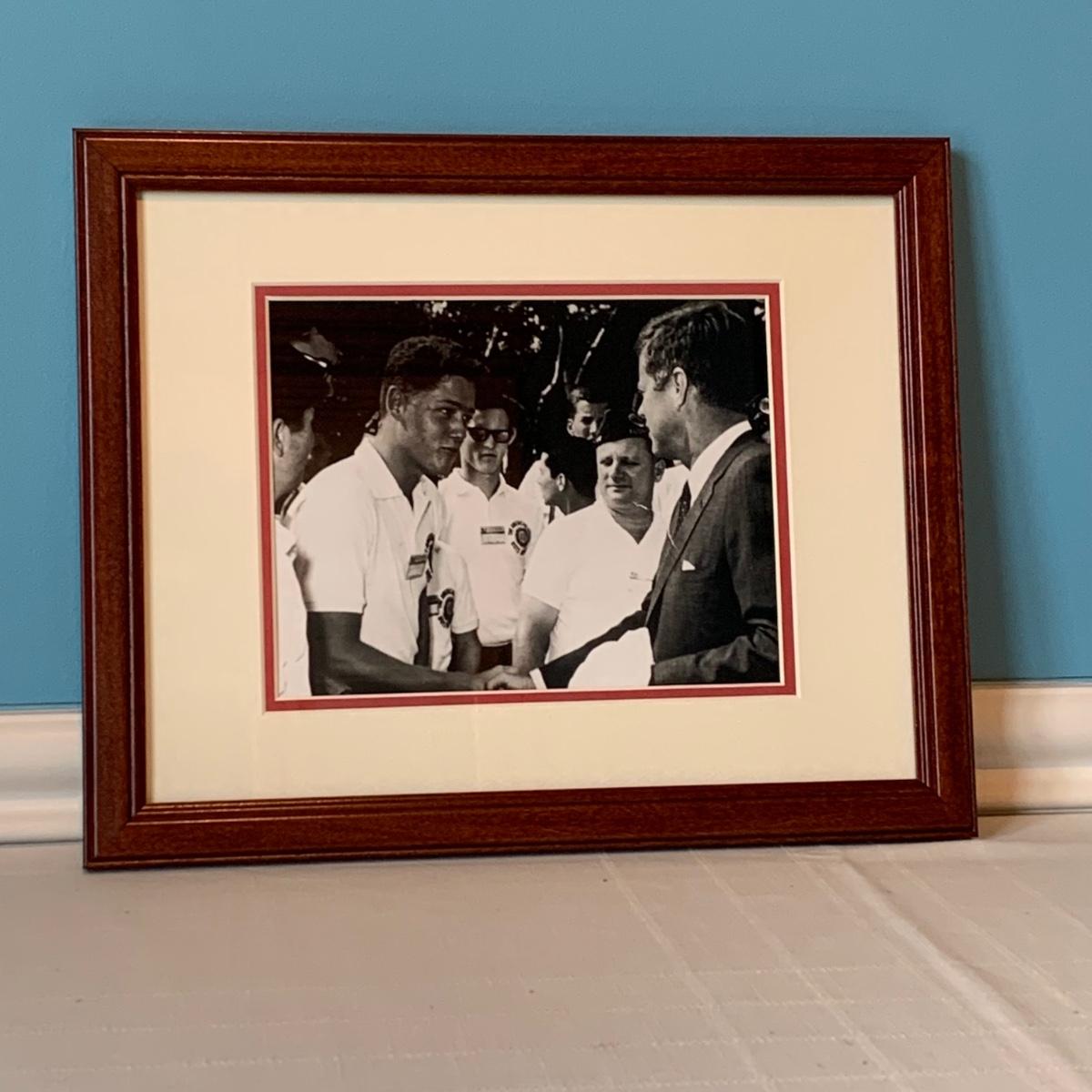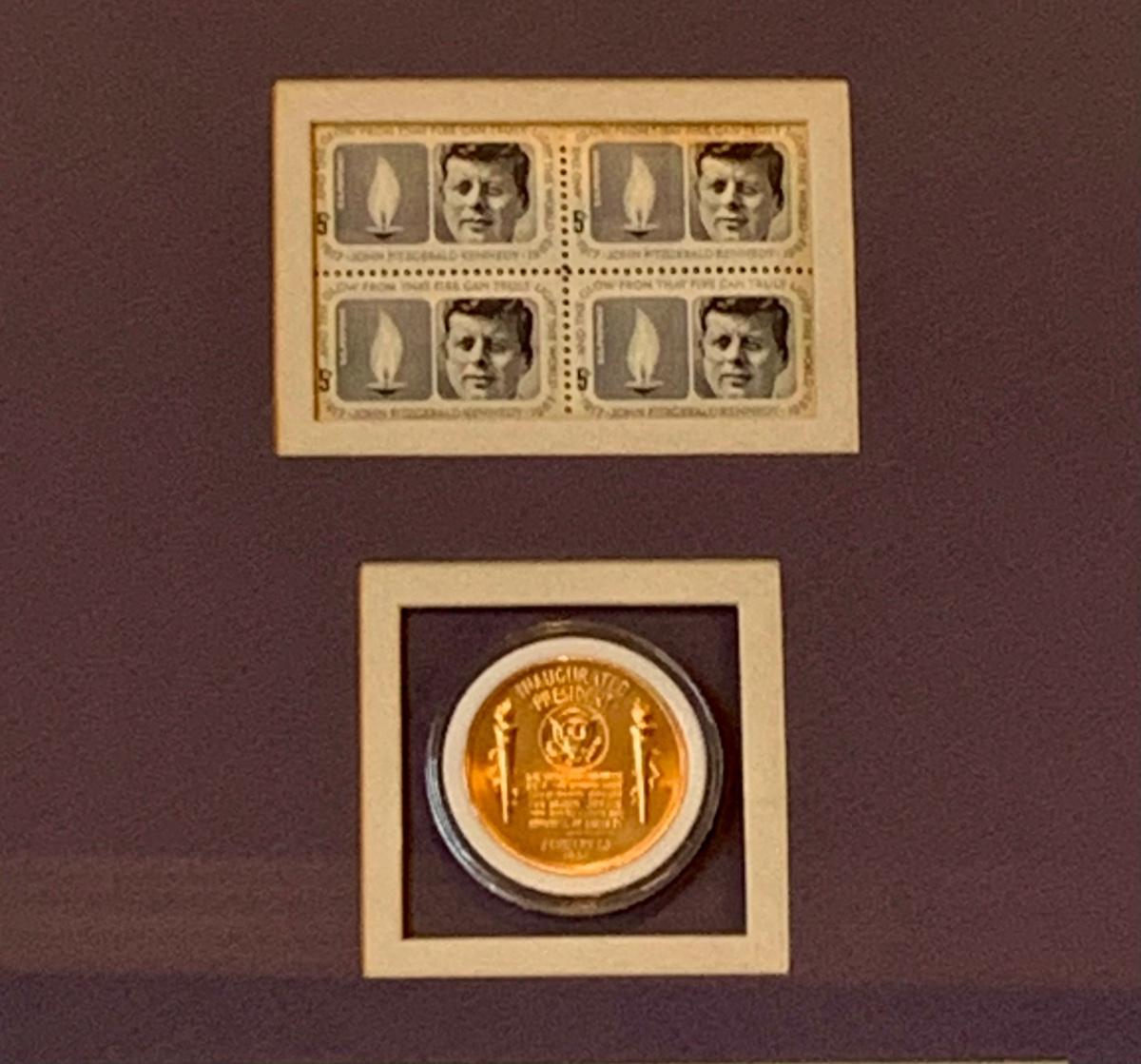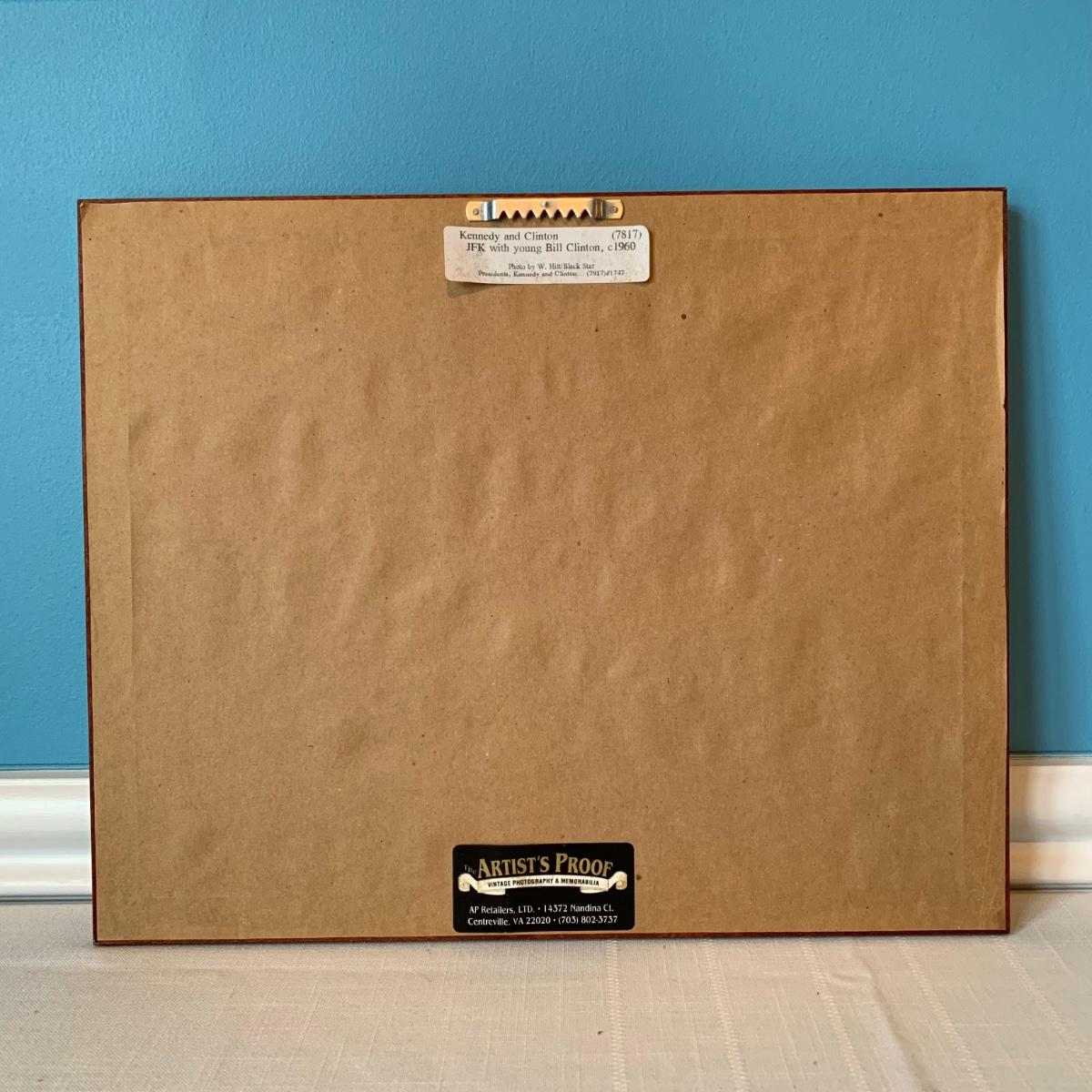 LOT 98L: John F. Kennedy Framed Collectible w/COA, Framed JFK Stamps, Vintage Photograph of JFK with young Bill Clinton, c1960