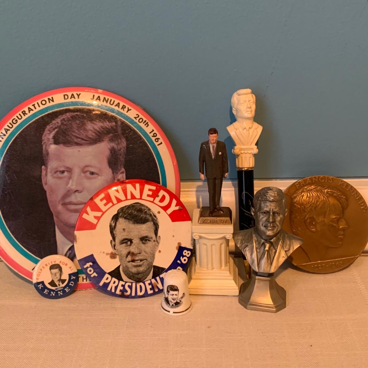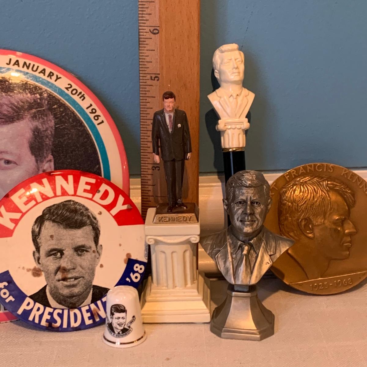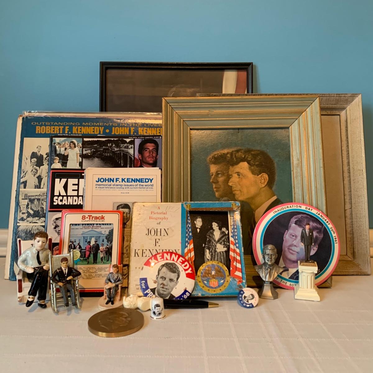 LOT 99L: Kennedy Collection: Sebastian Miniatures, Political Buttons, Pictorial Biography Cards, Portraits, Lps & 8-Track