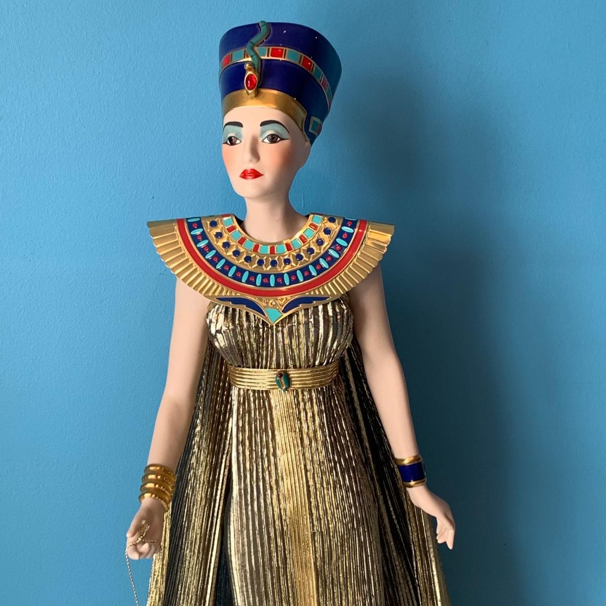 LOT 102L: Franklin Mint Porcelain Nefretiti Doll w/Display Case