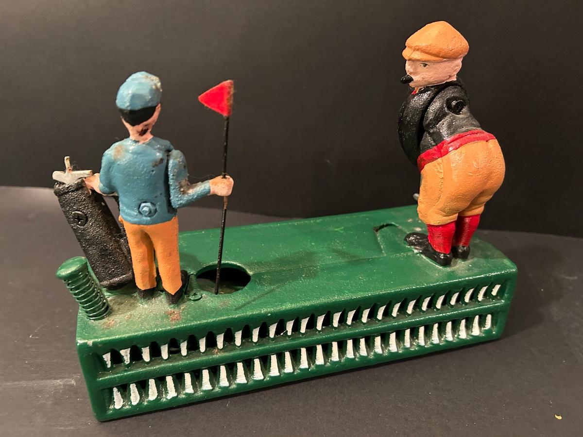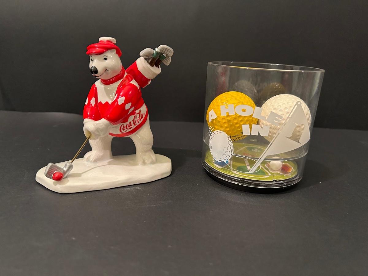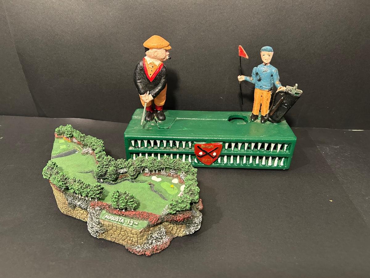 LOT 115FB: Golf Collection: Cast Iron Bank, Clock, Tumblers & More