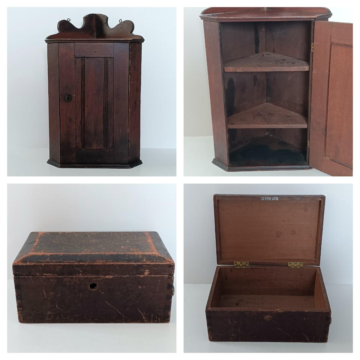 LOT 137L: Small Vintage Corner Cabinet with Wood Box