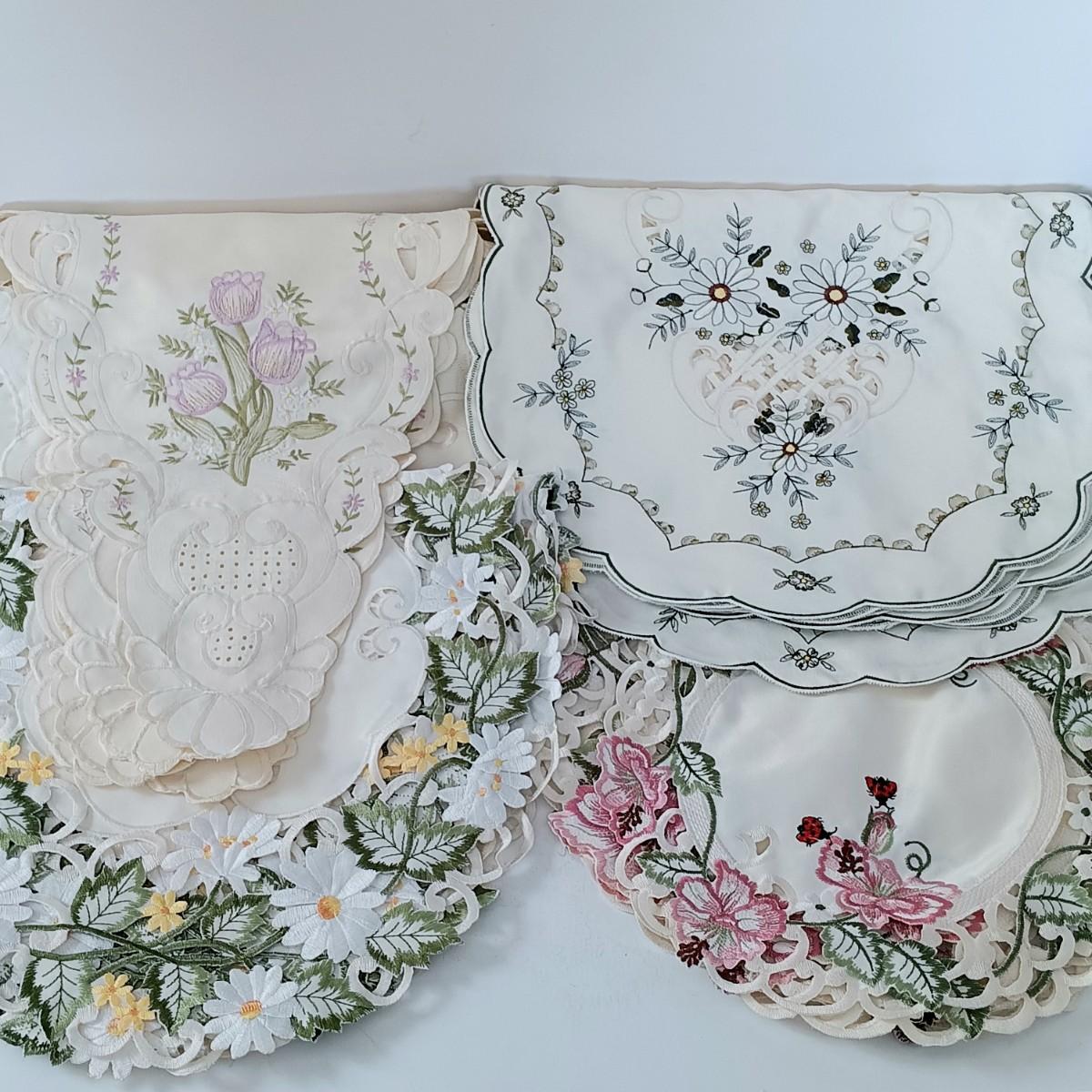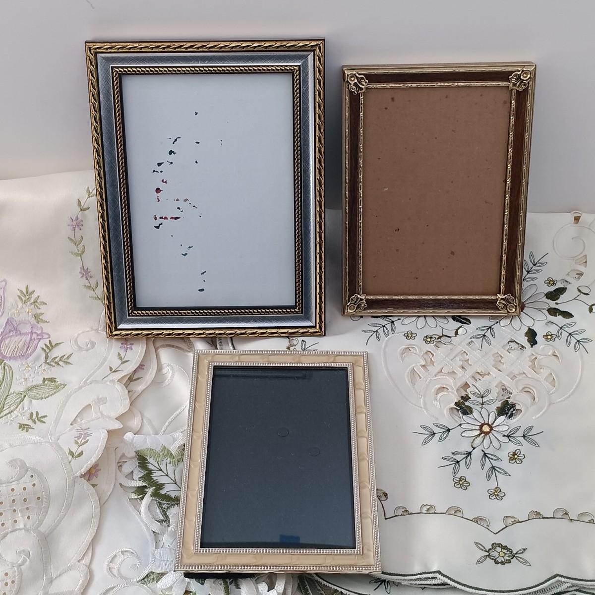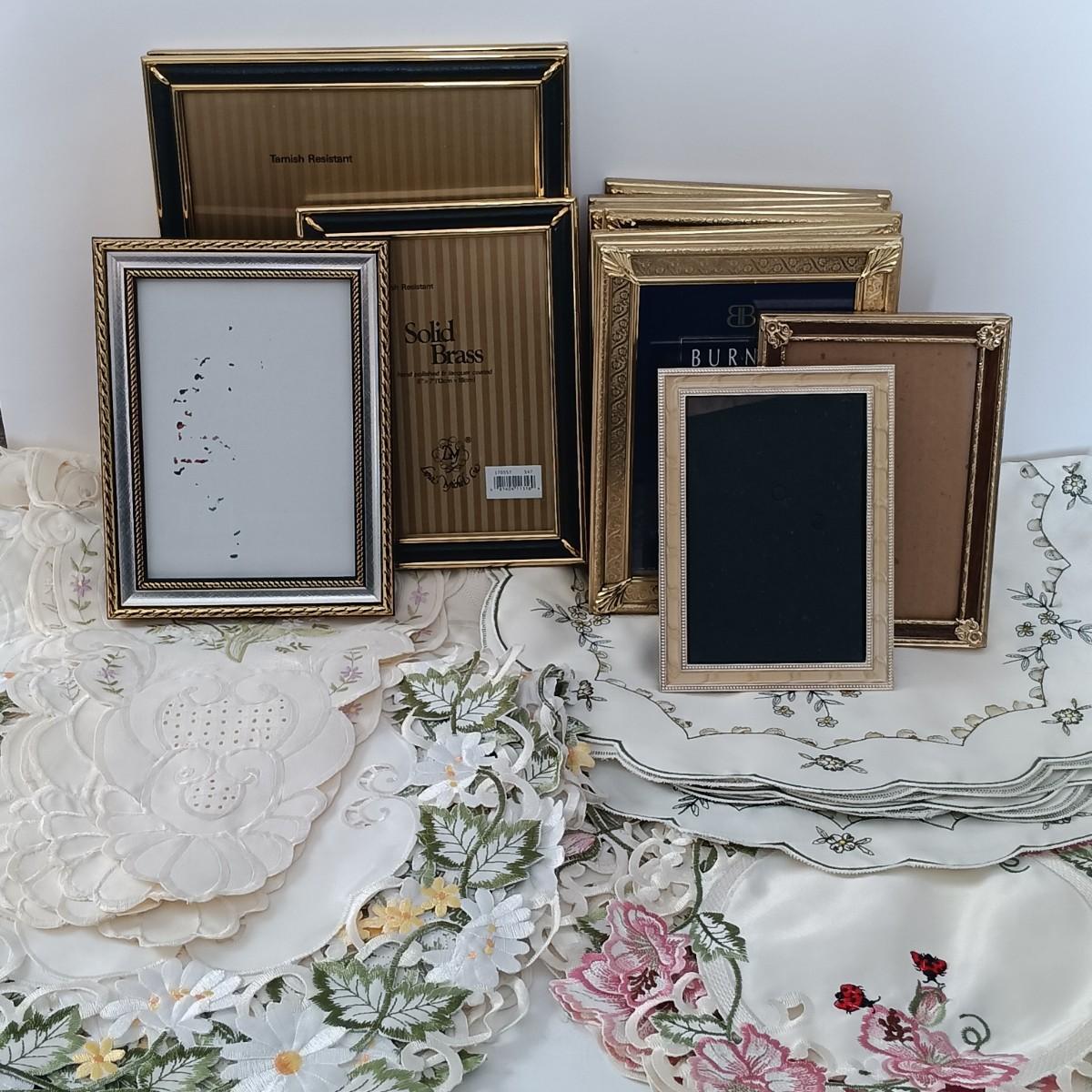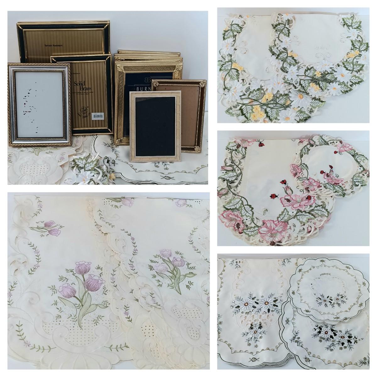 LOT 138L: A Collection of Embroidered Linen with Picture Frames in Various Sizes