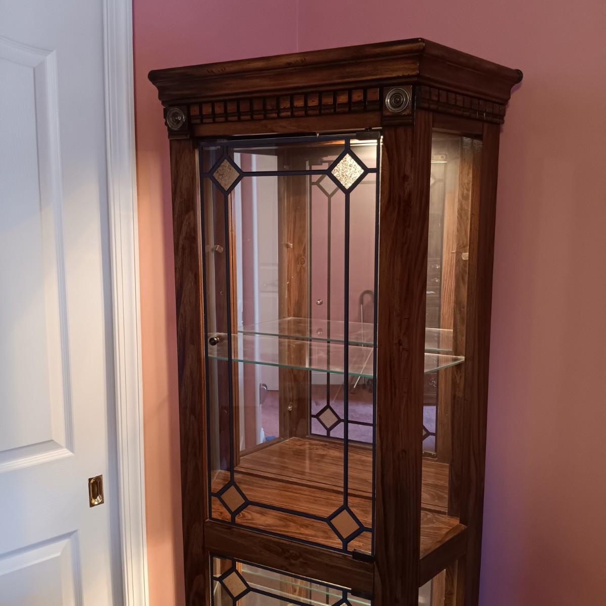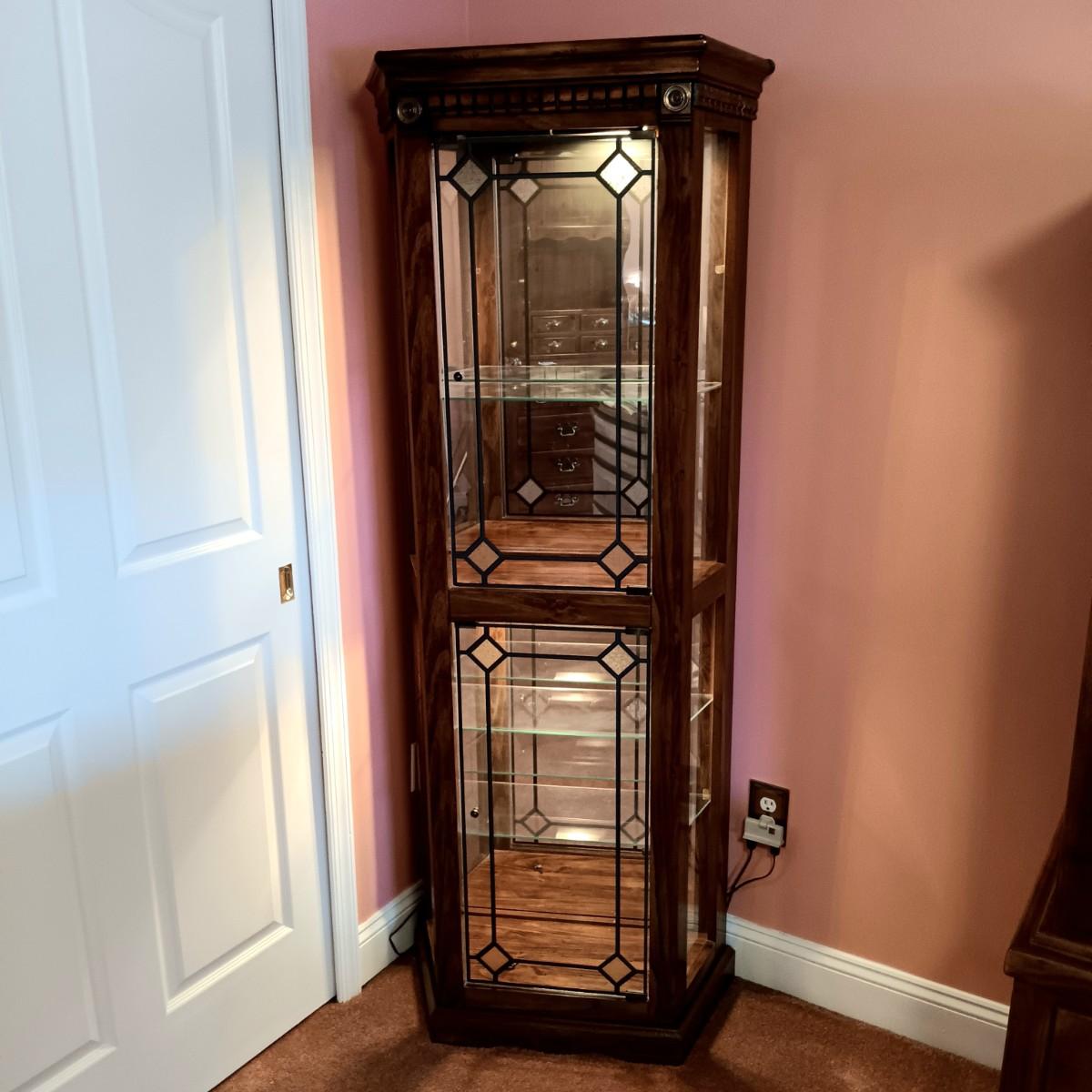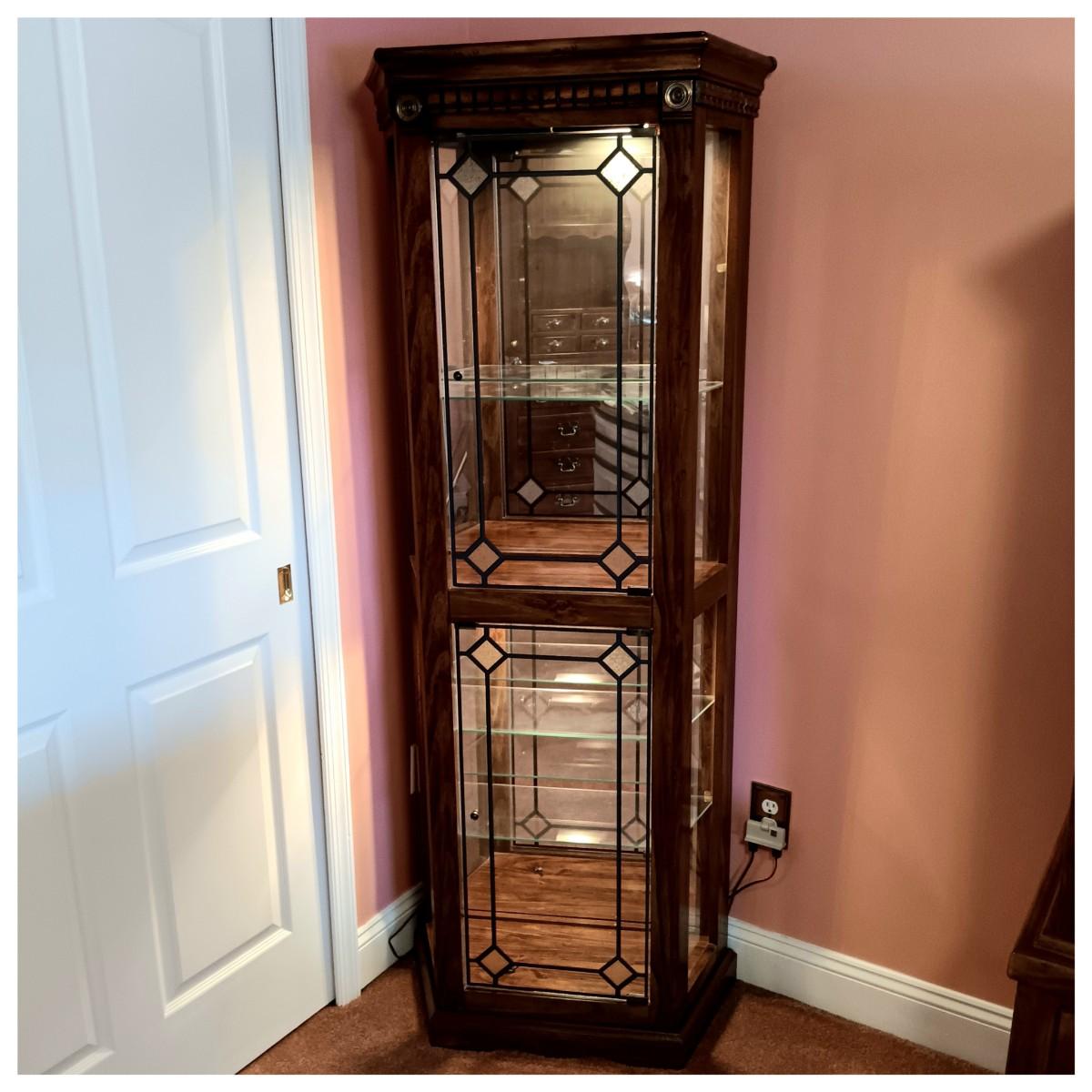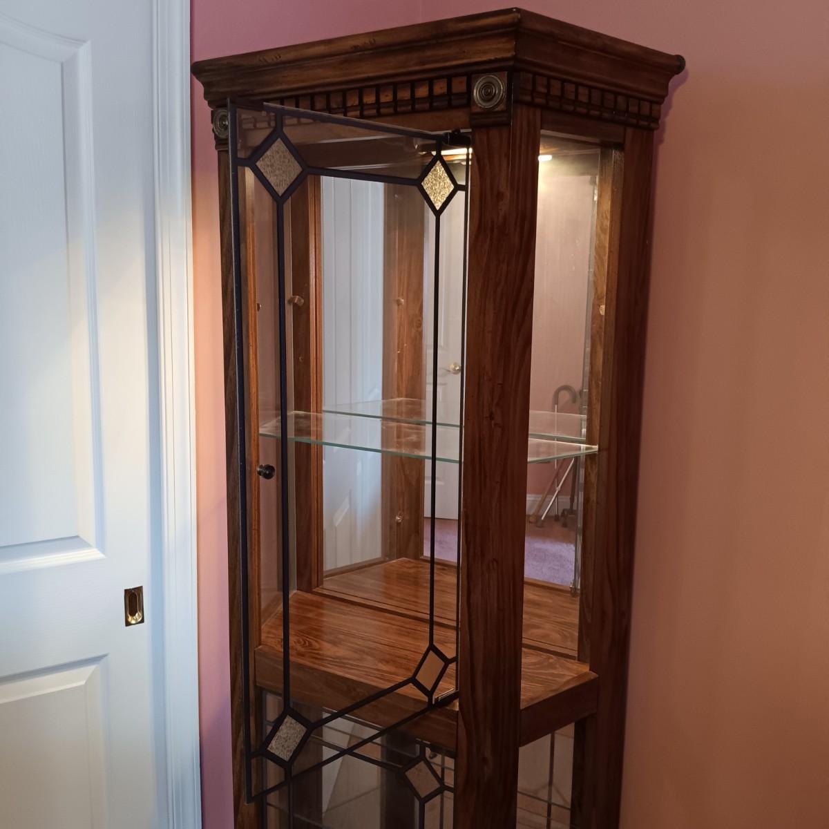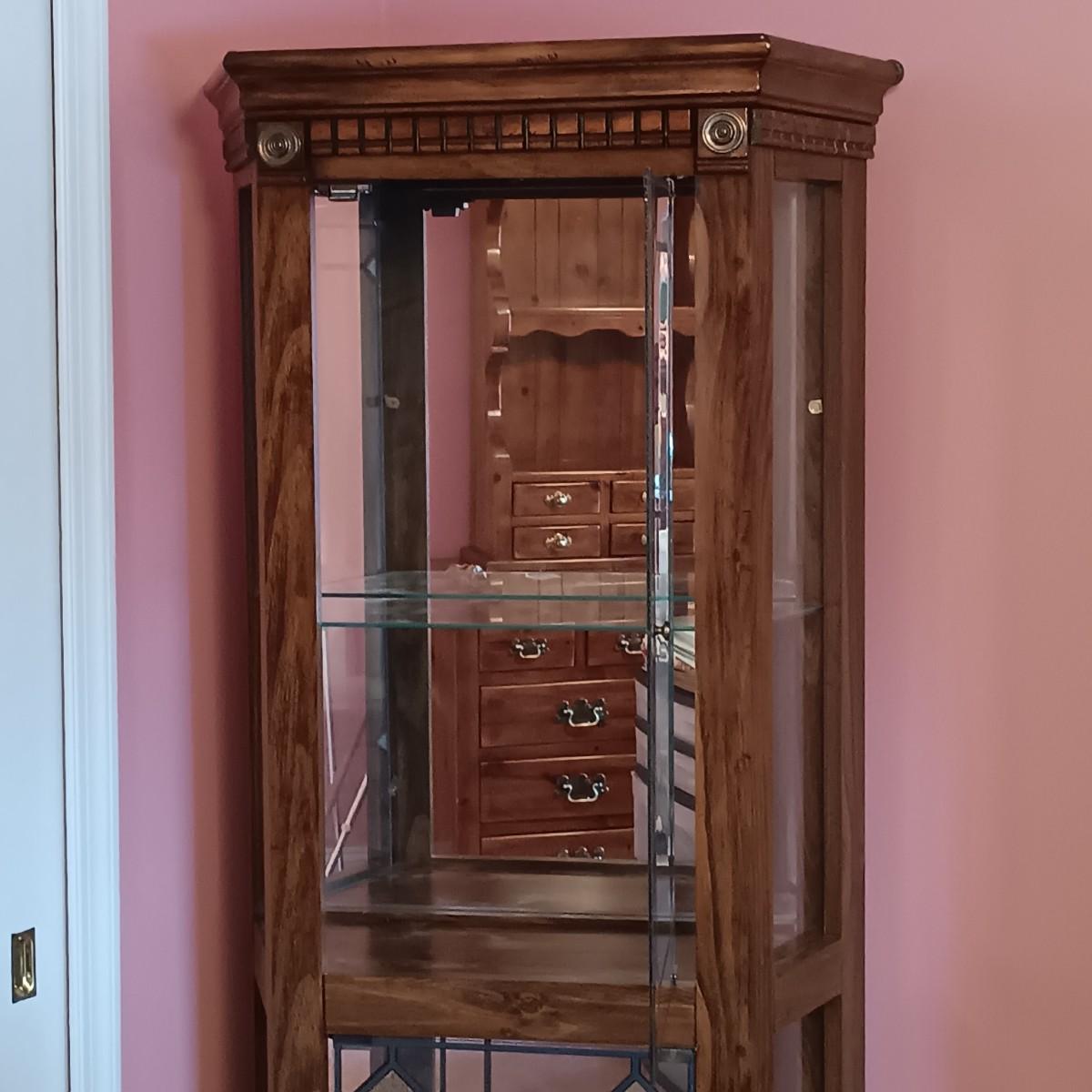 LOT 149PB: Solid Wood Lighted Curio Cabinet with Glass Shelves