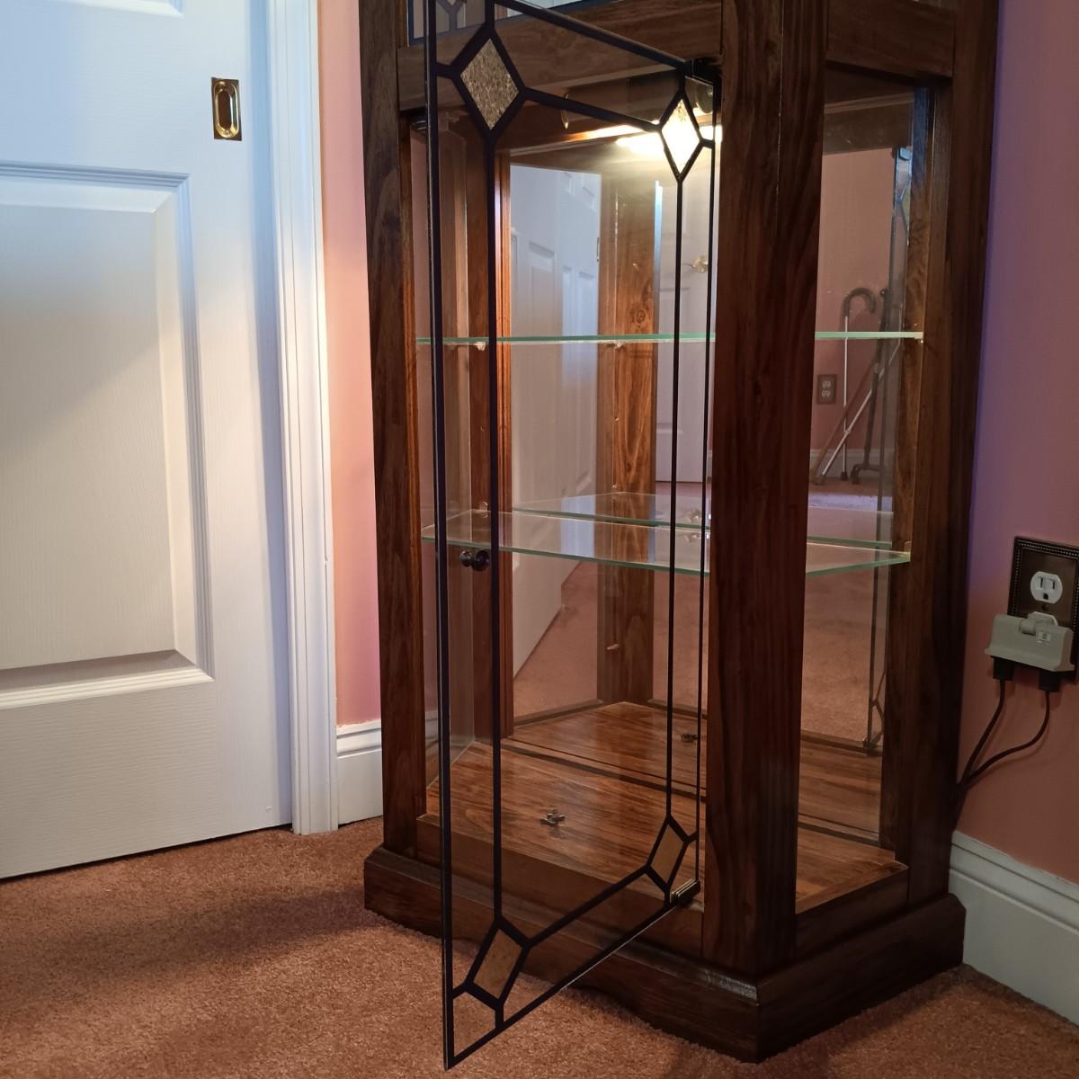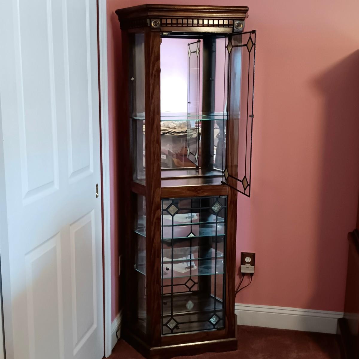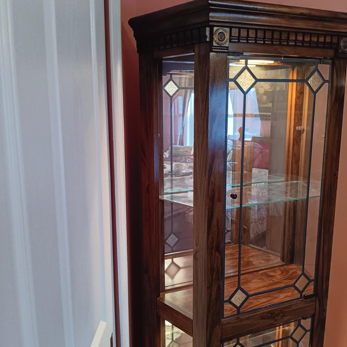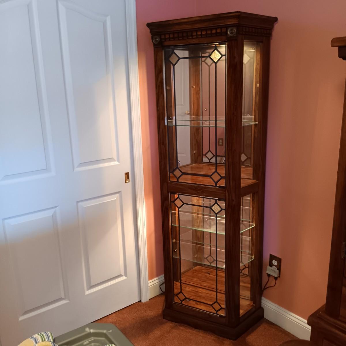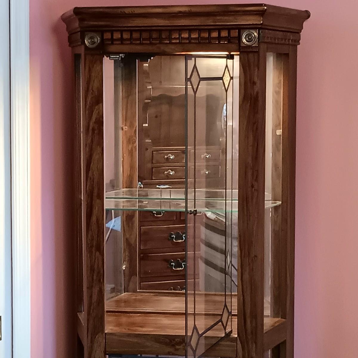 LOT 149PB: Solid Wood Lighted Curio Cabinet with Glass Shelves
