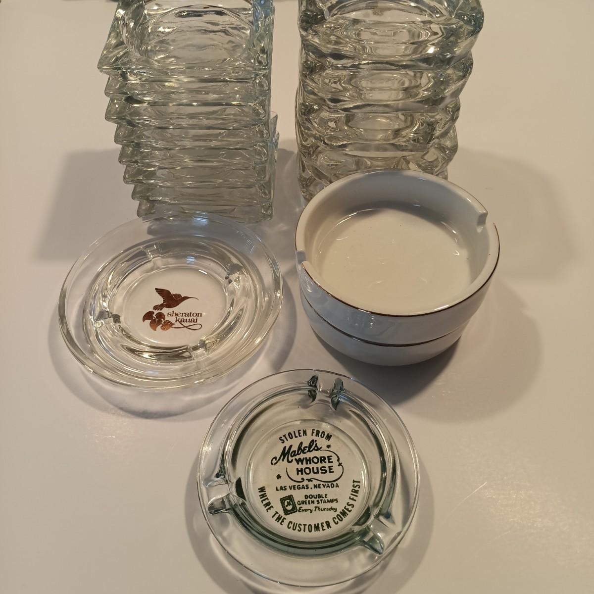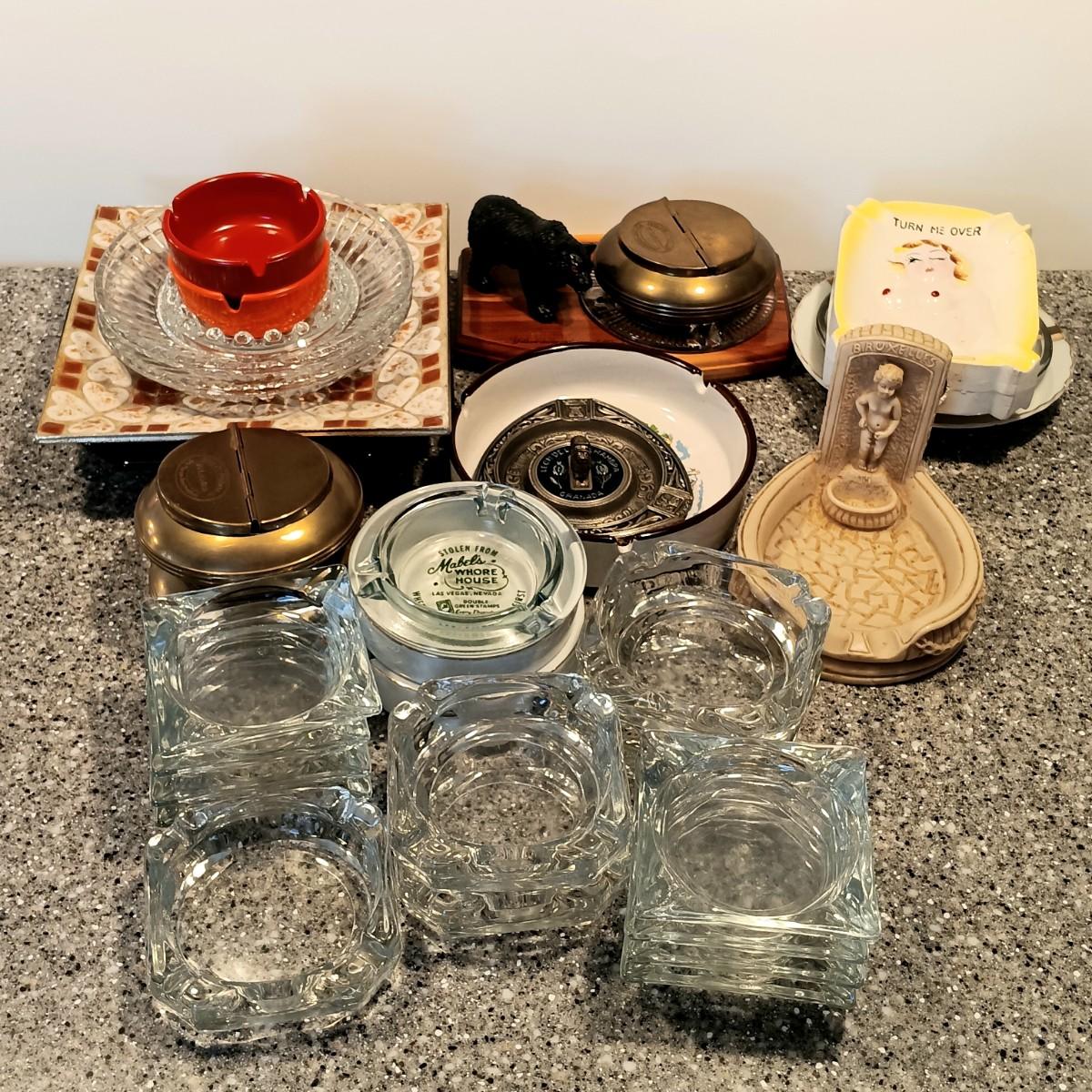 LOT 159L: Large Vintage Lot of Glass, Ceramic, Plastic and Metal Ash Trays