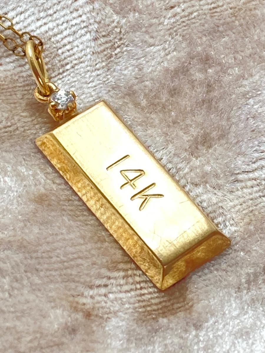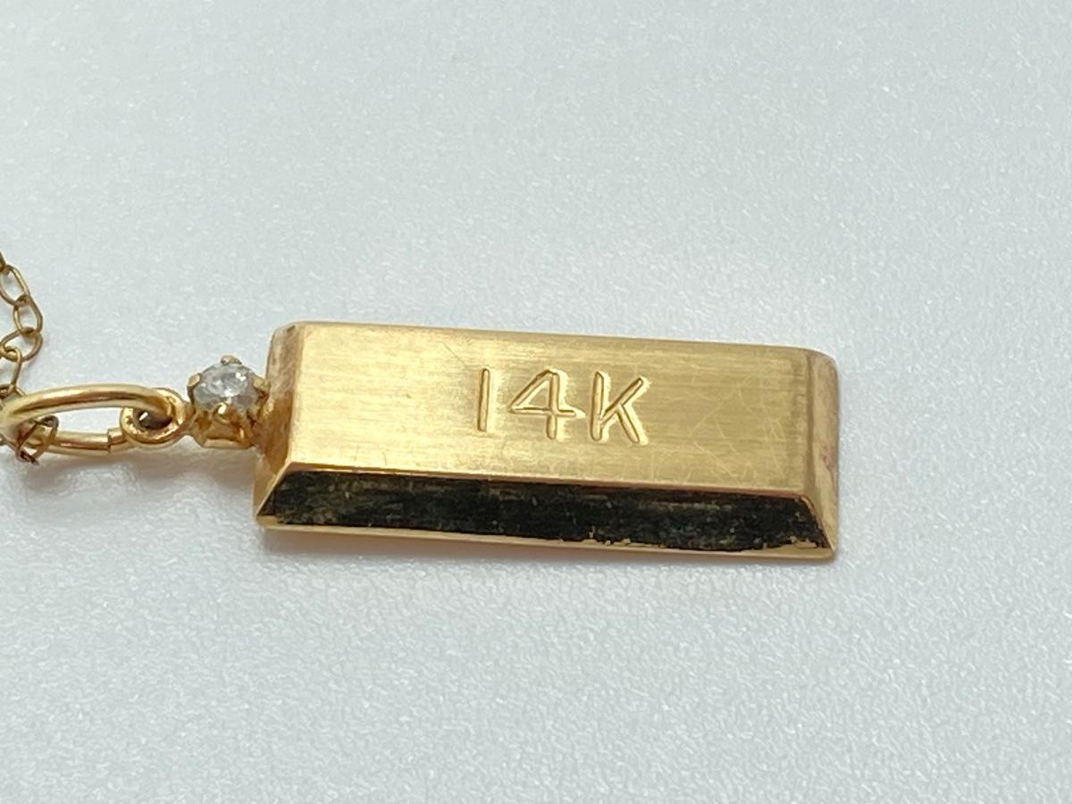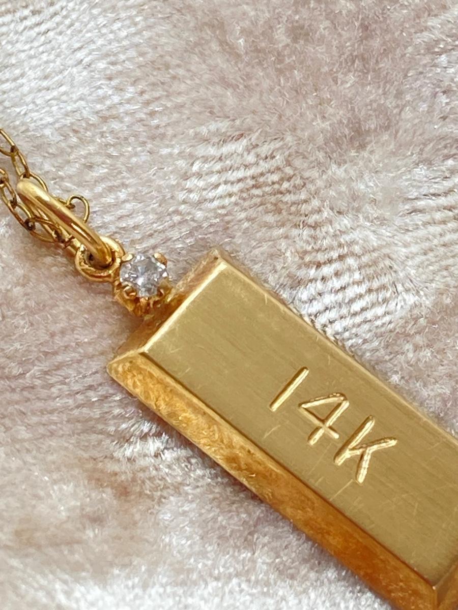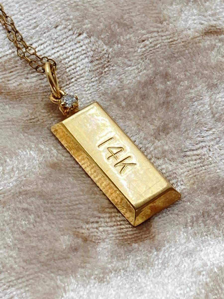 LOT 163J: ZZ Gold Bar Diamond Chip Pendant - 14K., Tw 1.1g with 20" Gold Filled Chain (1/20 14KGF)