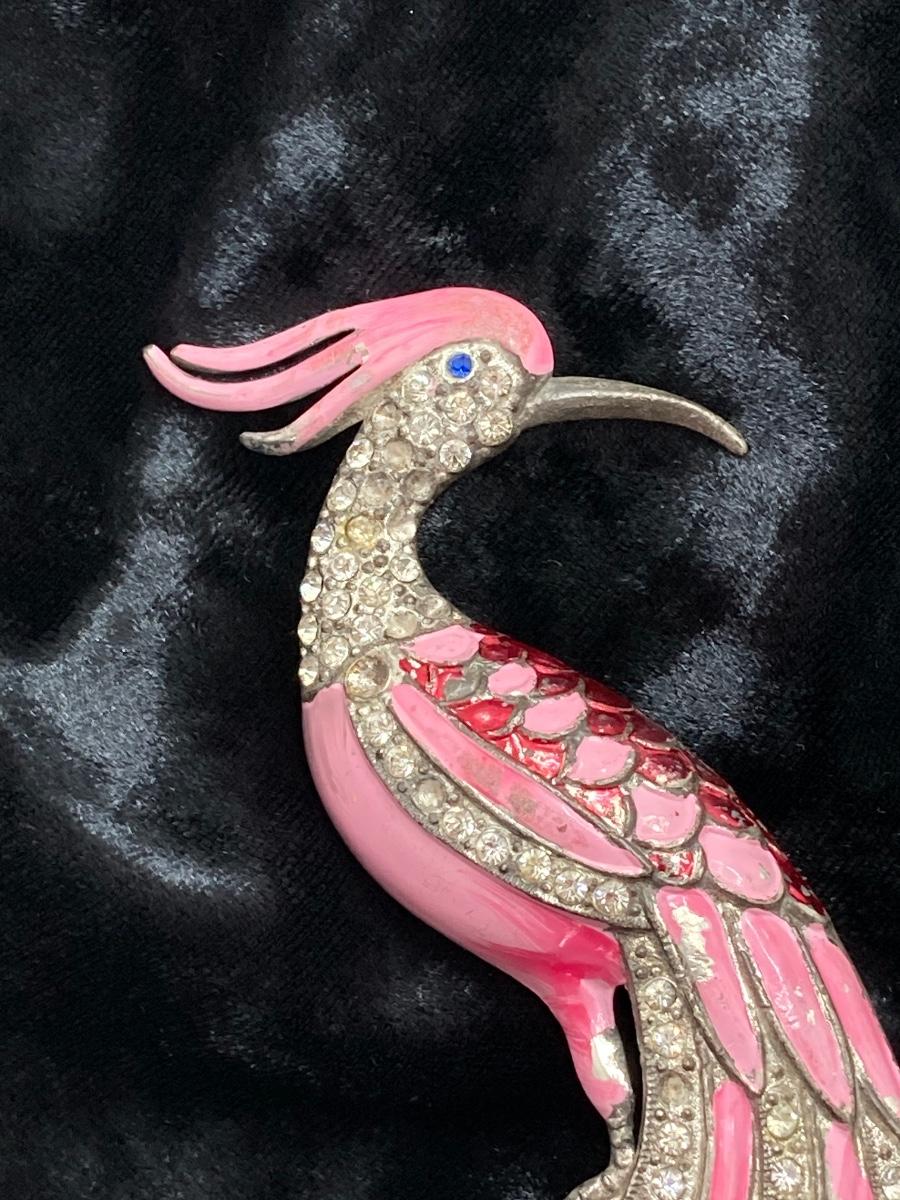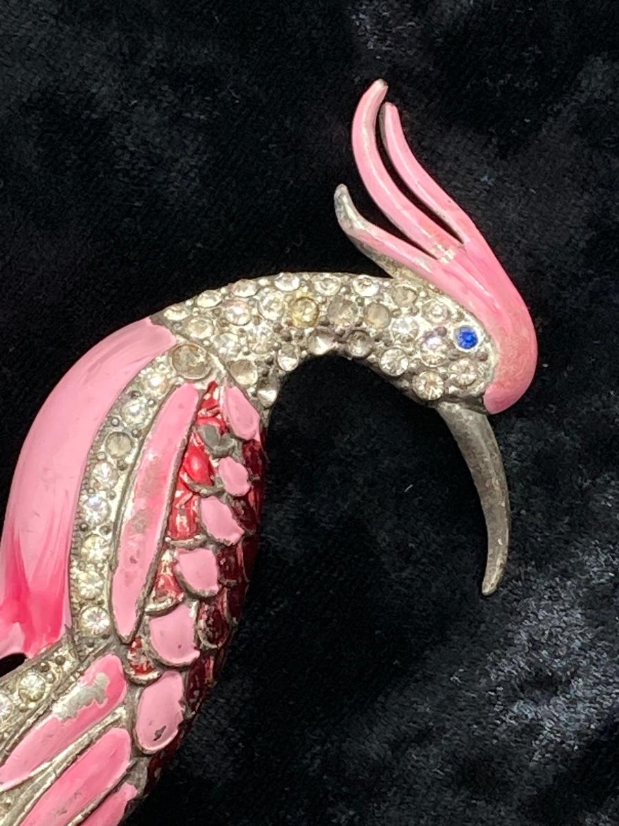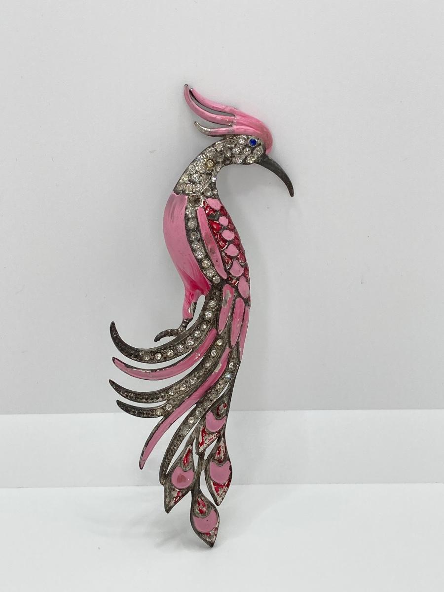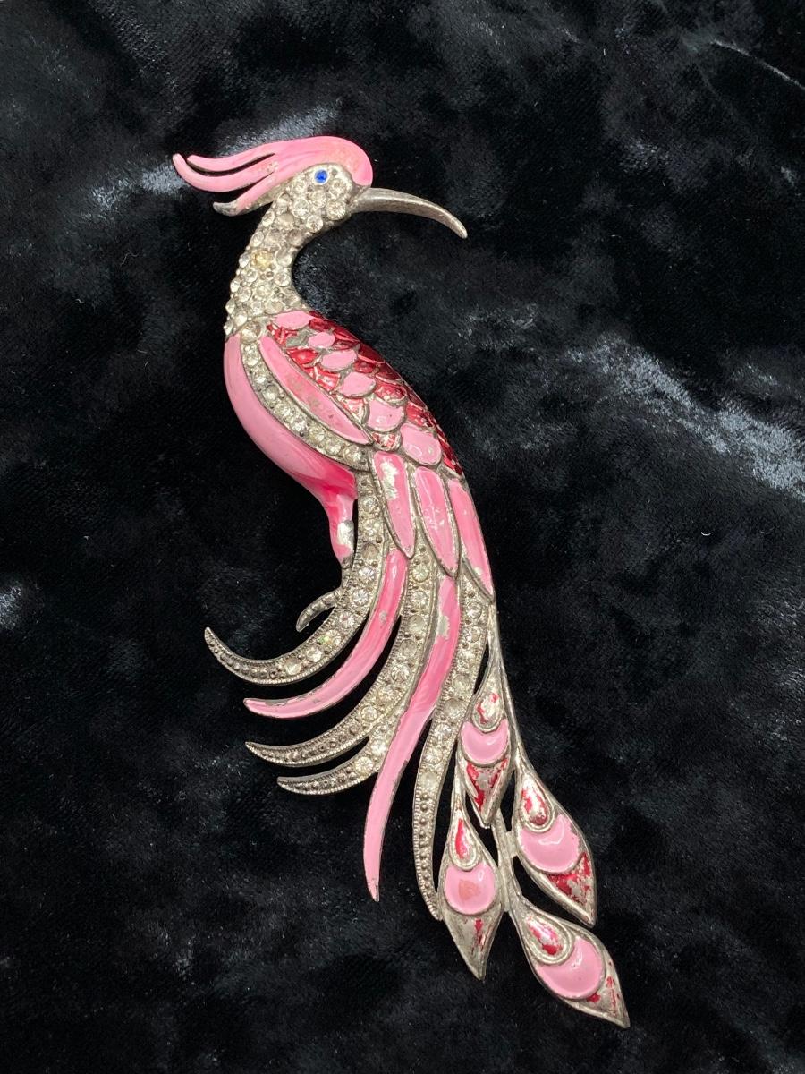 LOT 170J: Vintage Art Deco Enamel and Rhinestone Bird of Paradise Brooch