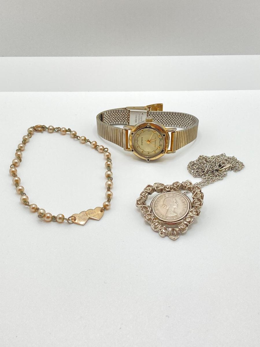 LOT 182J Vintage Jewelry Collection - Queen Elizabeth Coin Heart Pendant Necklace and More