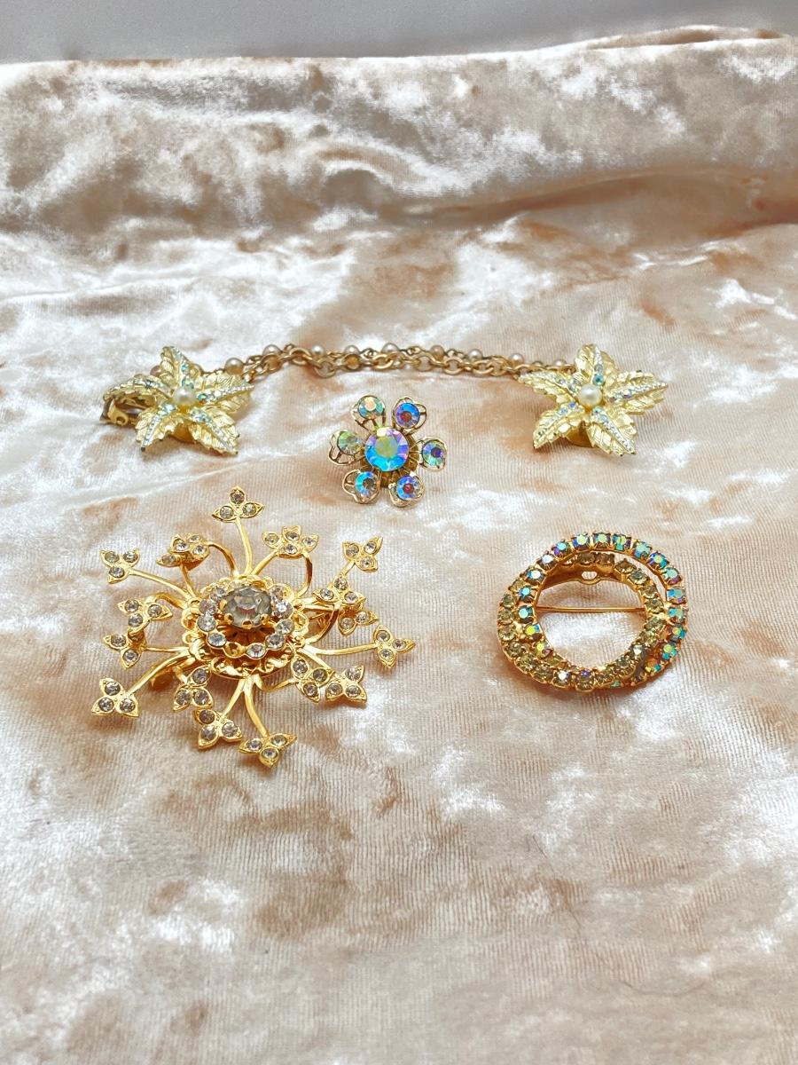 LOT 188J: Vintage Rhinestone Collection - Sweater Clip and Brooches