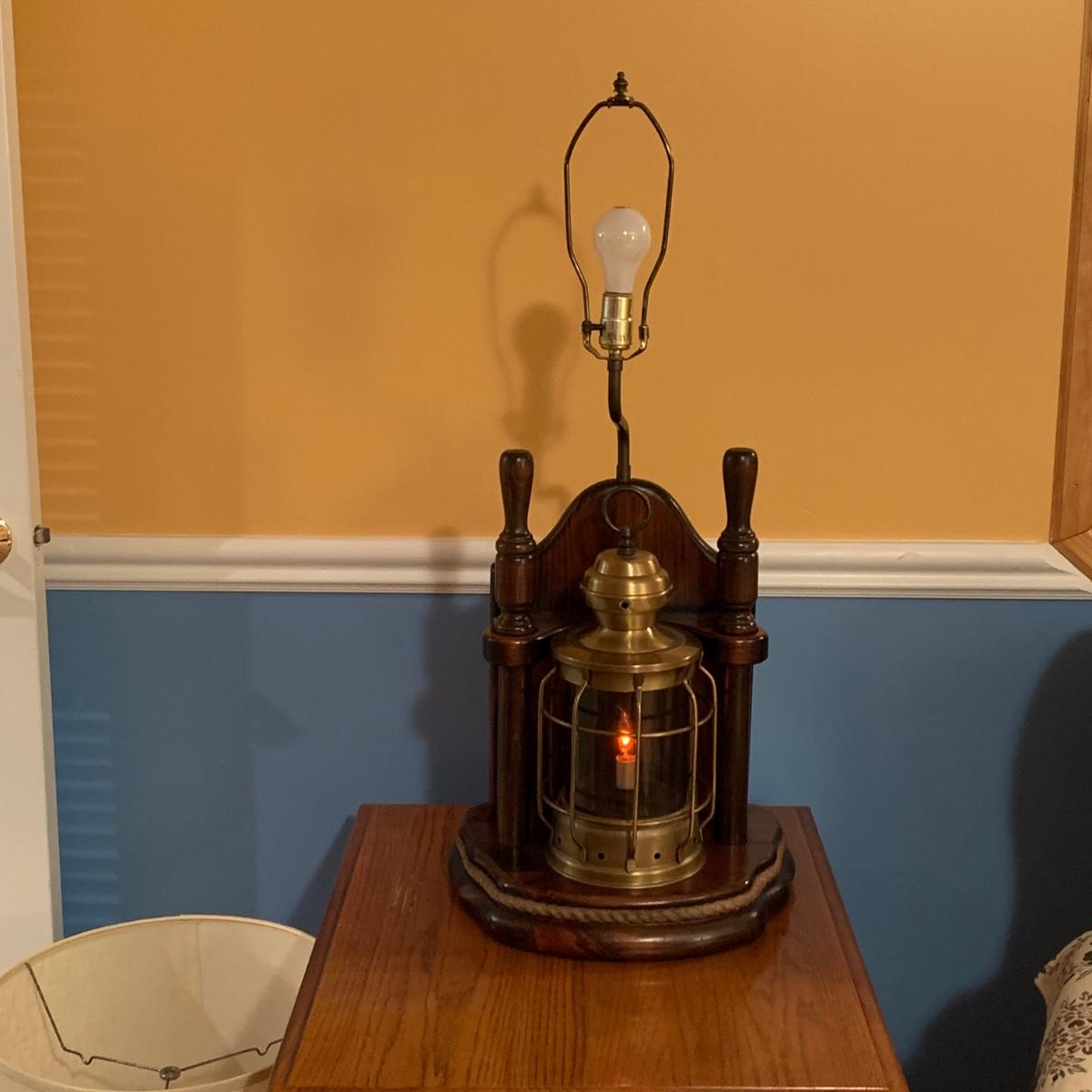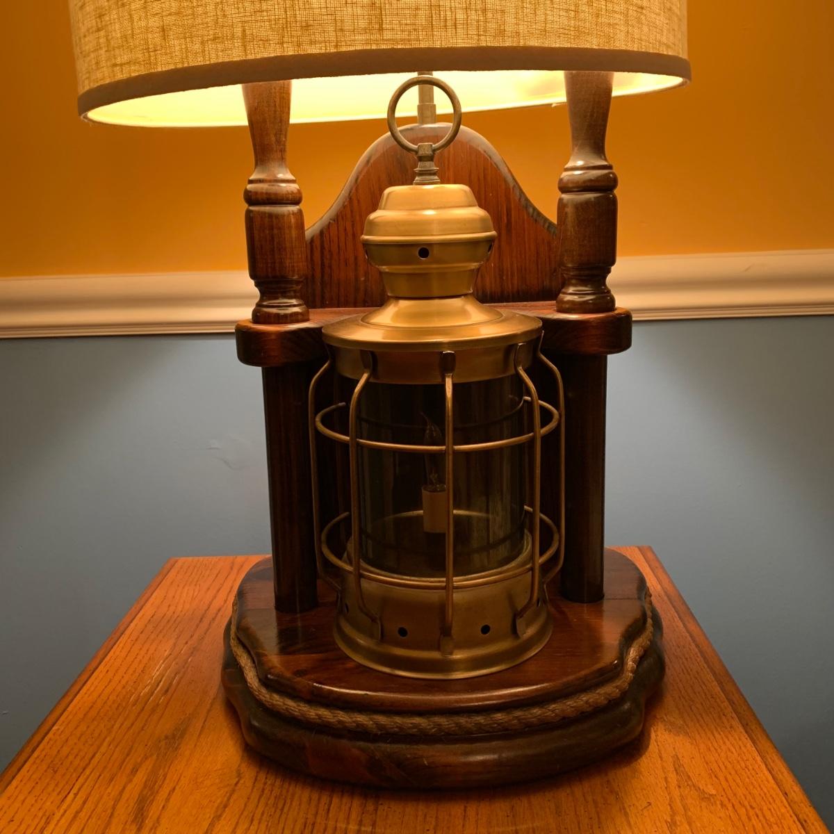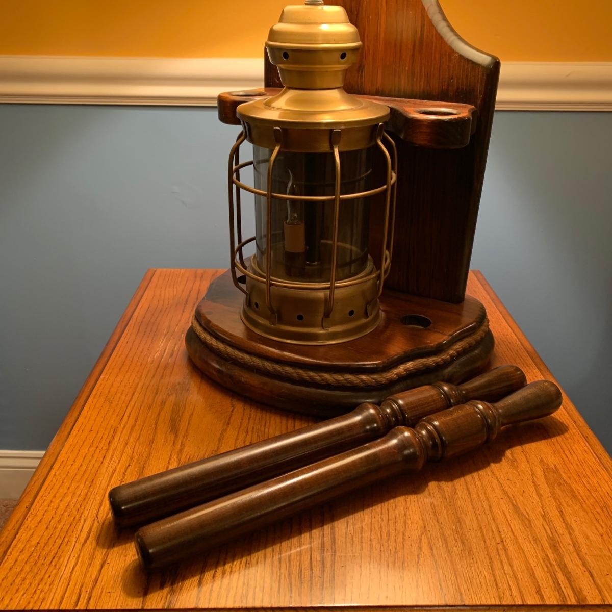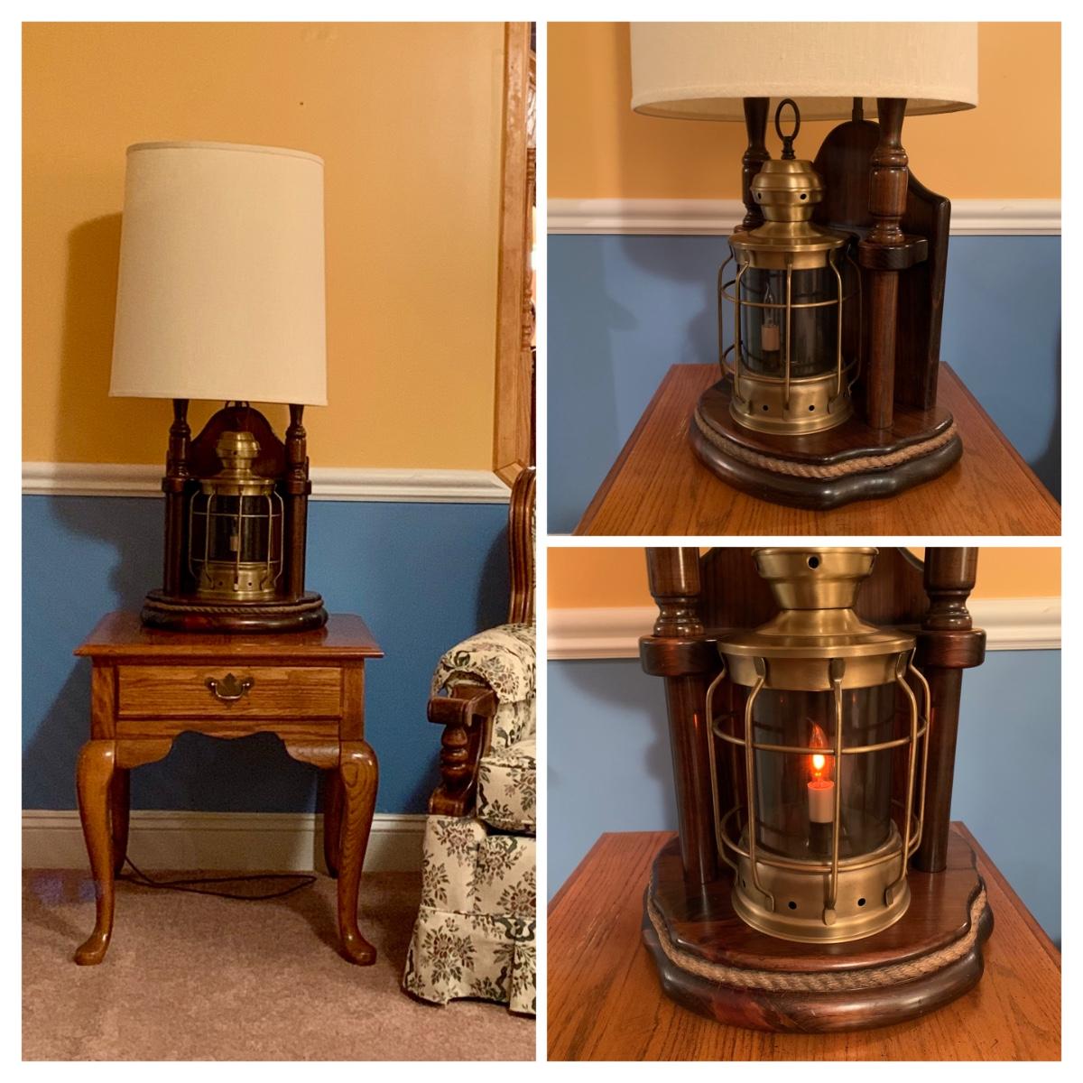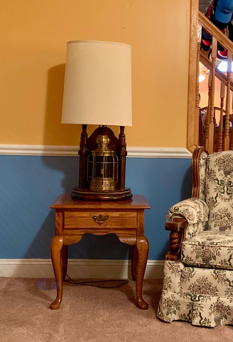 LOT 226FB: Vintage Nautical Steampunk Ship Lantern Lamp & Broyhill End Table