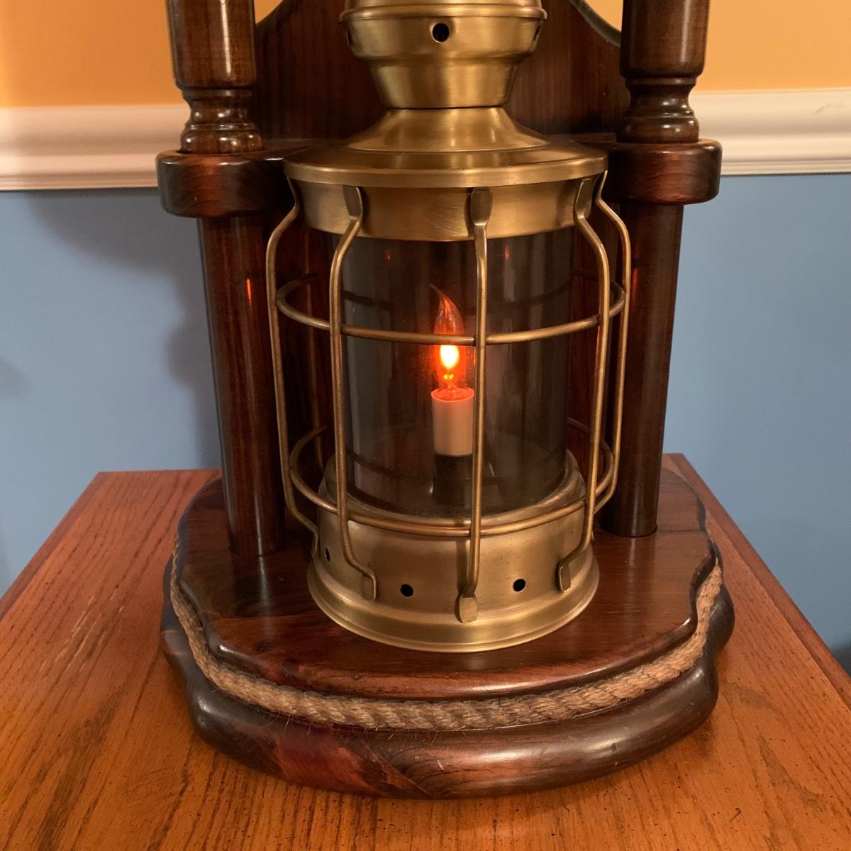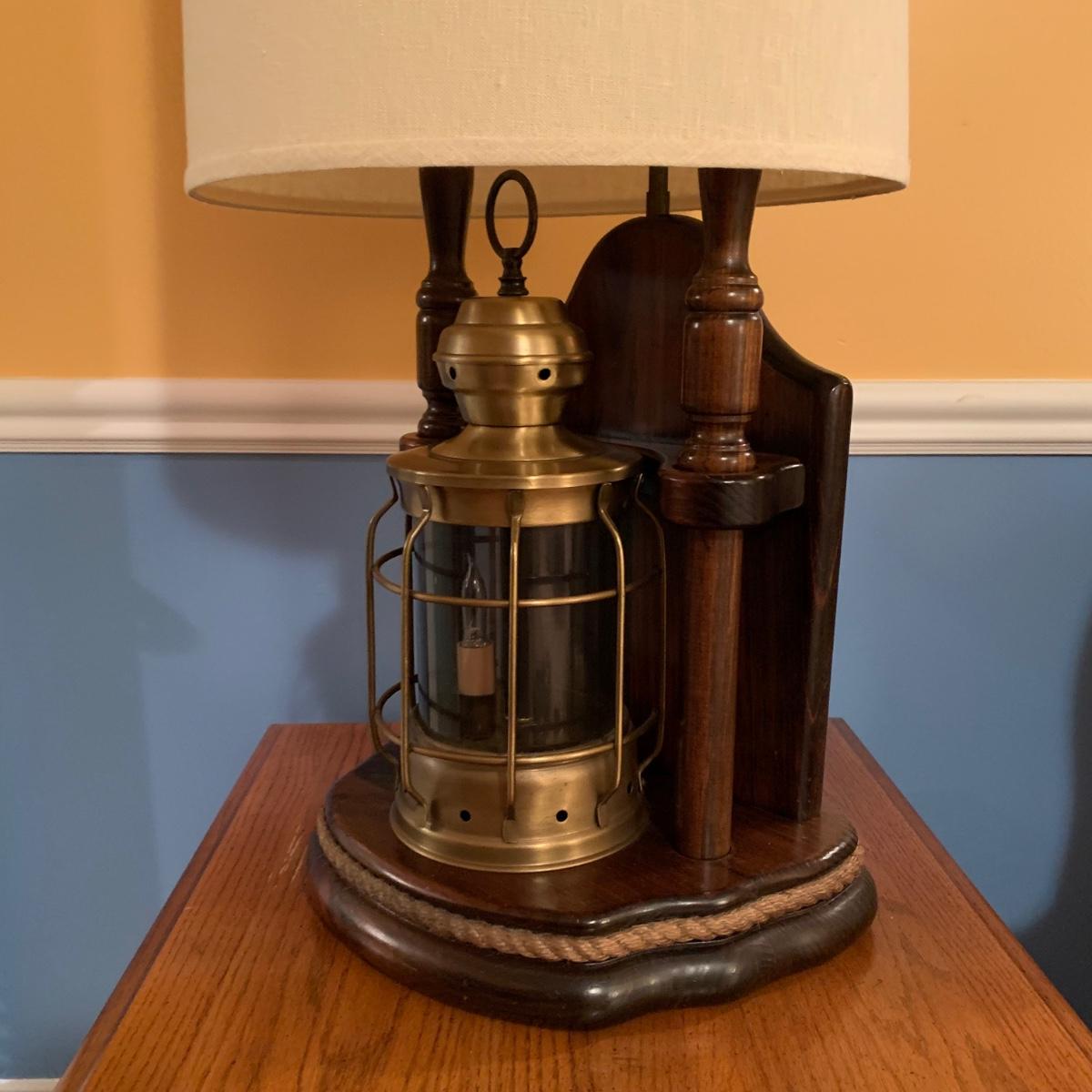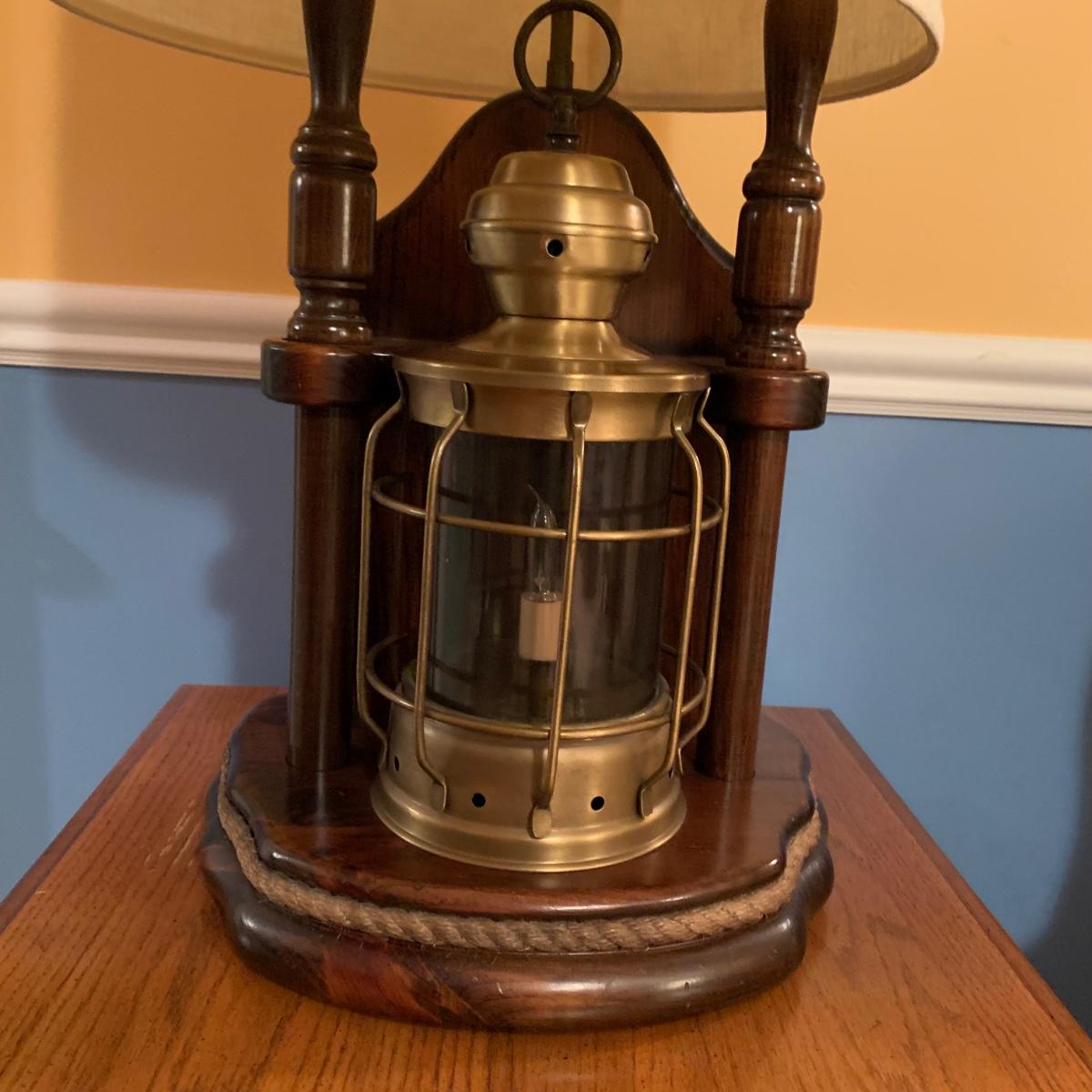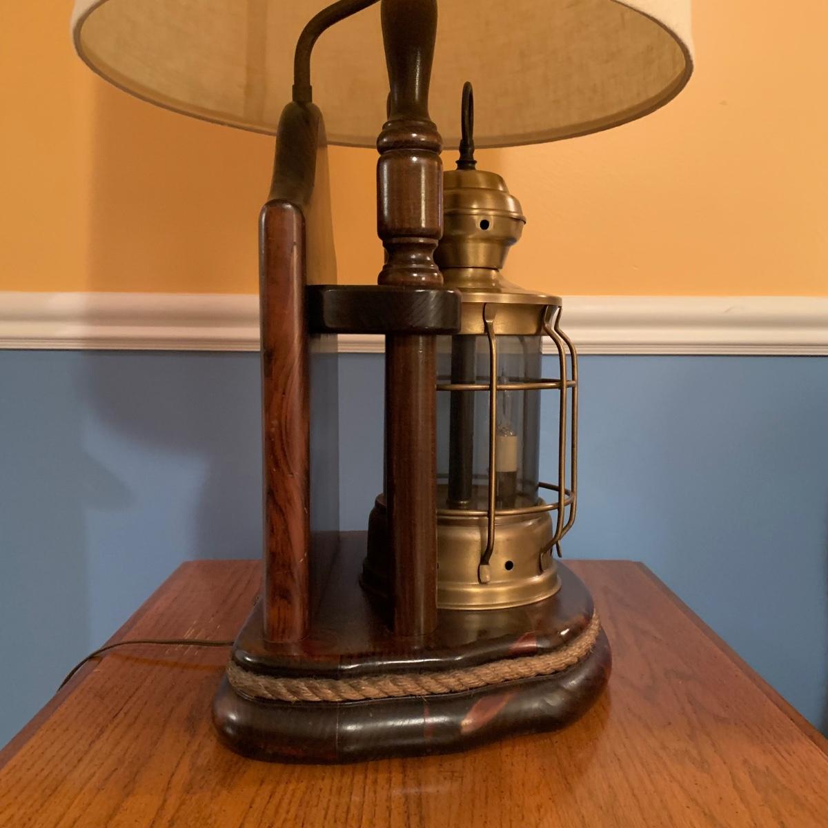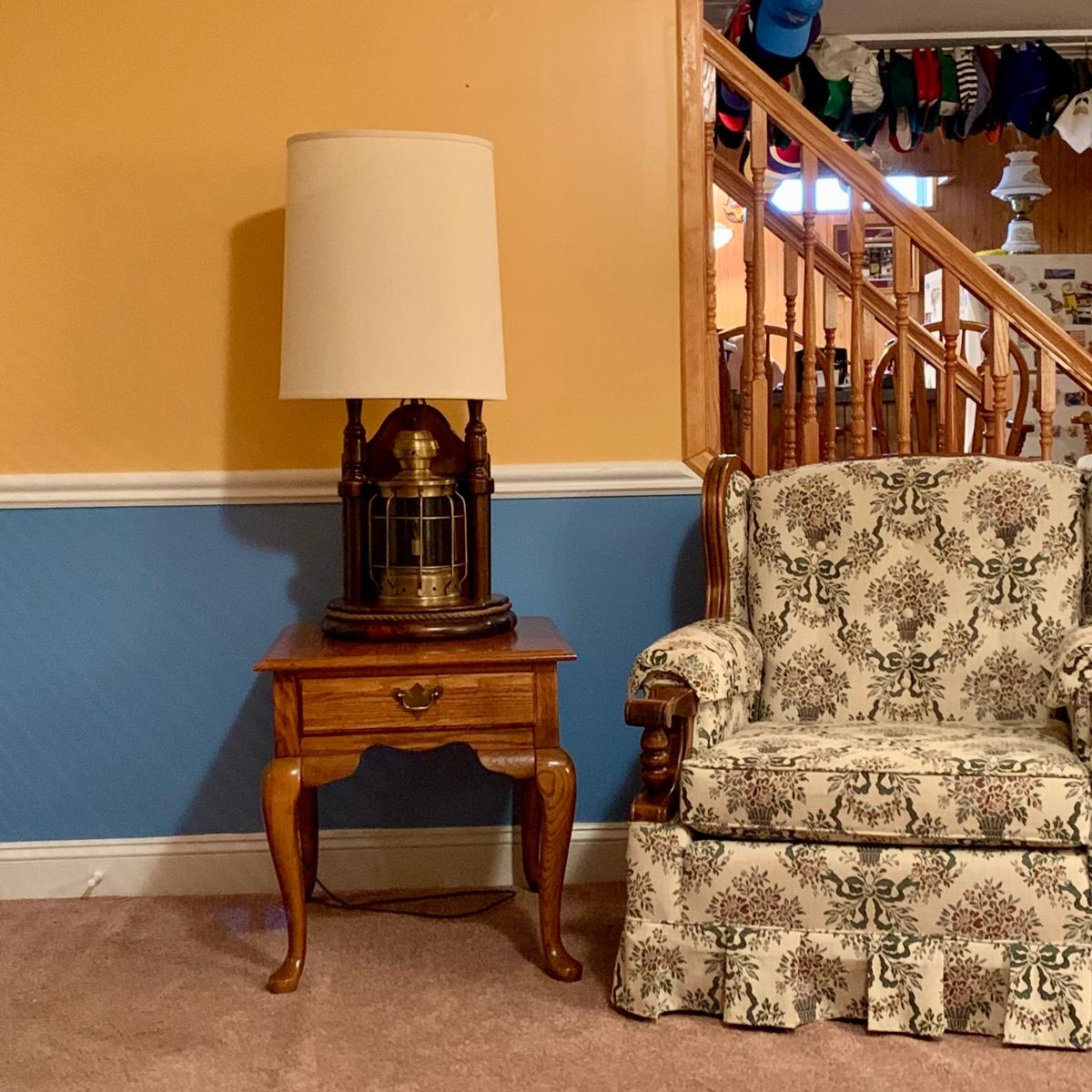 LOT 226FB: Vintage Nautical Steampunk Ship Lantern Lamp & Broyhill End Table