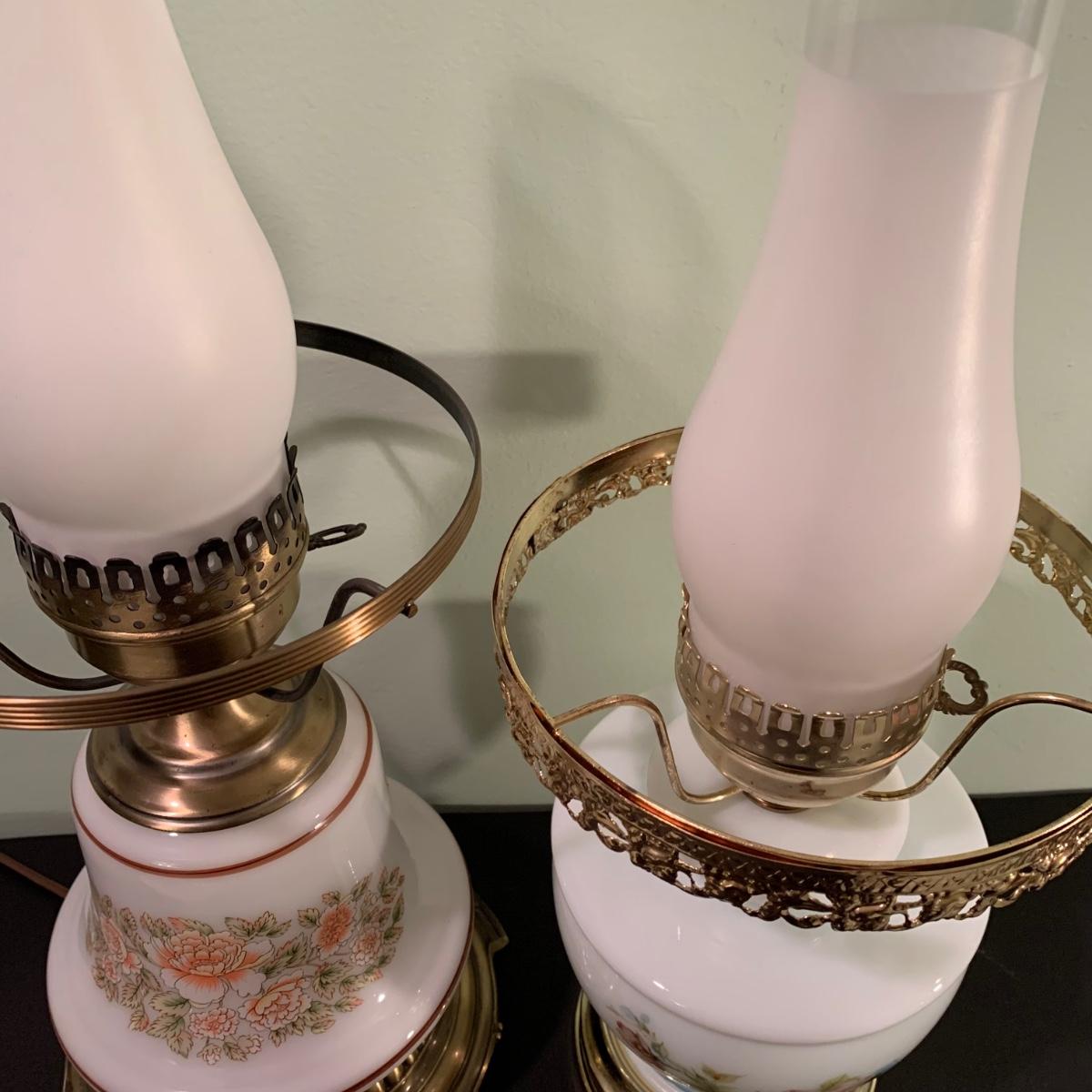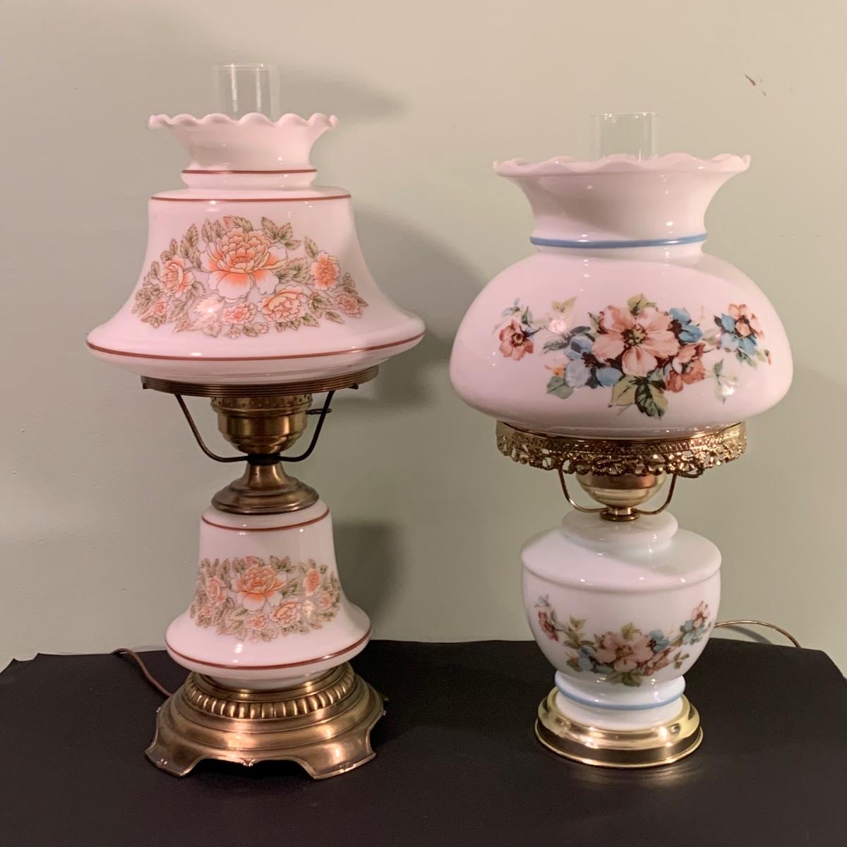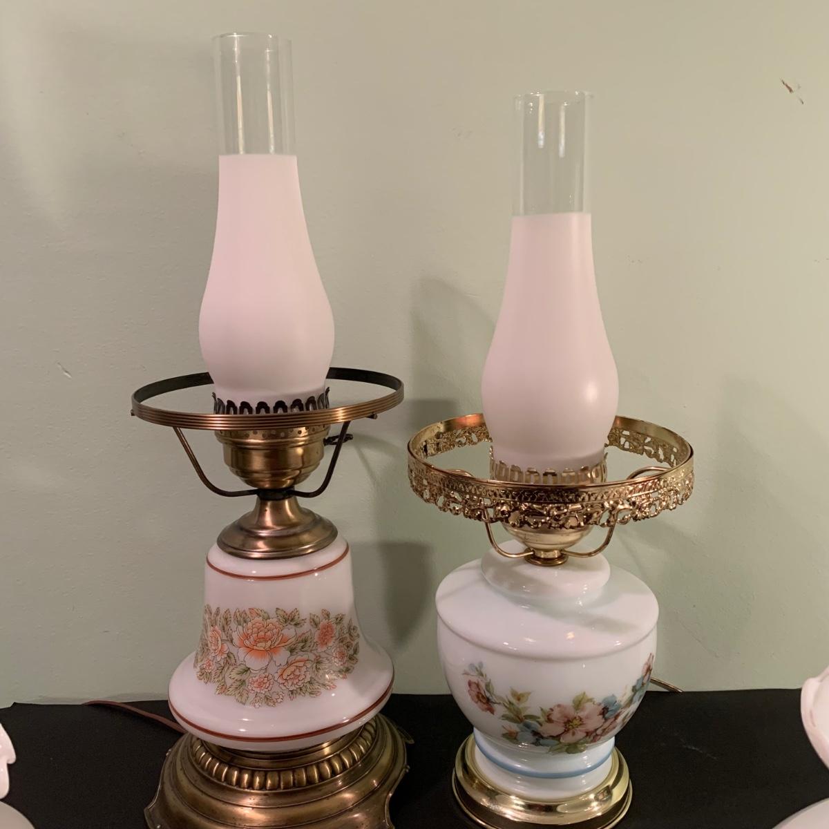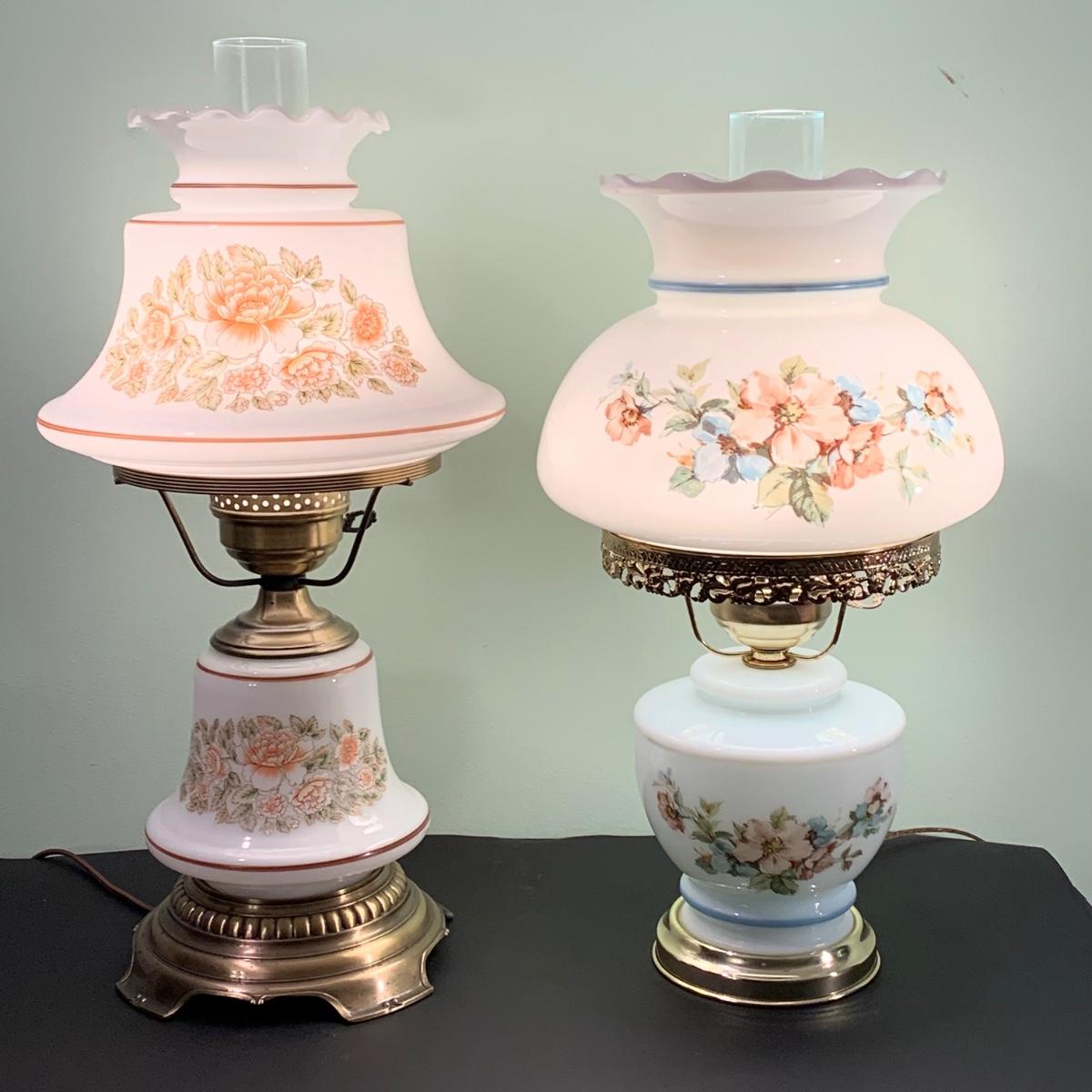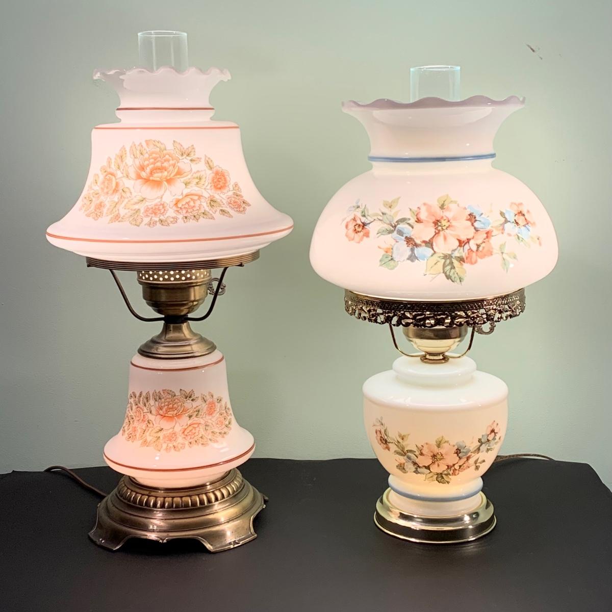 LOT 230FB: Vintage Floral Hurricane Style Lamps