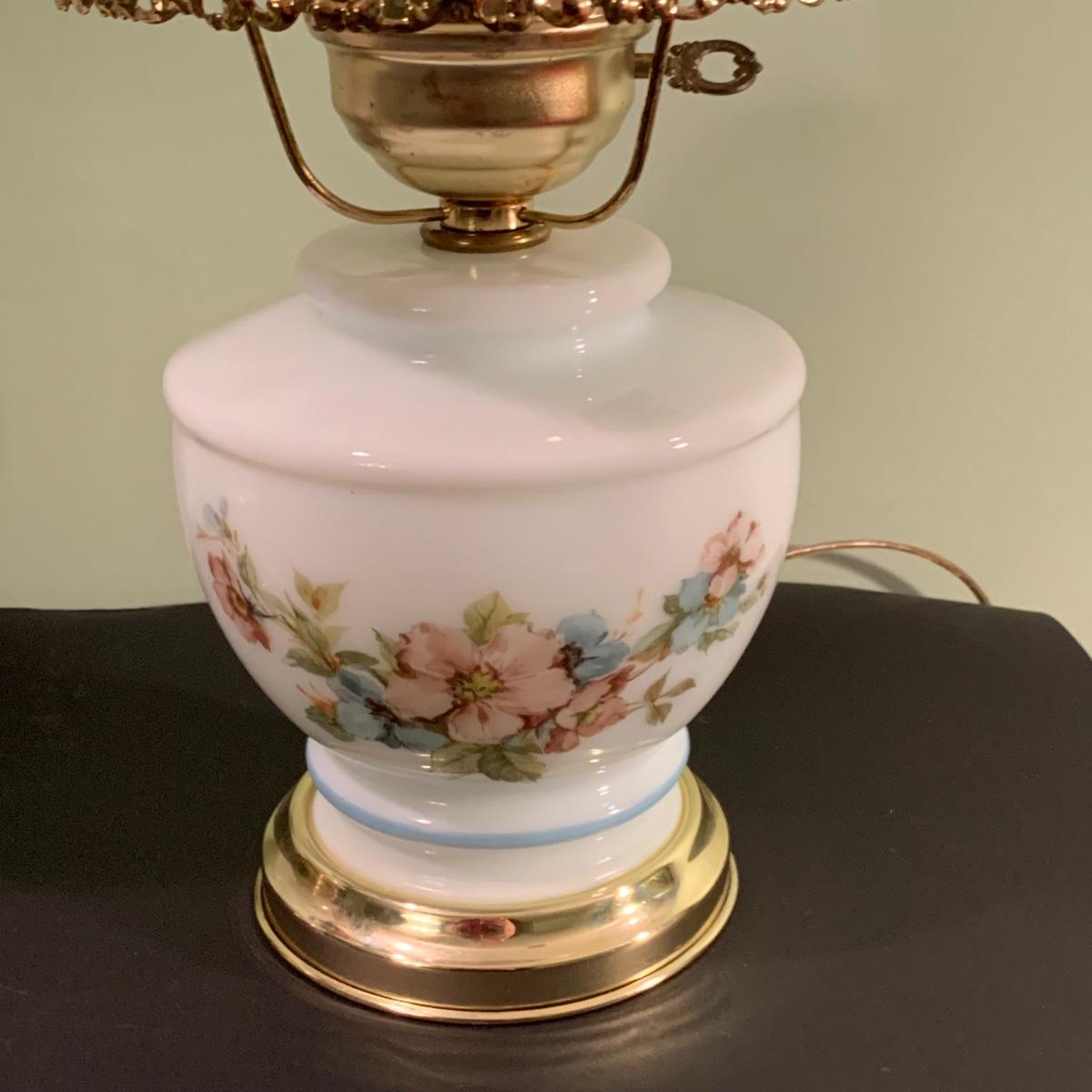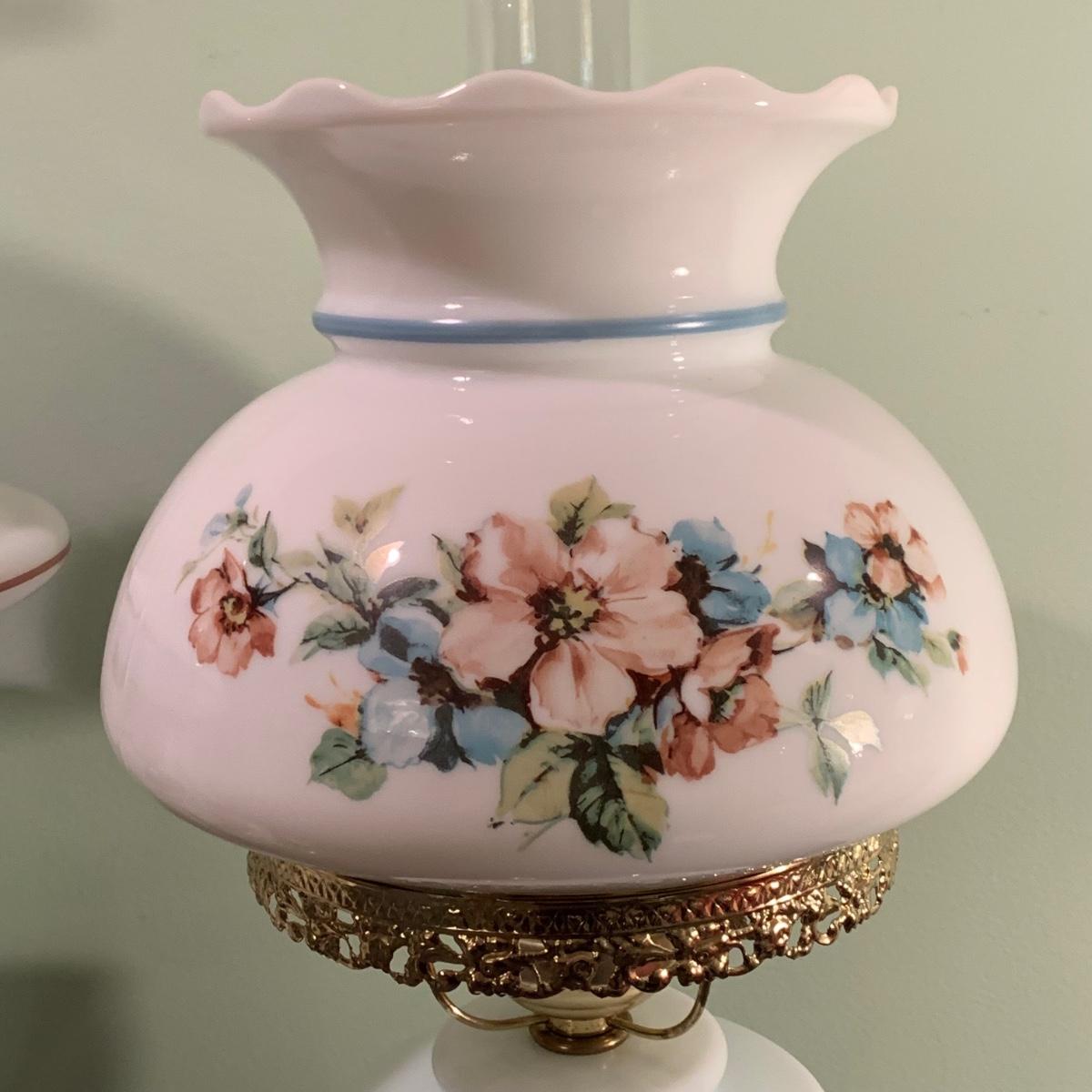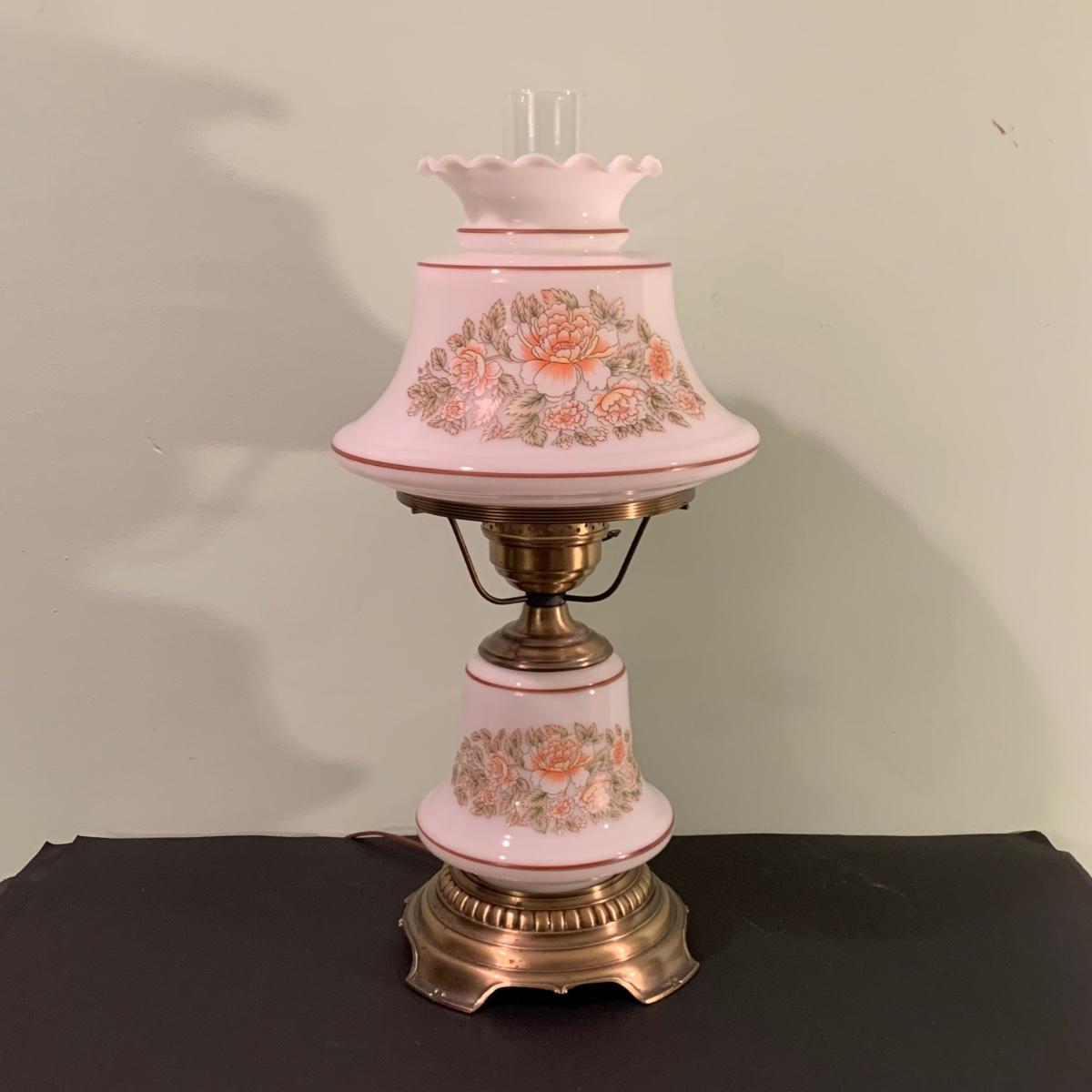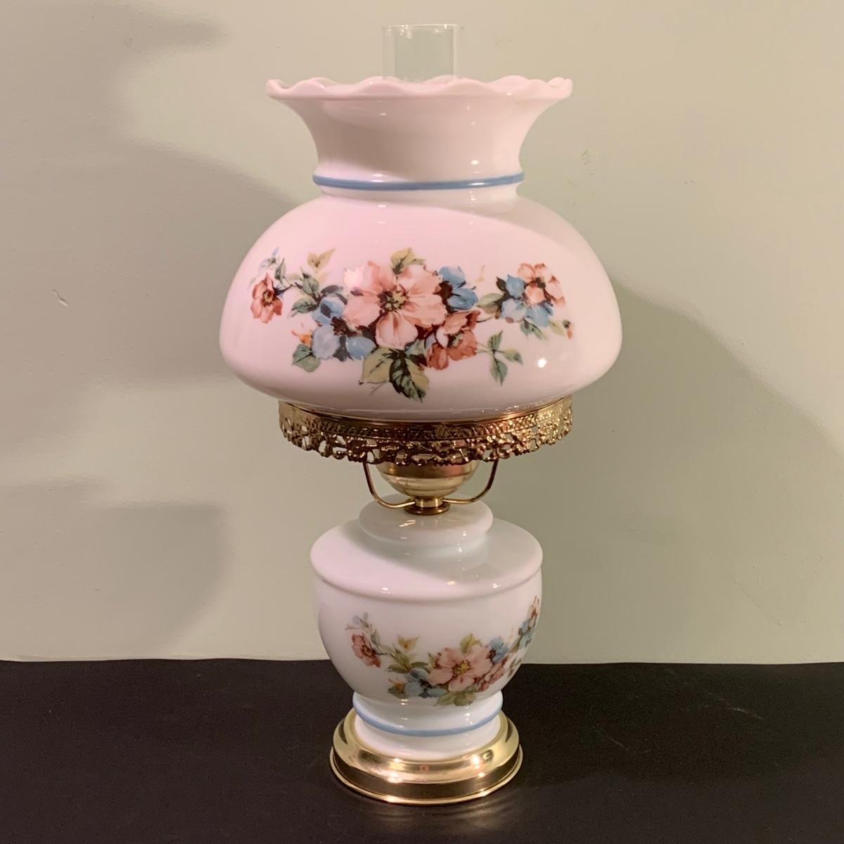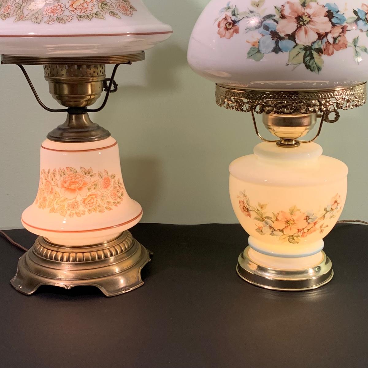LOT 230FB: Vintage Floral Hurricane Style Lamps