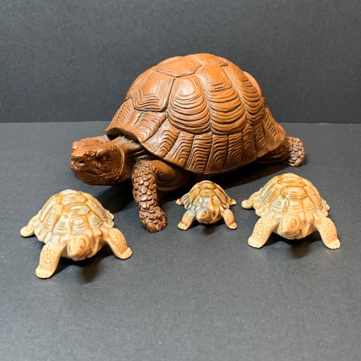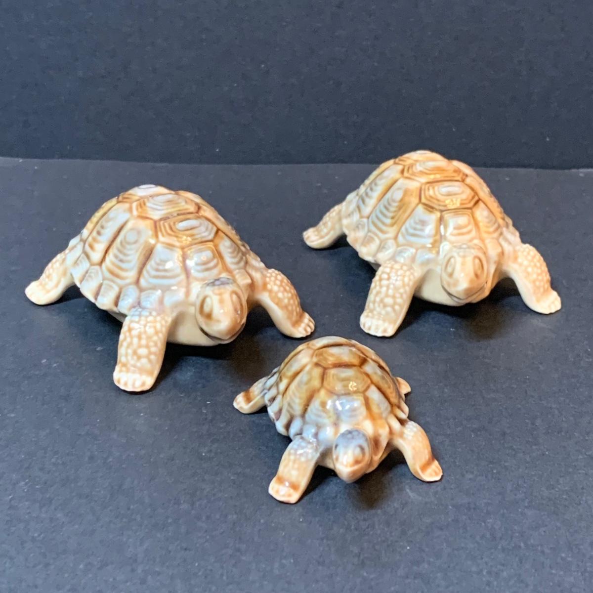 LOT 231L: Miniature Animal Collection: Wade Porcelain Turtles, Red Mill Hand Crafted Faux Wood Carved Turtle and More