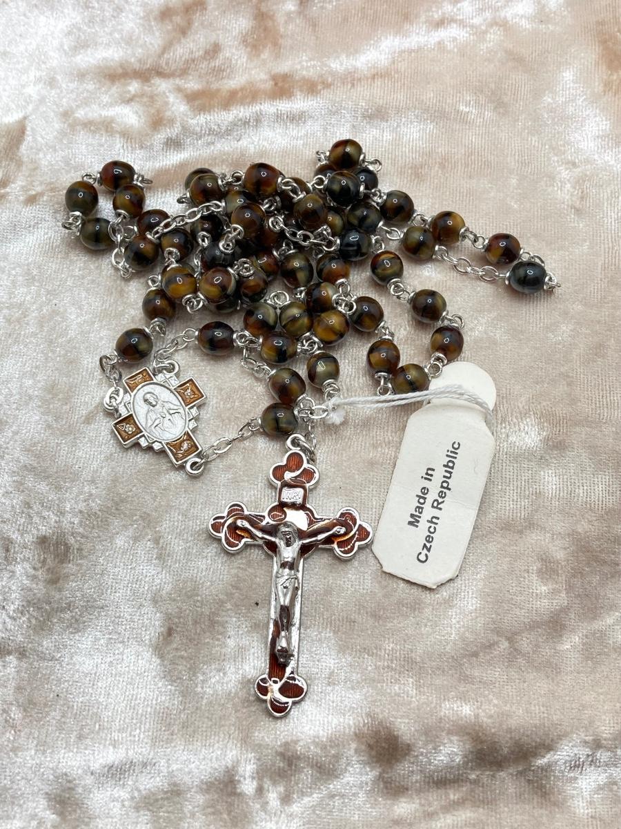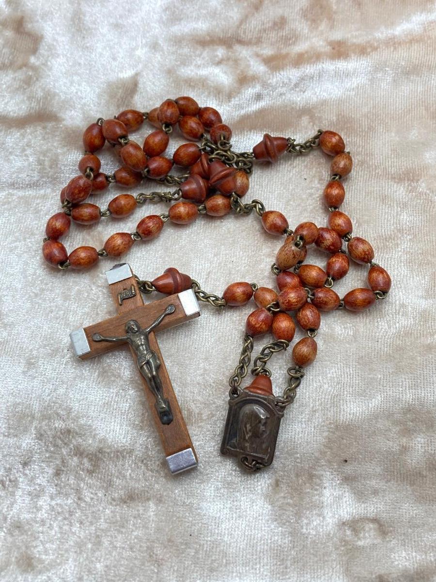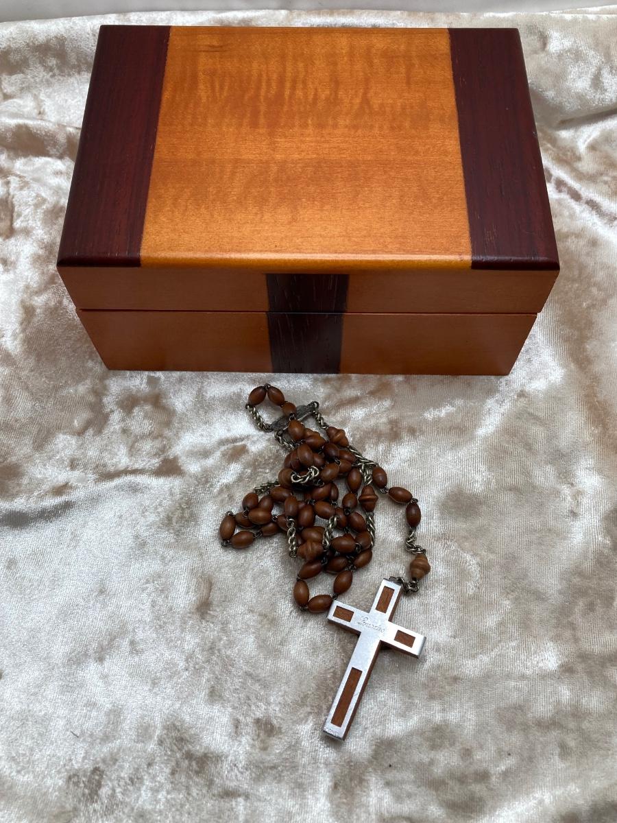 LOT 244J: Wooden Box with Collection of Rosary Beads and More