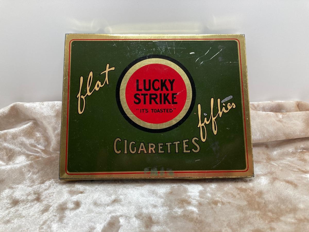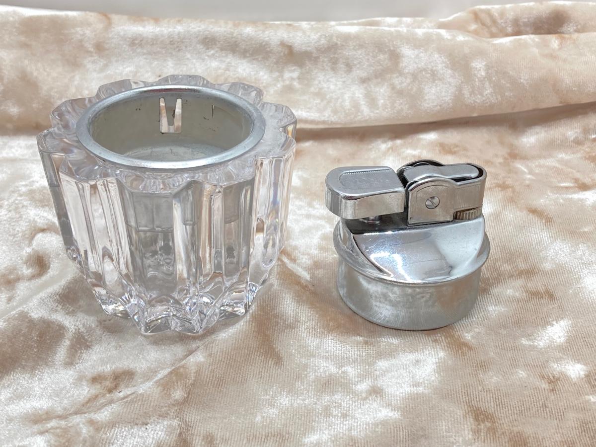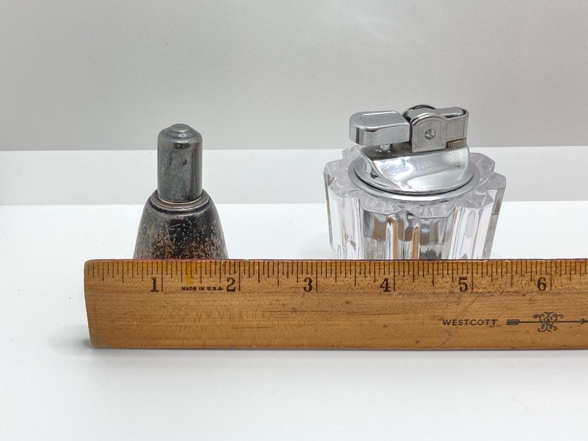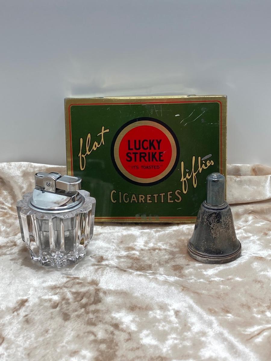 LOT 248J: Vintage Weighted Sterling Silver Lighter, Crystal Lighter & Vintage Luckey Strike Cigarette Tin