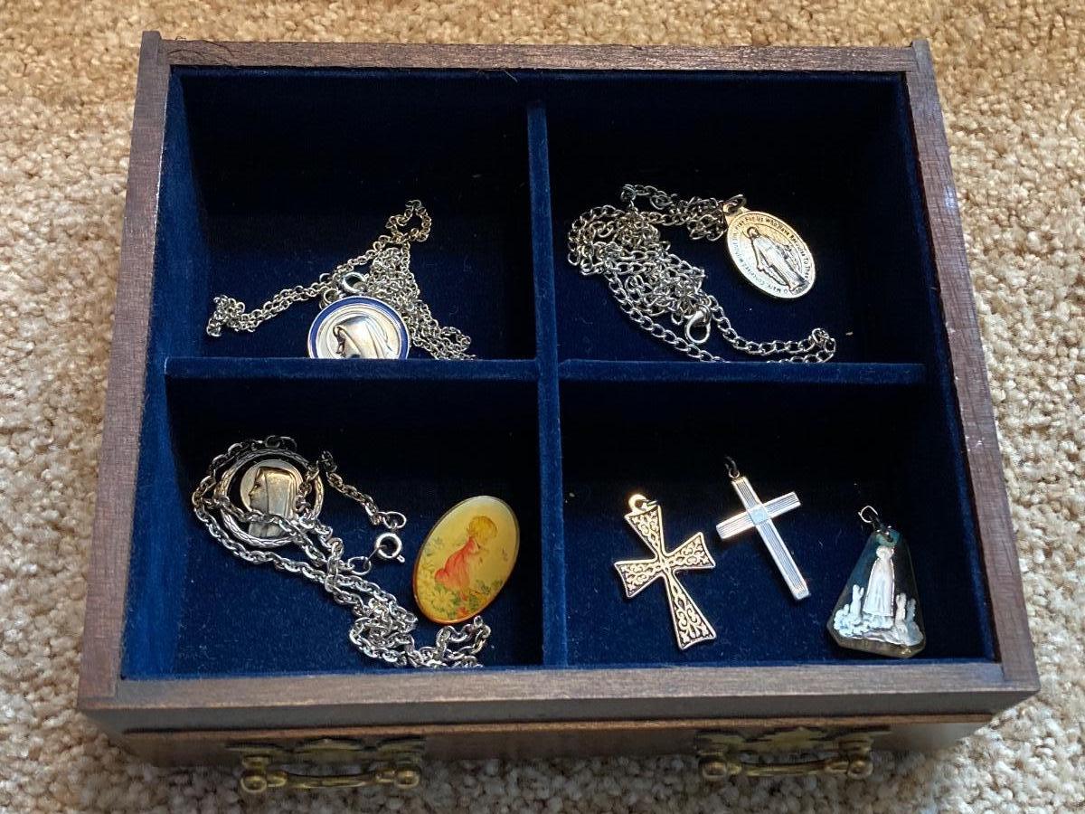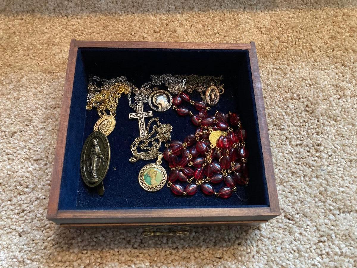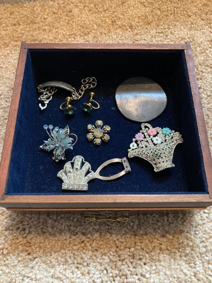 LOT 249J: Wooden Jewelry Box with Collection of Repair / Craft Jewelry