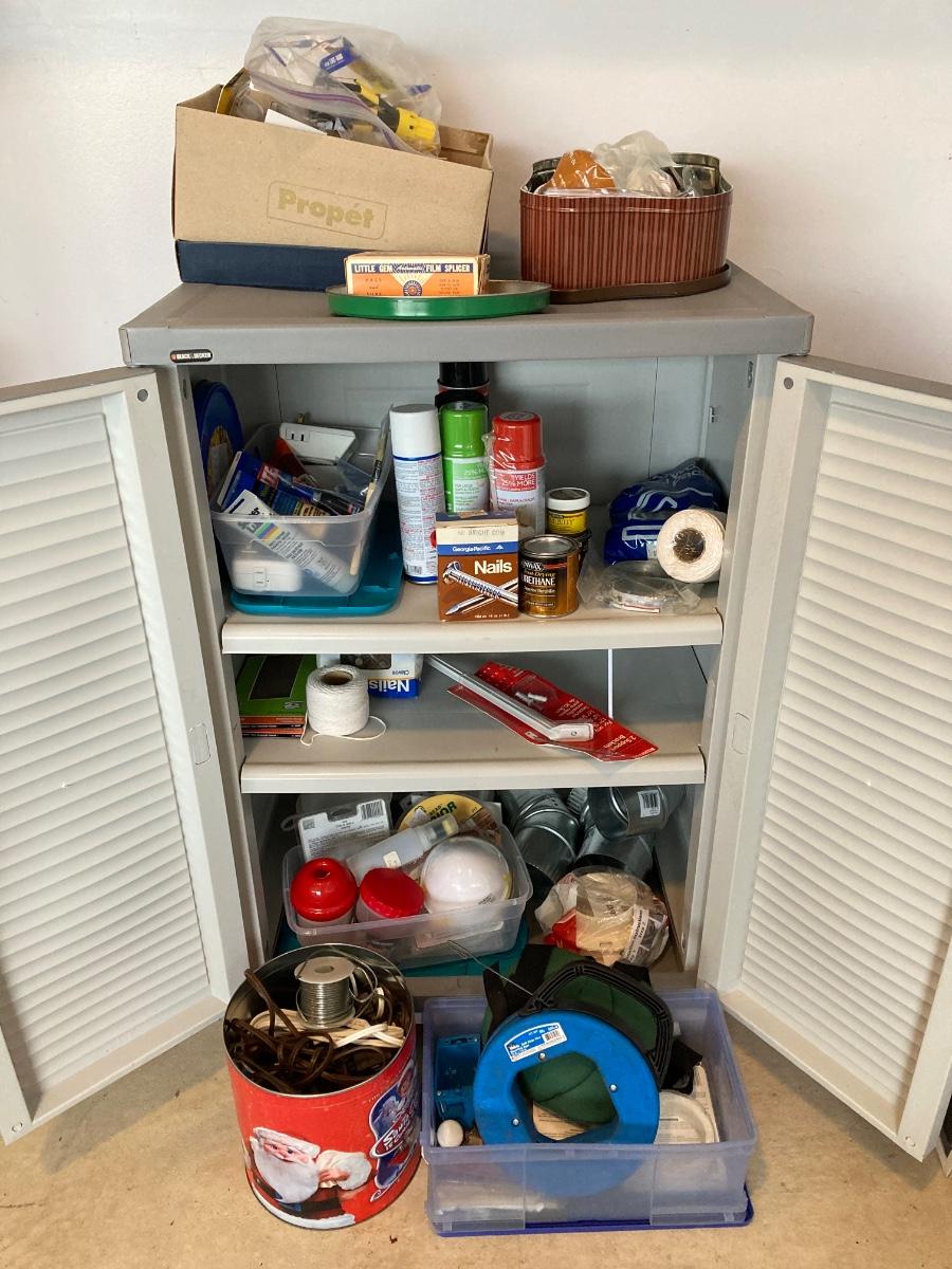 LOT 257G: Black and Decker Storage Cabinet with Contents