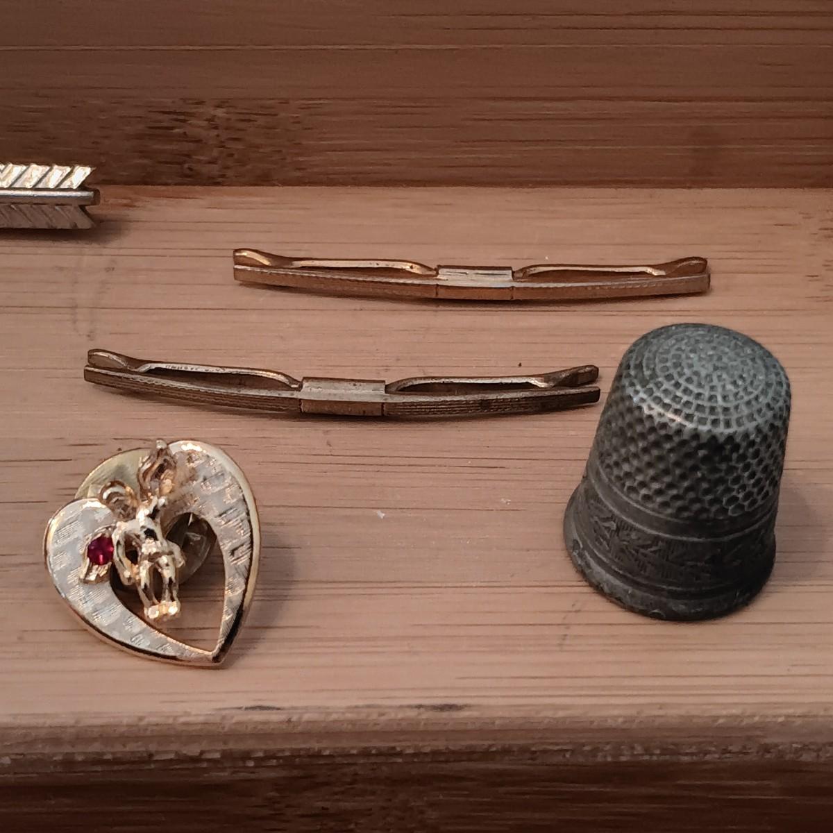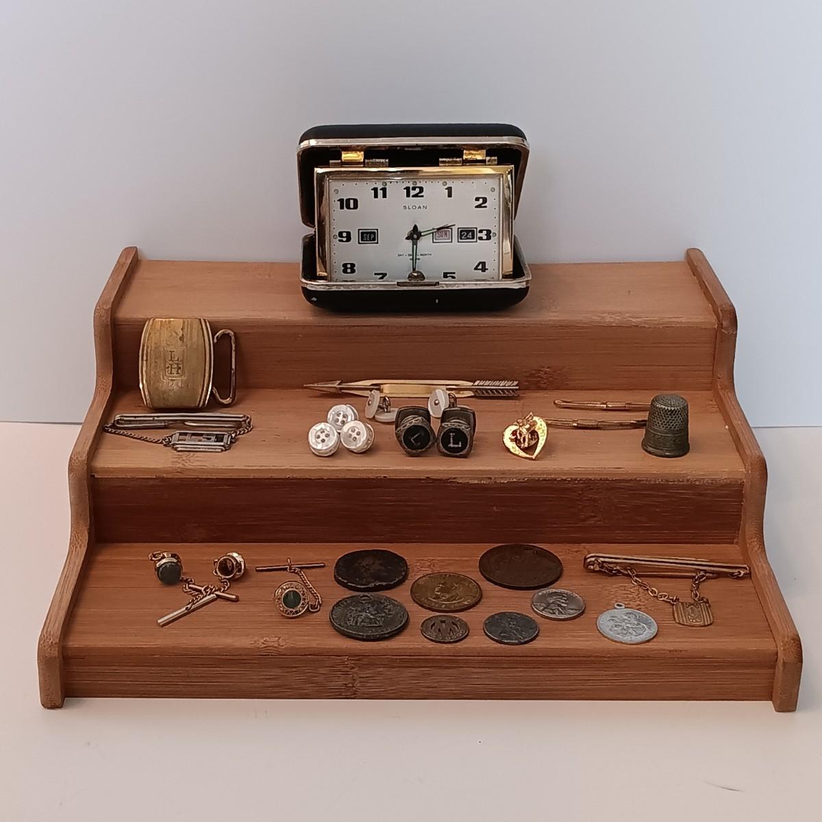 LOT 273L: Little Trinkets- Sloan Fold-Up Alarm Clock, Vintage Tie-Pins, Antique Coins & More