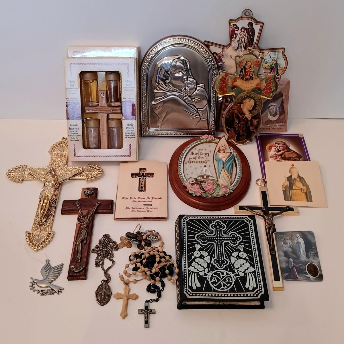 LOT 276L: A Large Collection of Religious Items, Crosses, Keychain, Jewelry & More