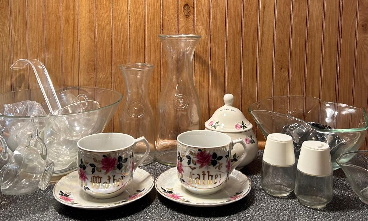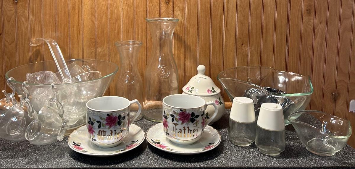 LOT 300FB: Mother/Father Mugs, Decanters, Bowls & More