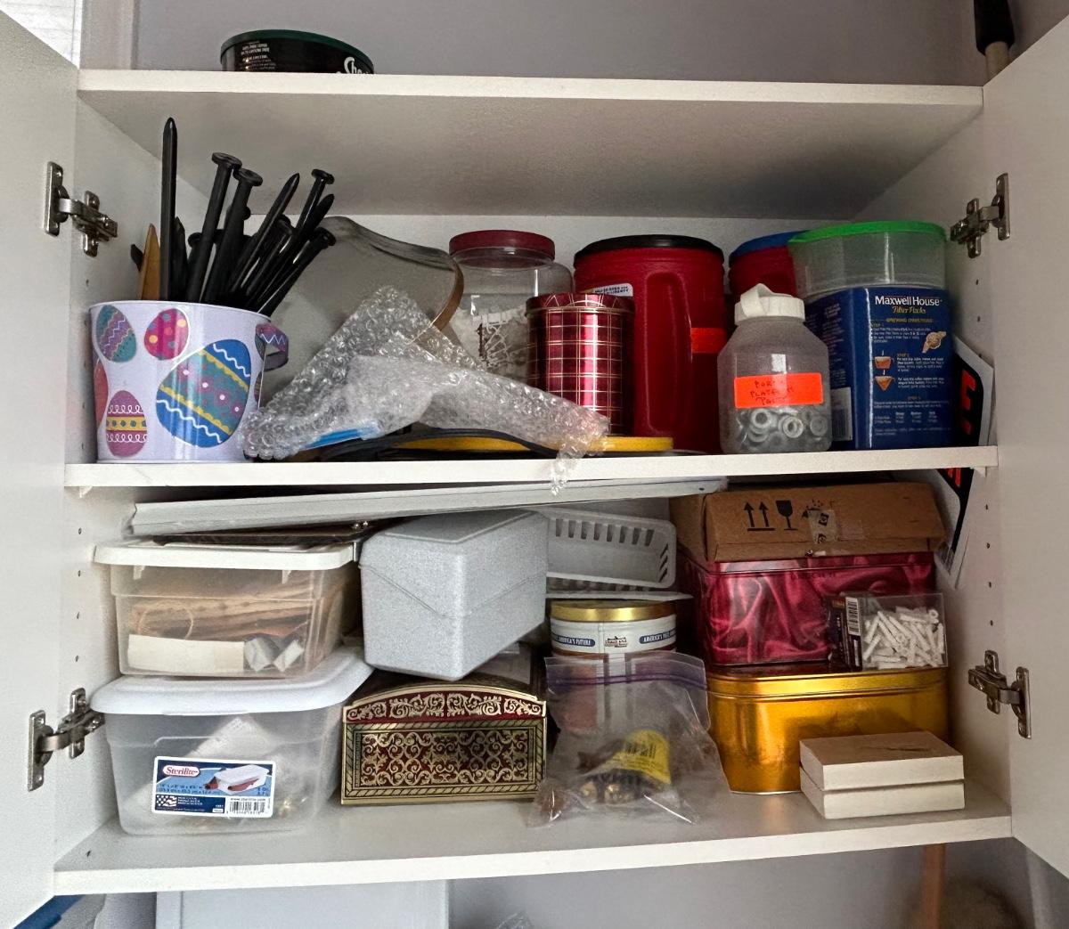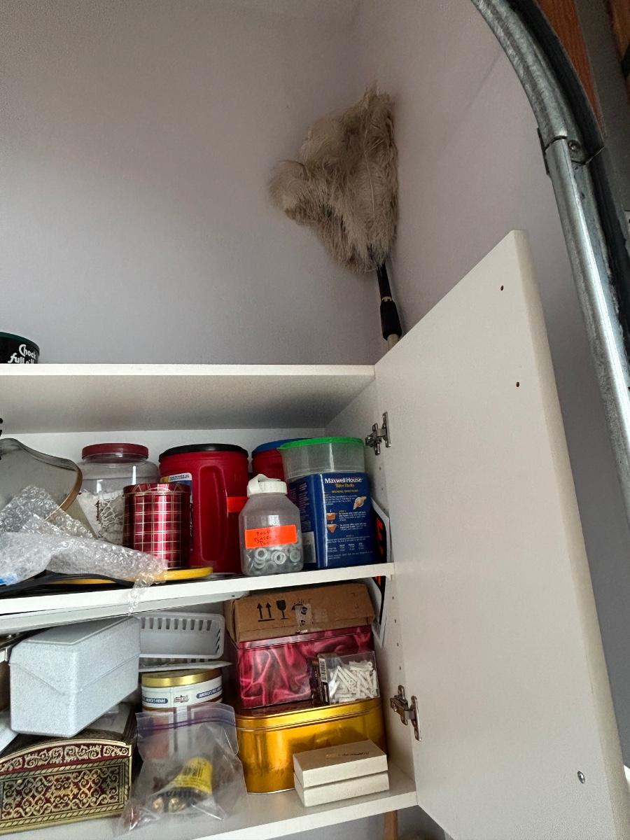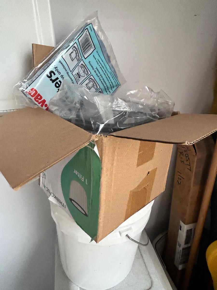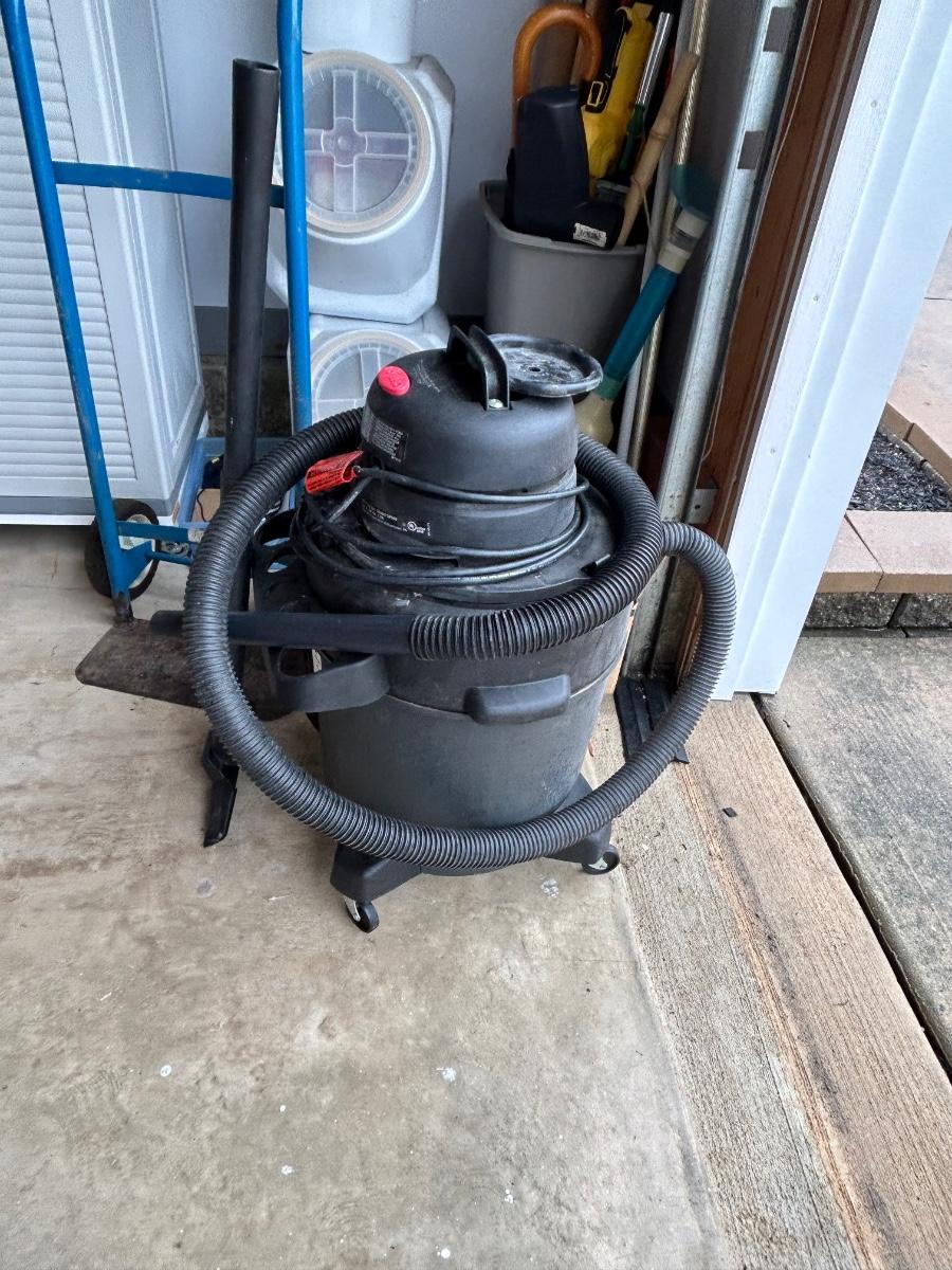 LOT G304: Garage Corner Lot- Hand Truck, Wet Vac And Replacement Filters, Contents Of Cabinet And Bucket Filled With Yard And House Supplies