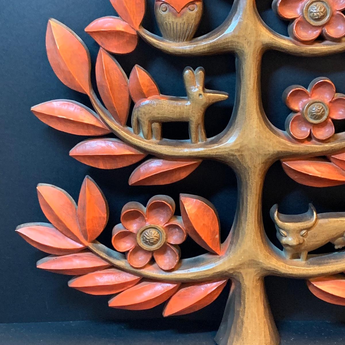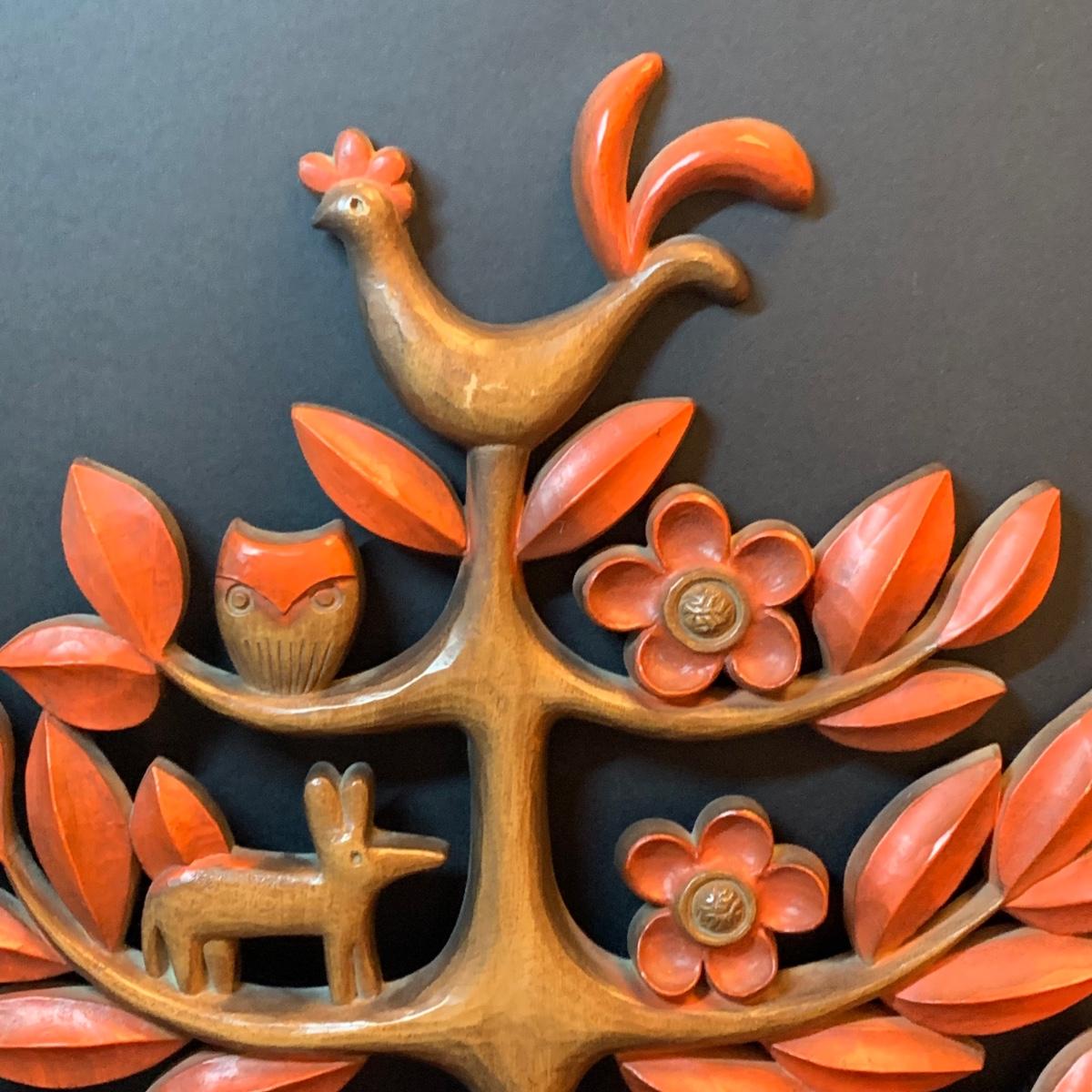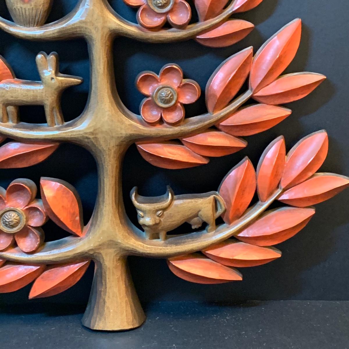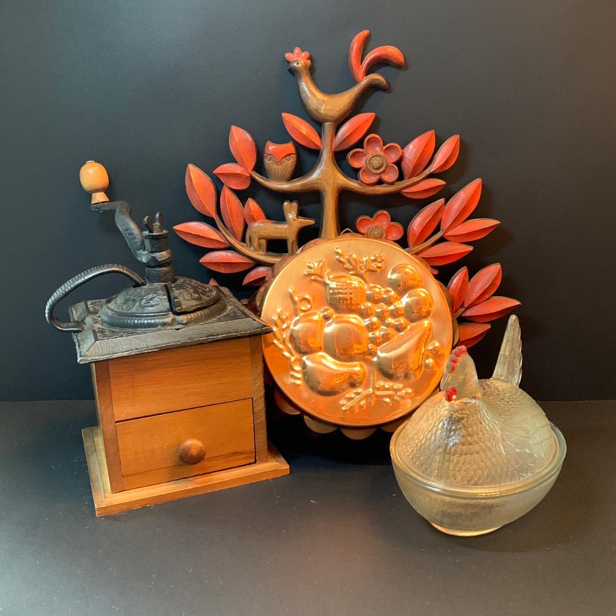 LOT 306L: Vintage Syroco Tree of Life Wall Plaque, Glass Hen on Nest, Reproduction Coffee Mill & Copper Mold