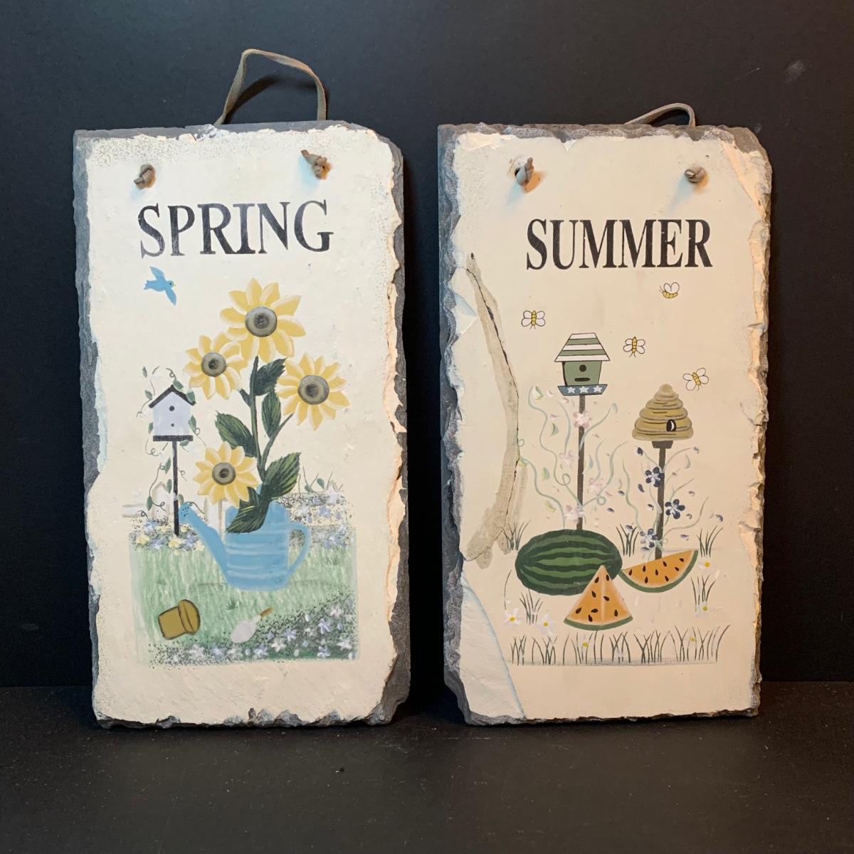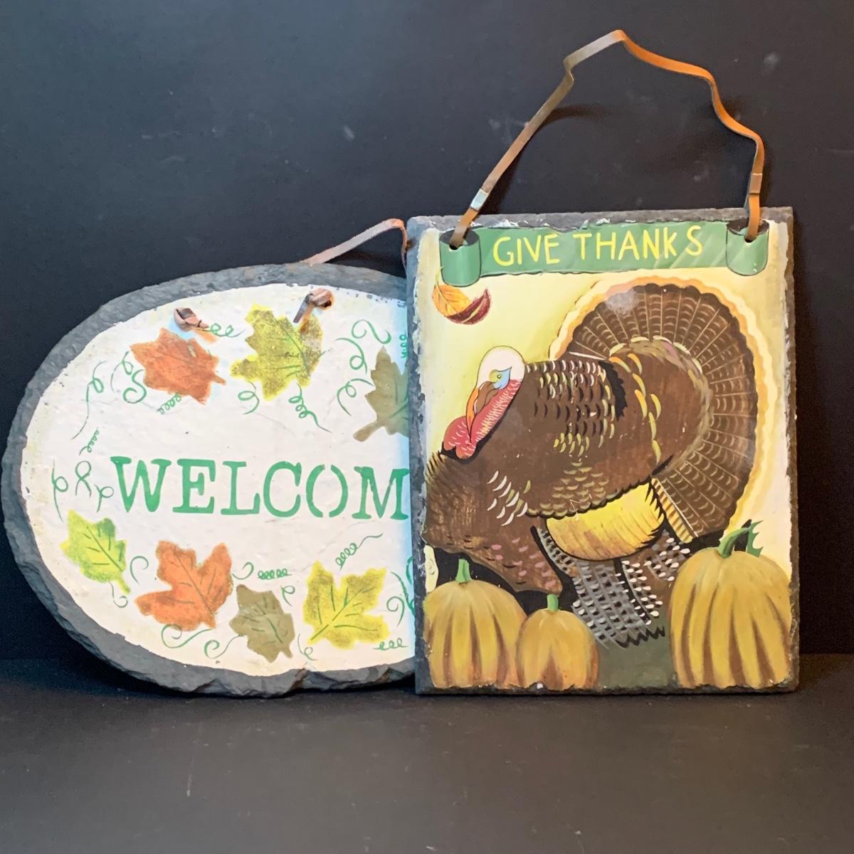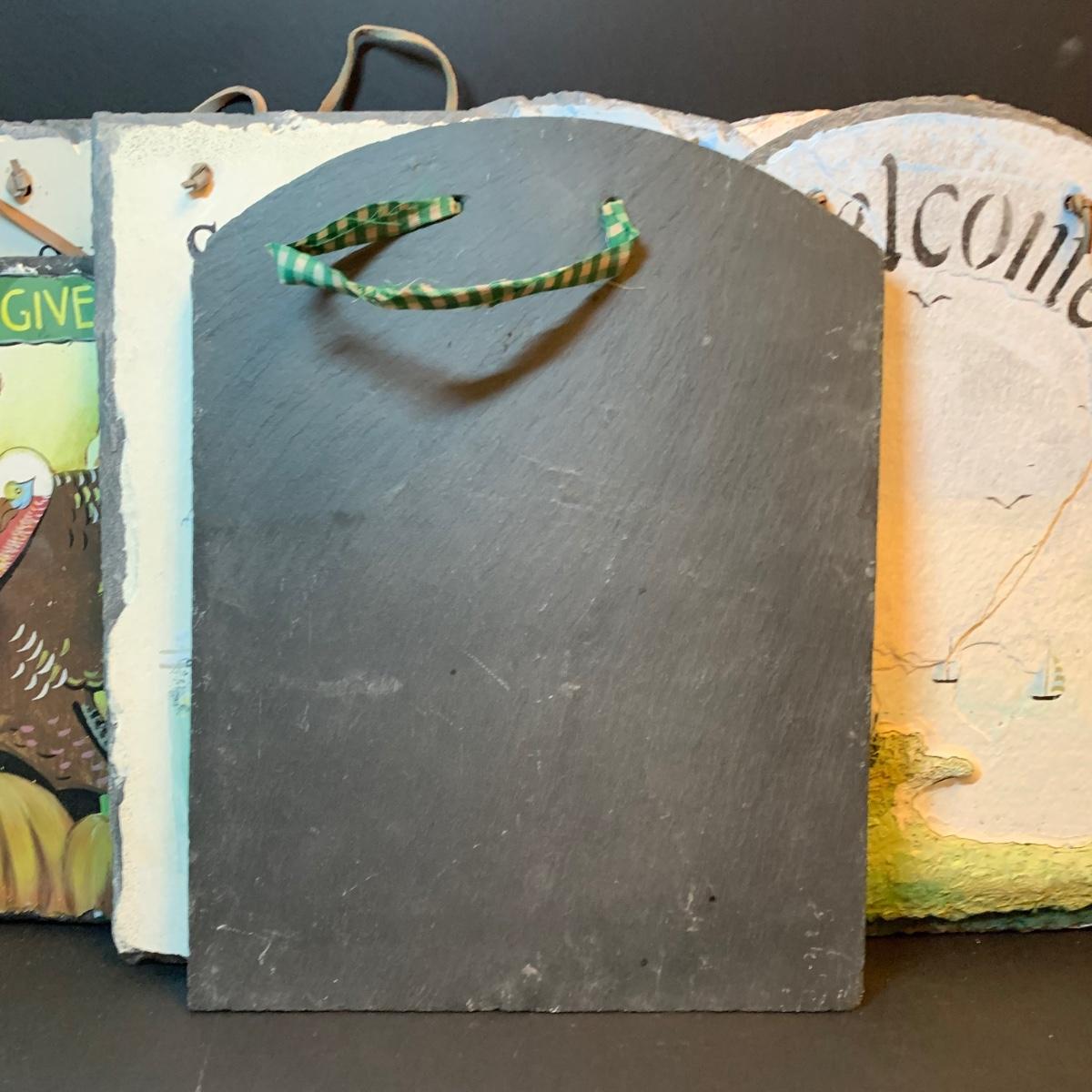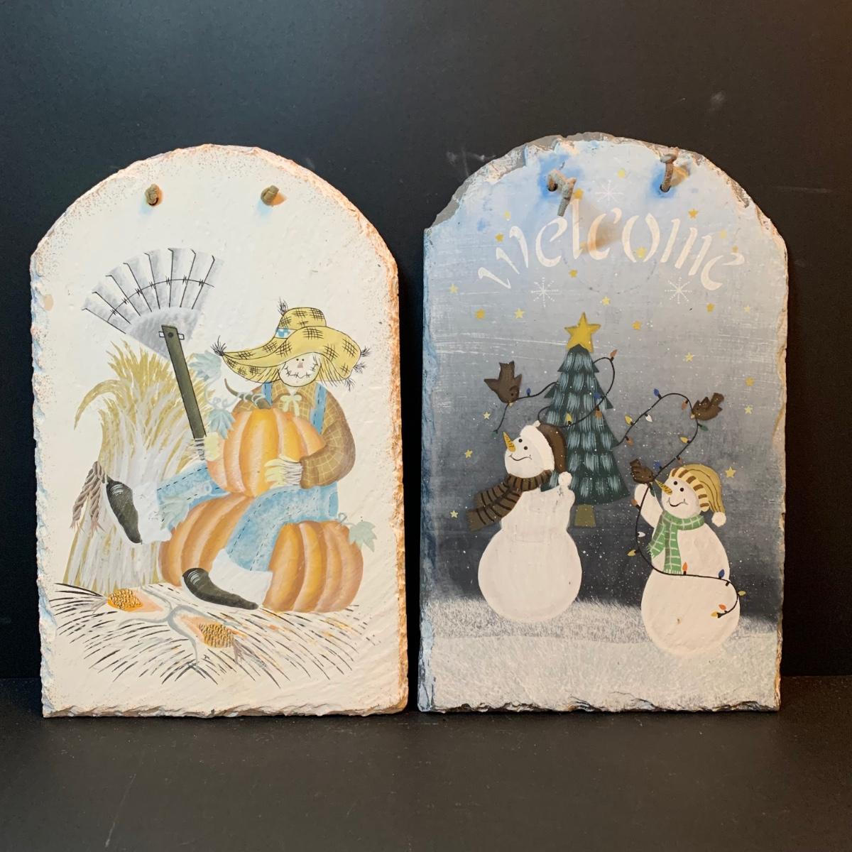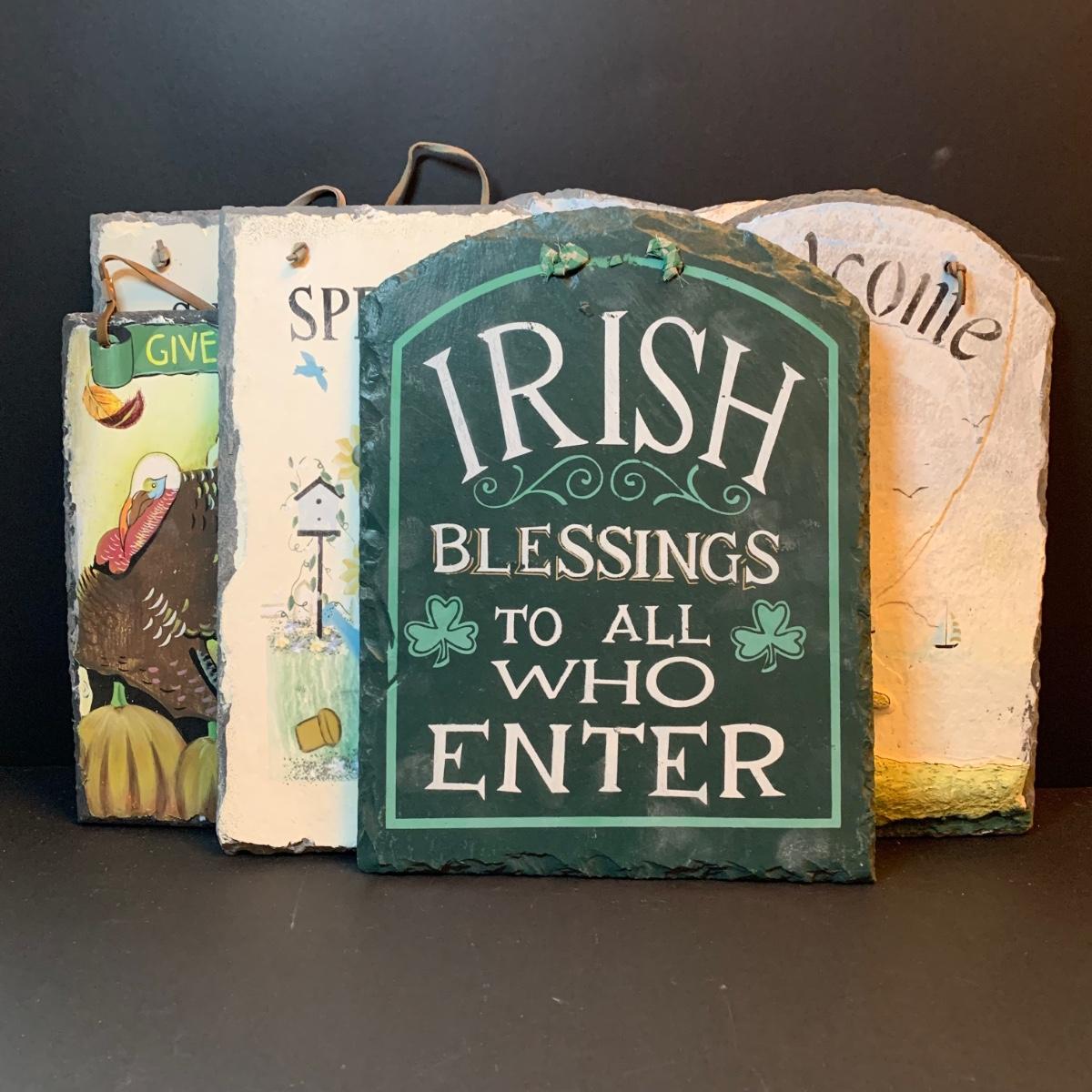 LOT 307L: Collection of 8 Holiday Painted Slate Signs: Spring, Fall, Giving Thanks, St. Patrick's
