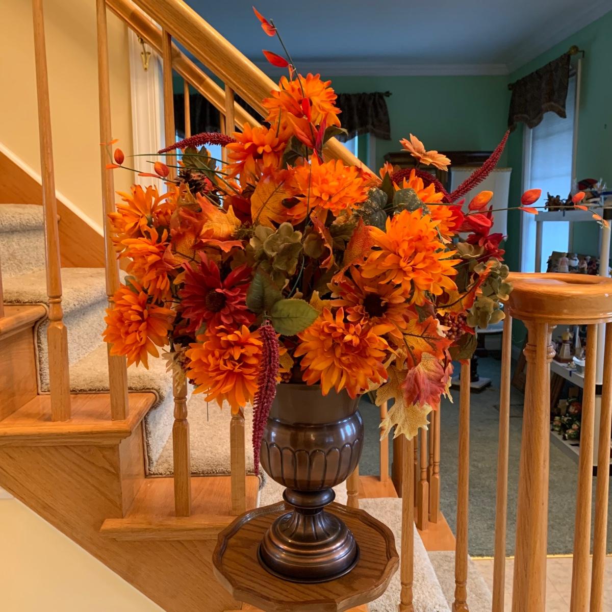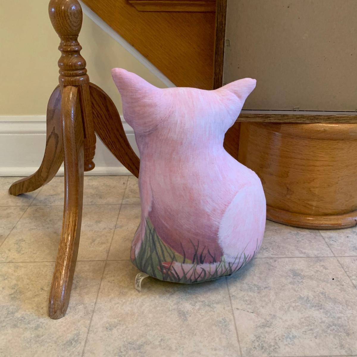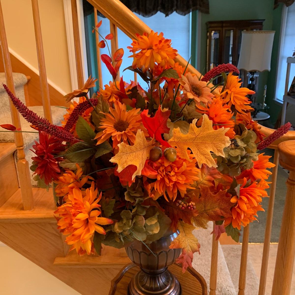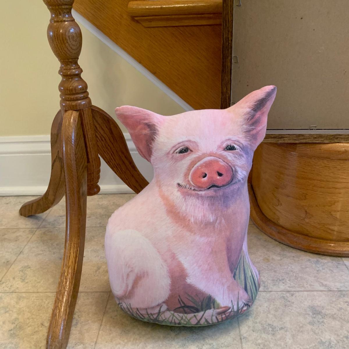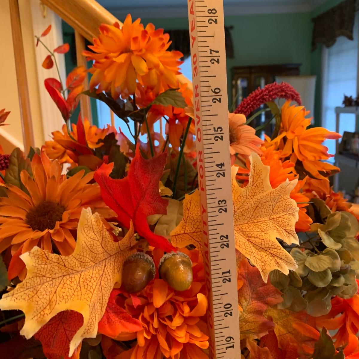 LOT 312L: Vintage Shadow Box Style Wall Clock, Cloth Pig Doorstop, Plant Stand, Fall Floral Arrangement