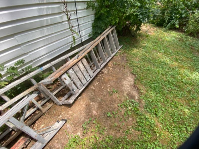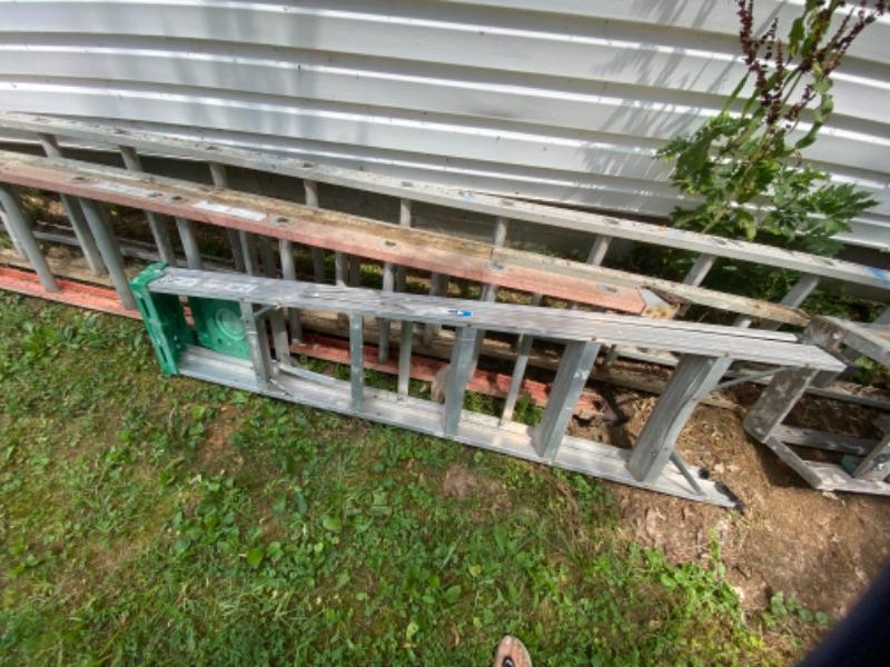 6’ aluminum Werner Ladder, 8’ wooden ladder, 16’ Ext. Aluminum Ladder 1/2 of fiberglass extension ladder measuring 12’