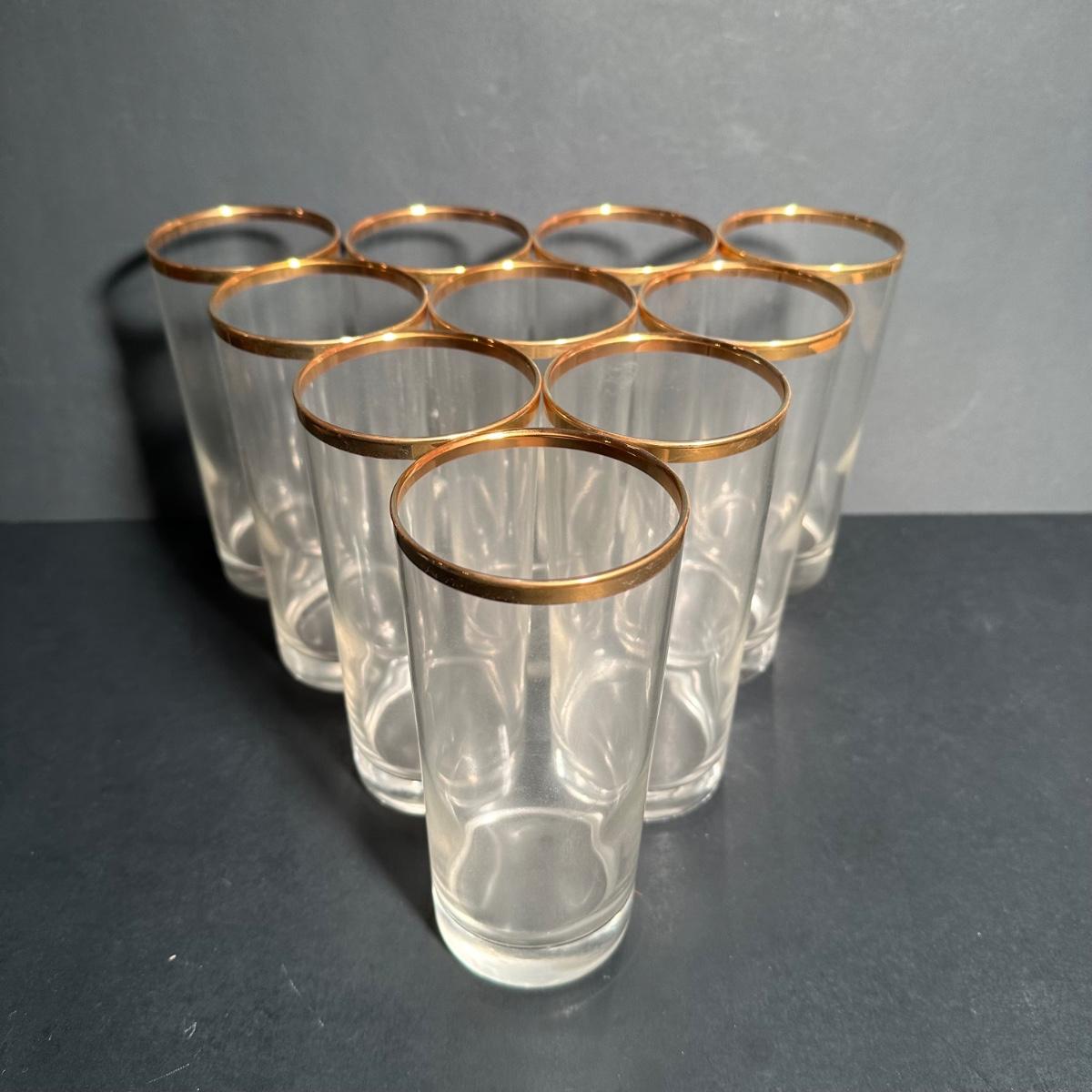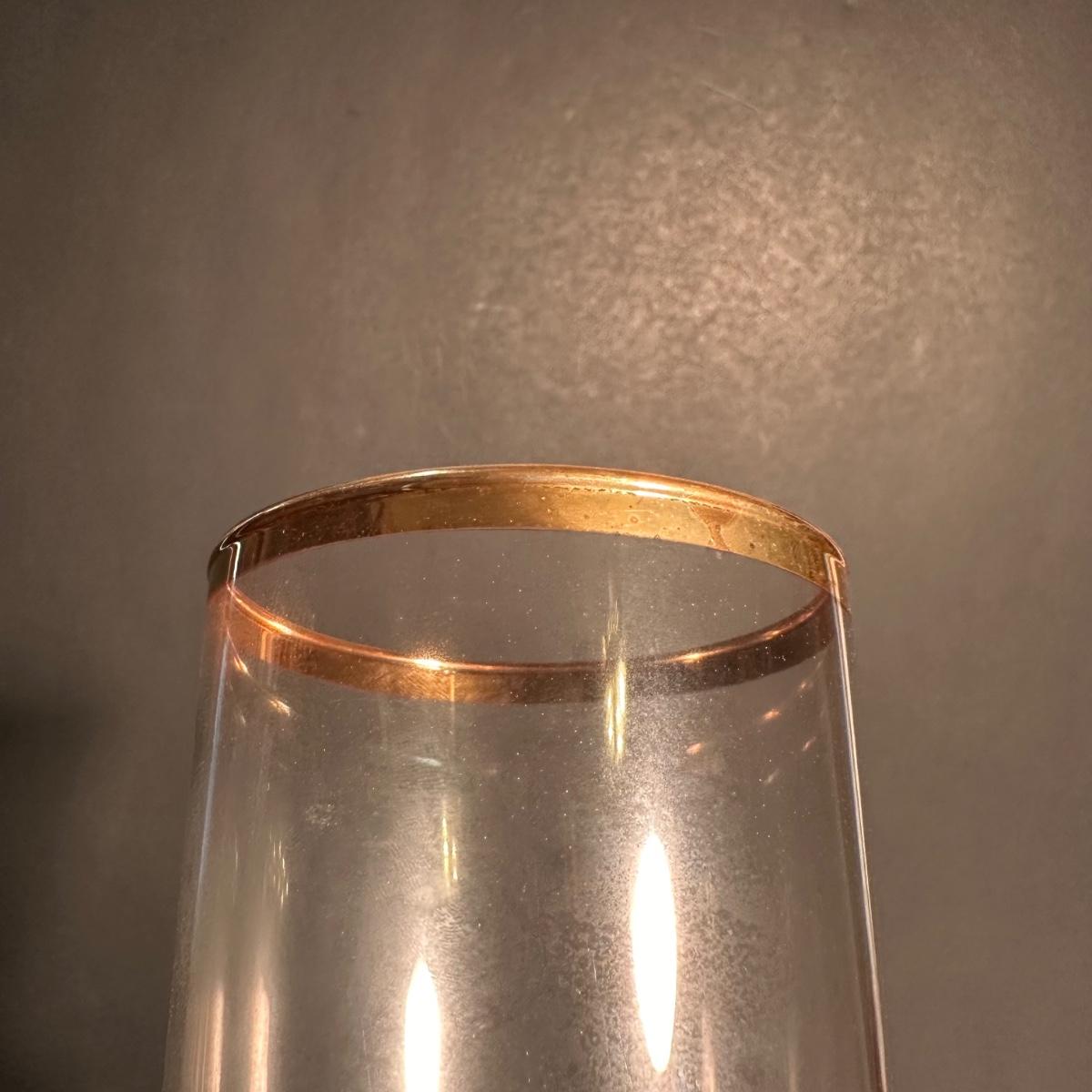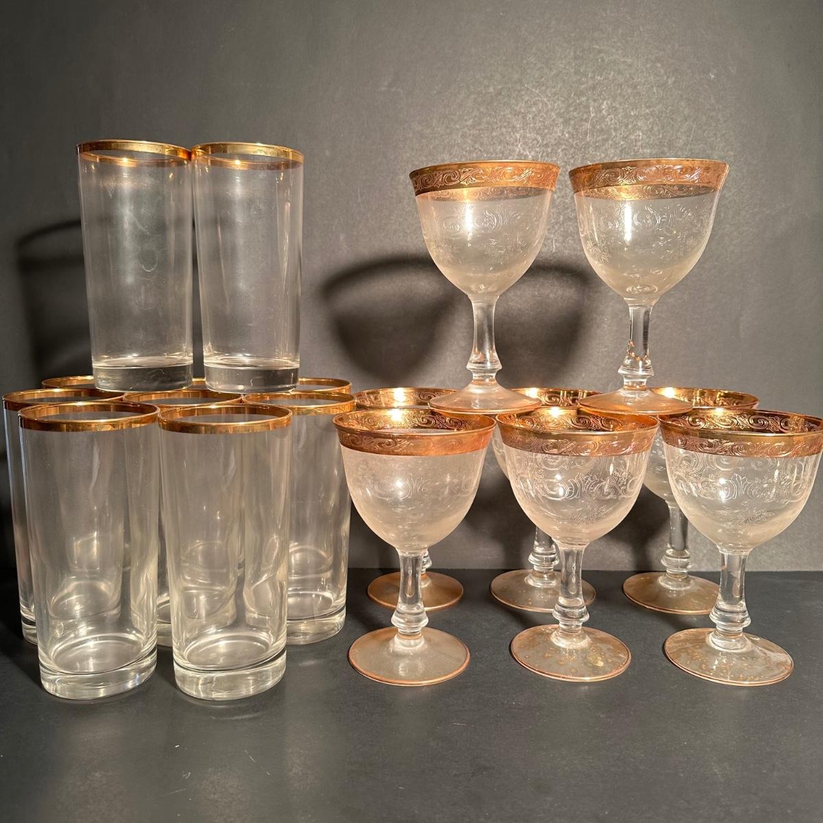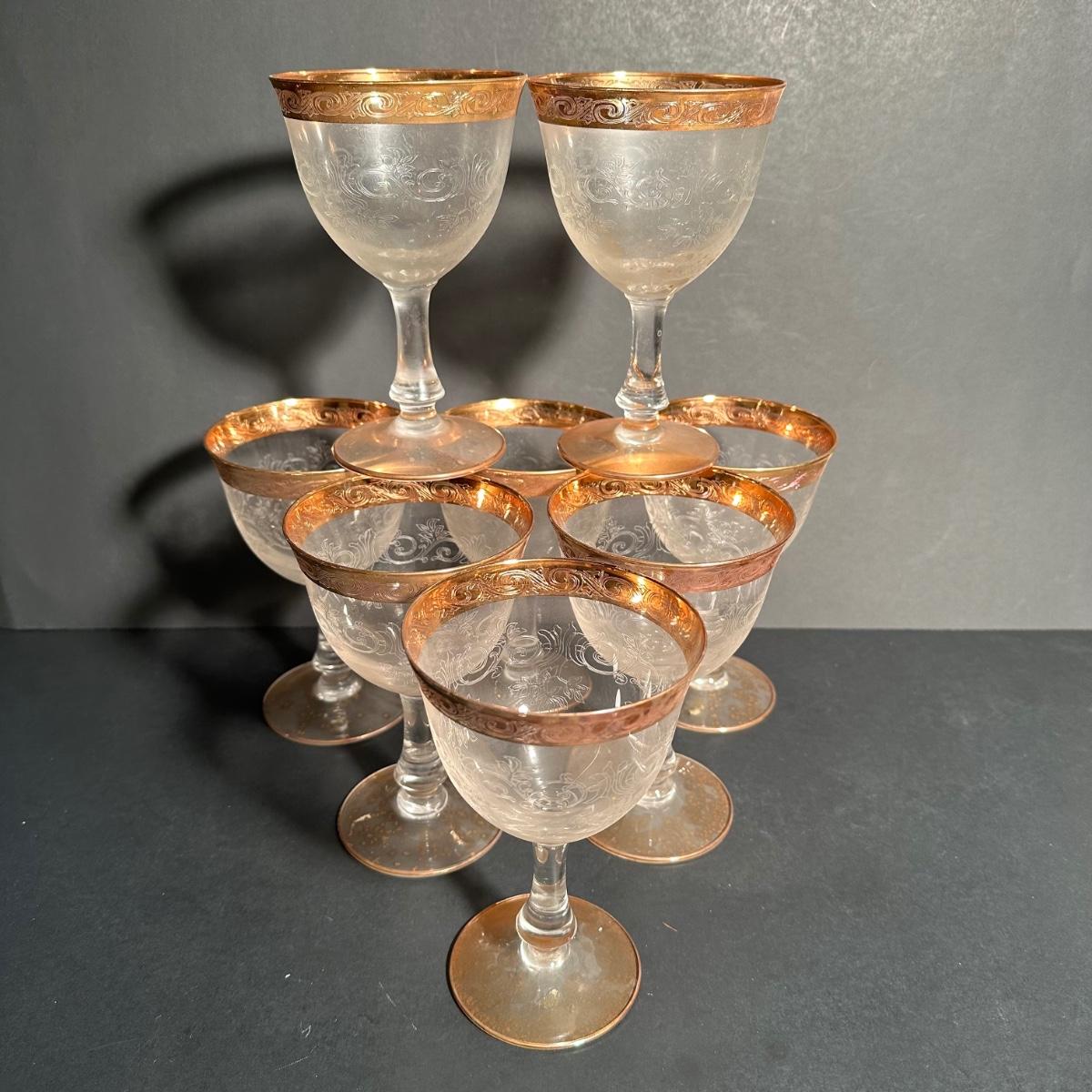 LOT 6L: Vintage Gold Trim Etched Crystal Wine Goblets/Glasses