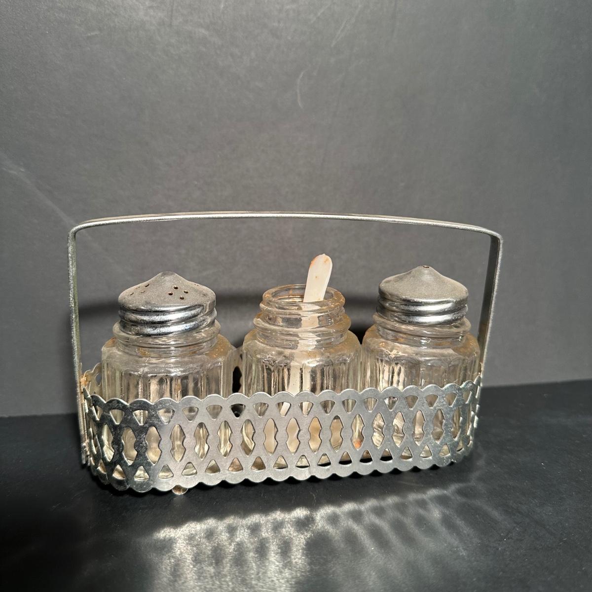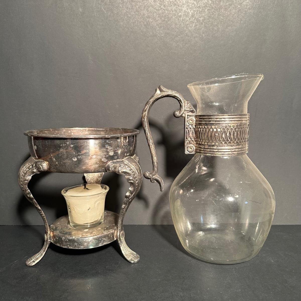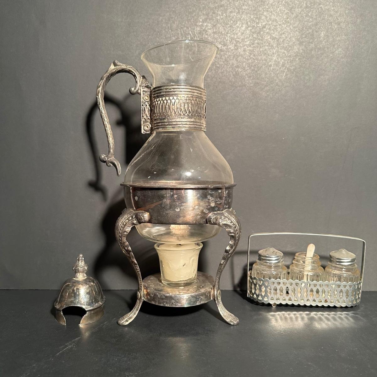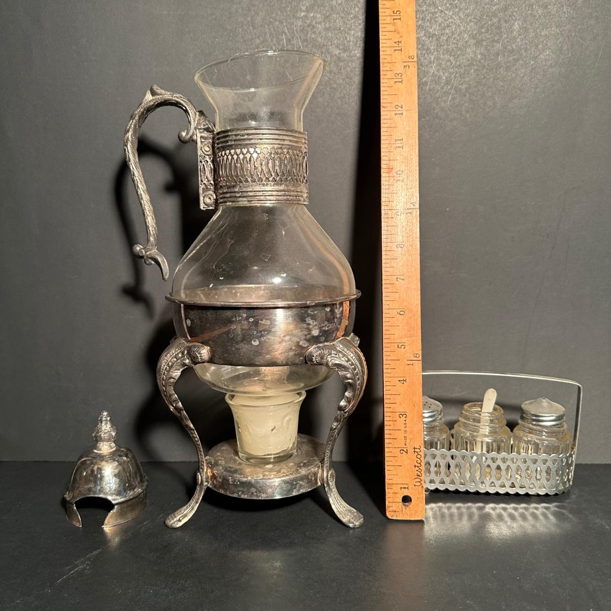 LOT 14W: 1978 Vintage Carafe Leonard Silver Plated Warmer w/ Condiment Set