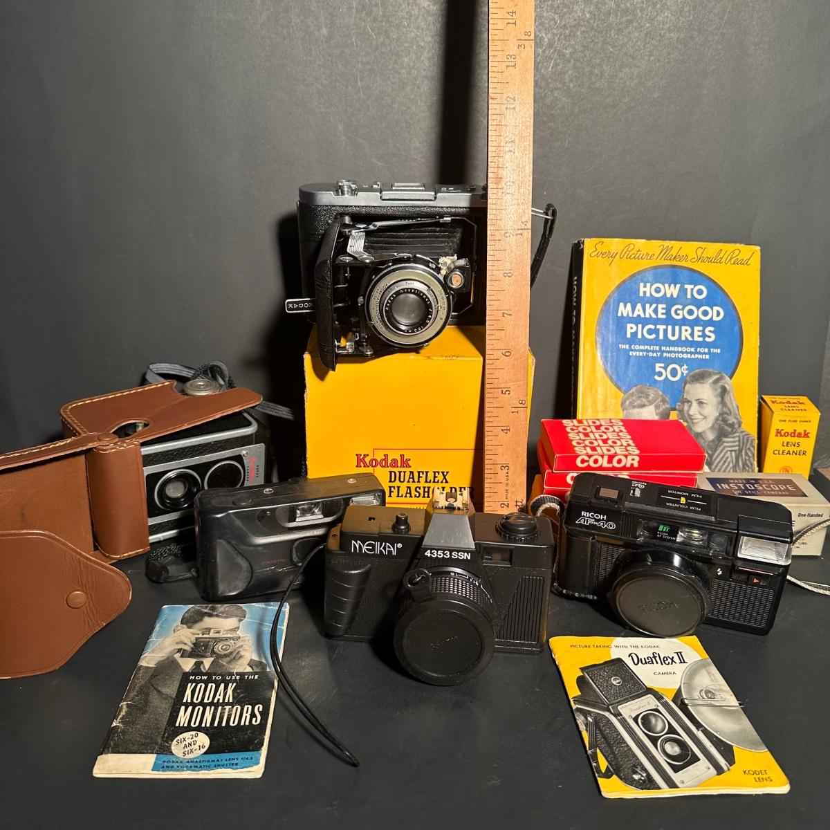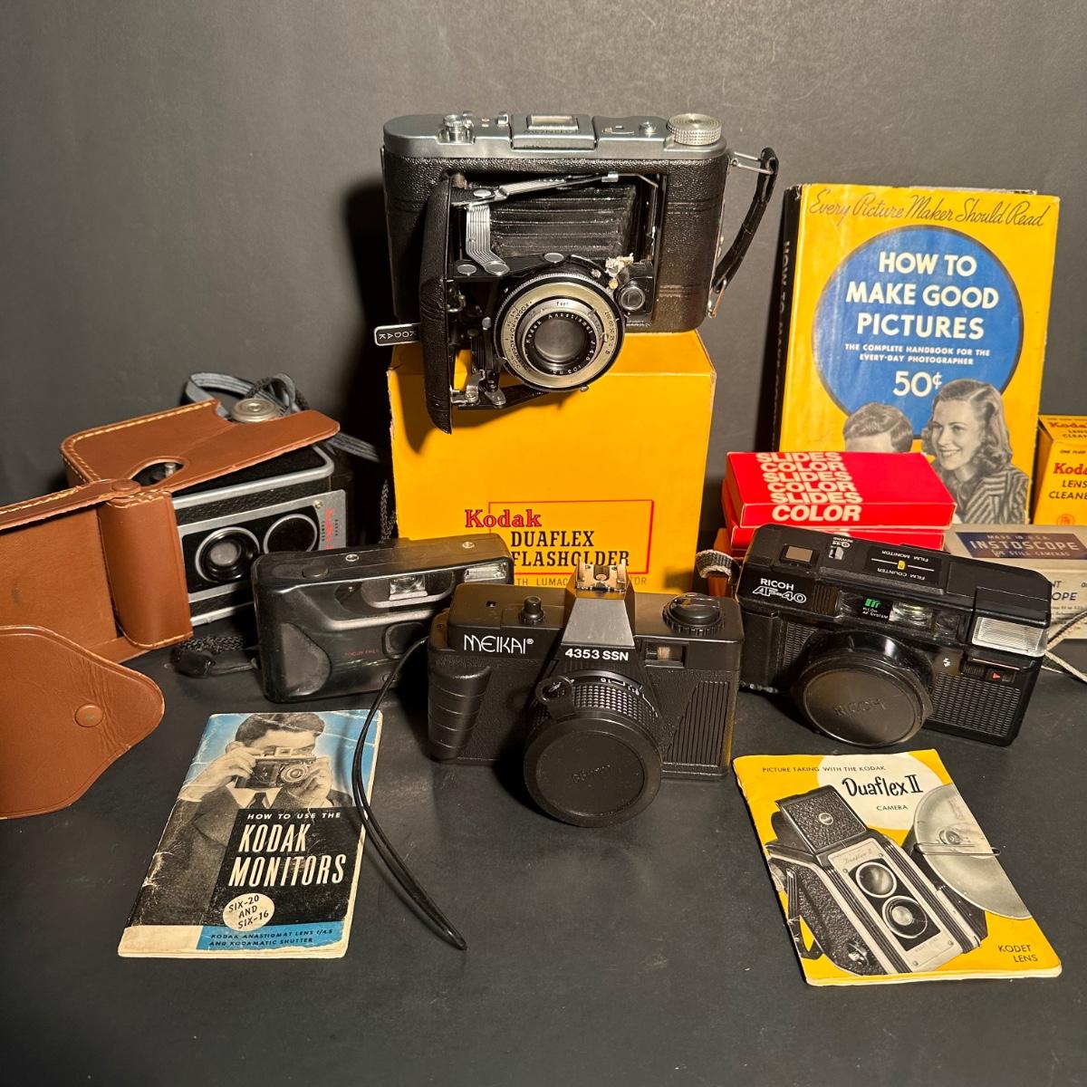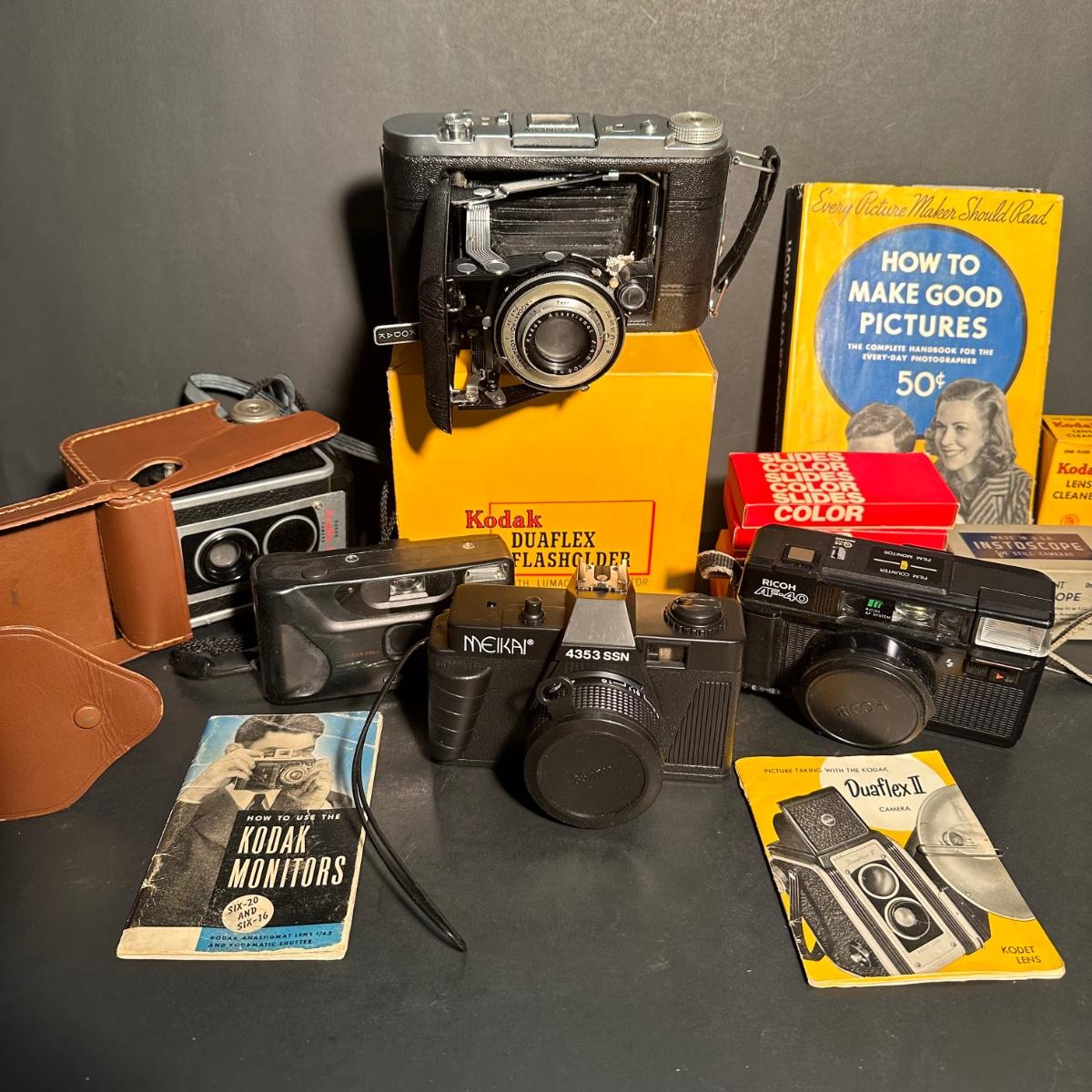 LOT 16W: Collection Of Vintage Film Cameras - Kodak Duraflex, Monitor, Slides & More
