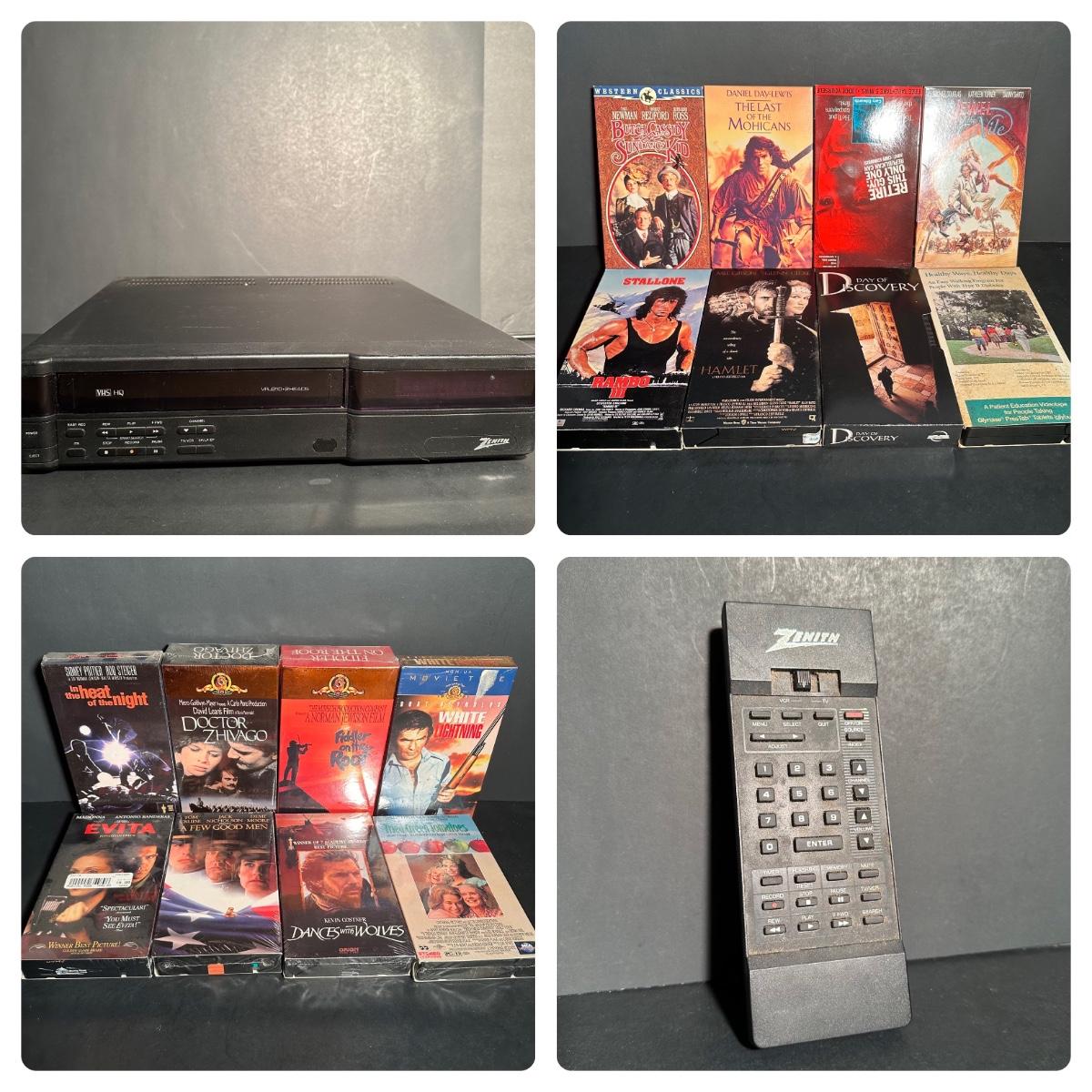 LOT 25L: Zenith Video Recorder w/ New & Used VHS Tapes