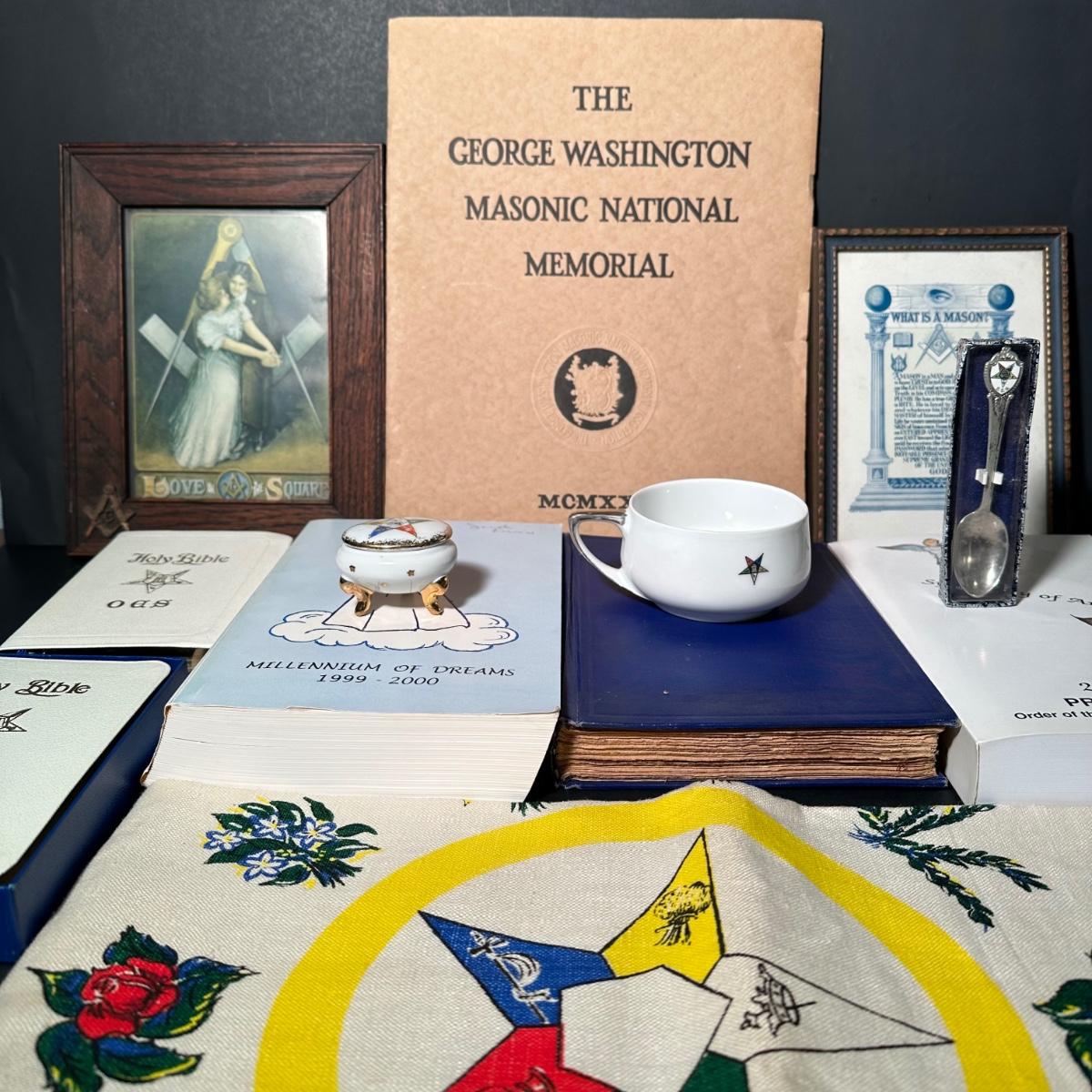 LOT 27L: Masonic Themed Collection - Books, Trinket Box, Mug & More
