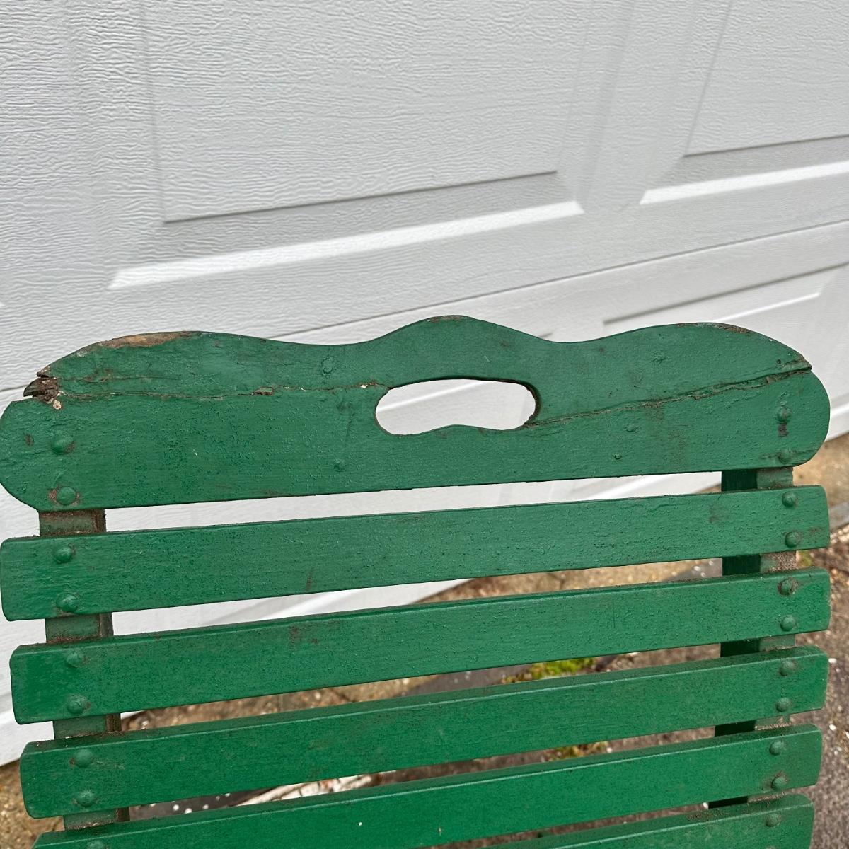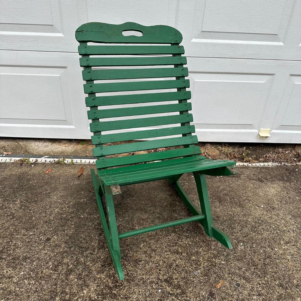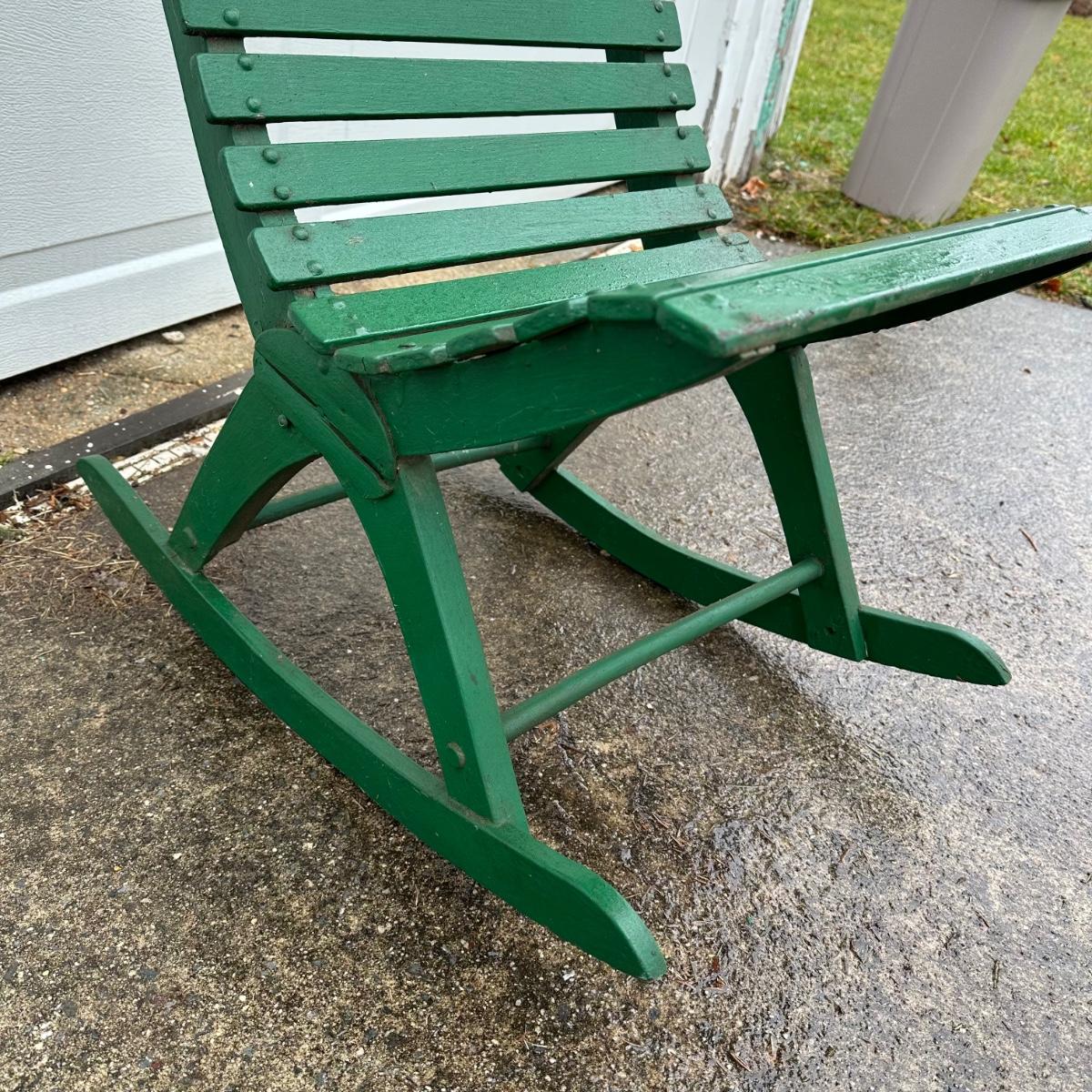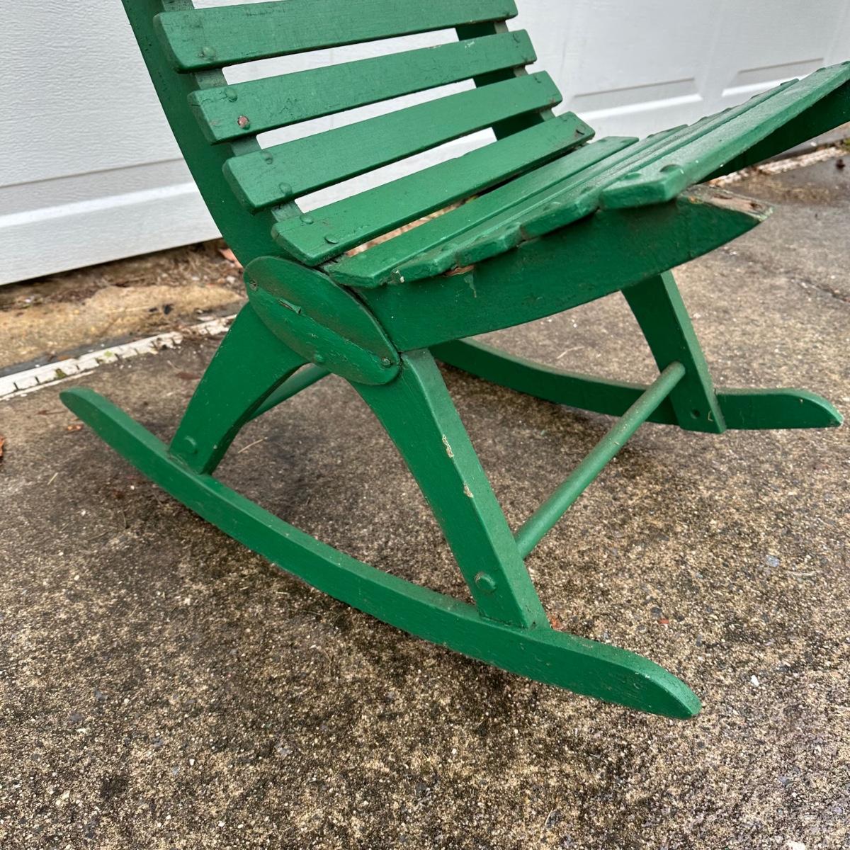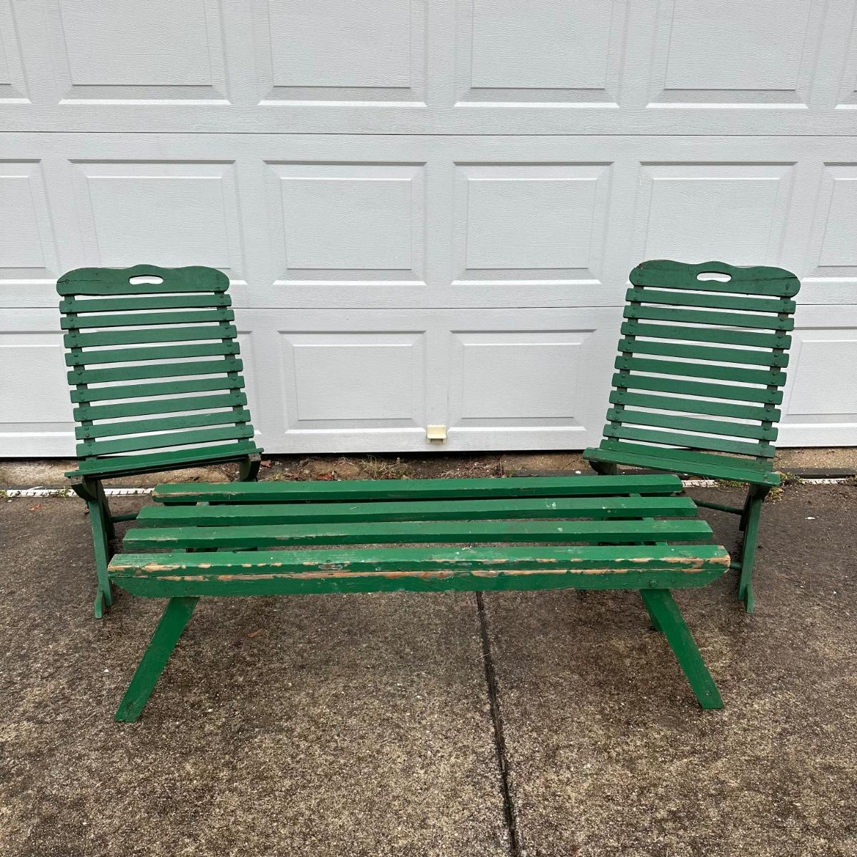 LOT 37G: Vintage Green Folding Wooden Bench w/ Rocking Chairs