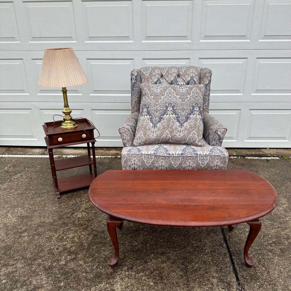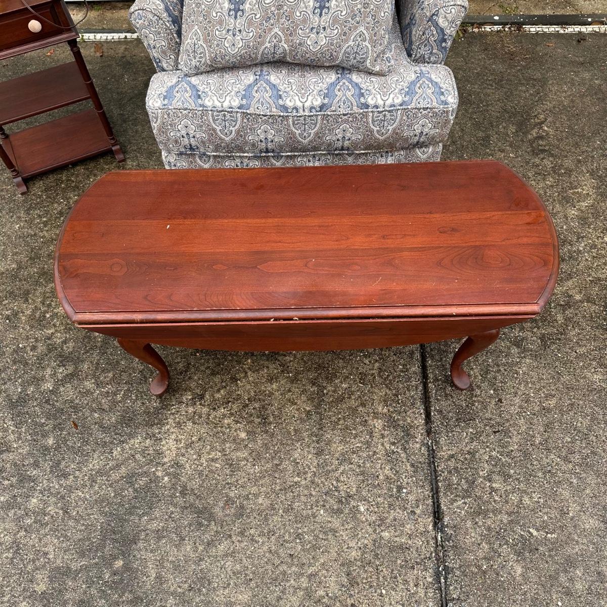 LOT 38G: Vintage Pennsylvania House Dropleaf Coffee Table w/ Matching Side Table & Accent Chair